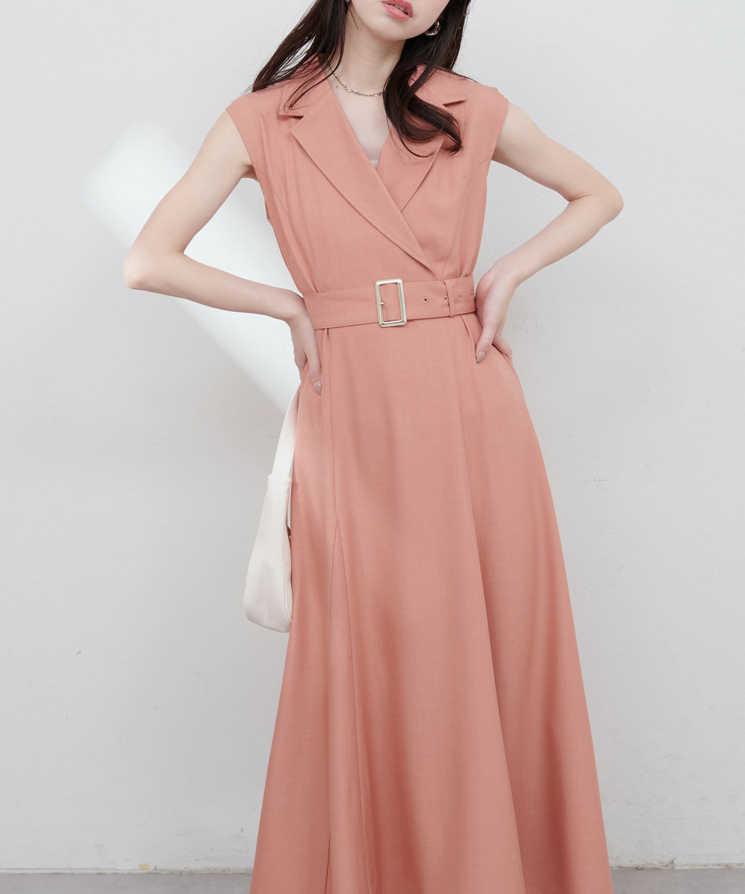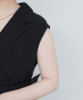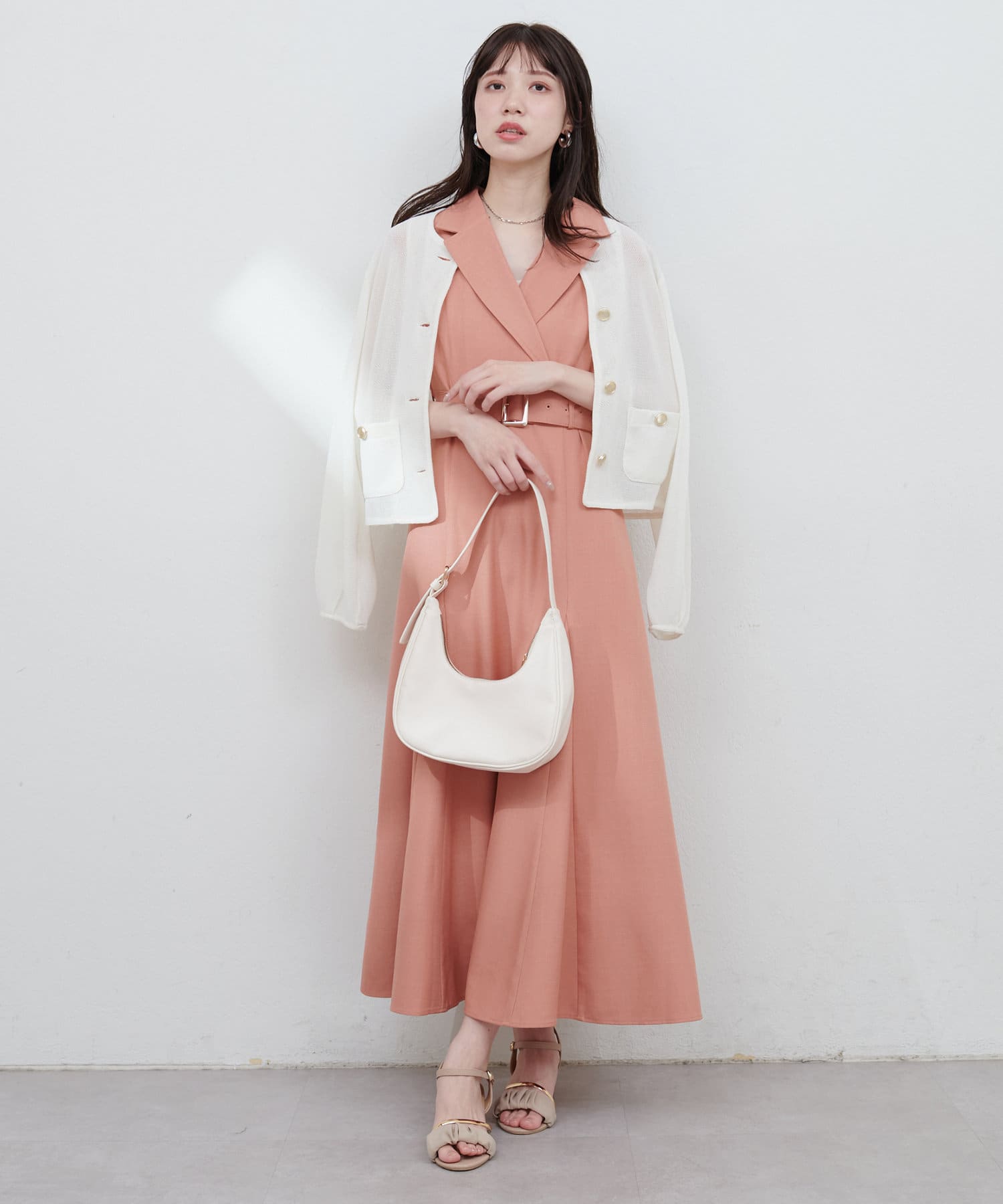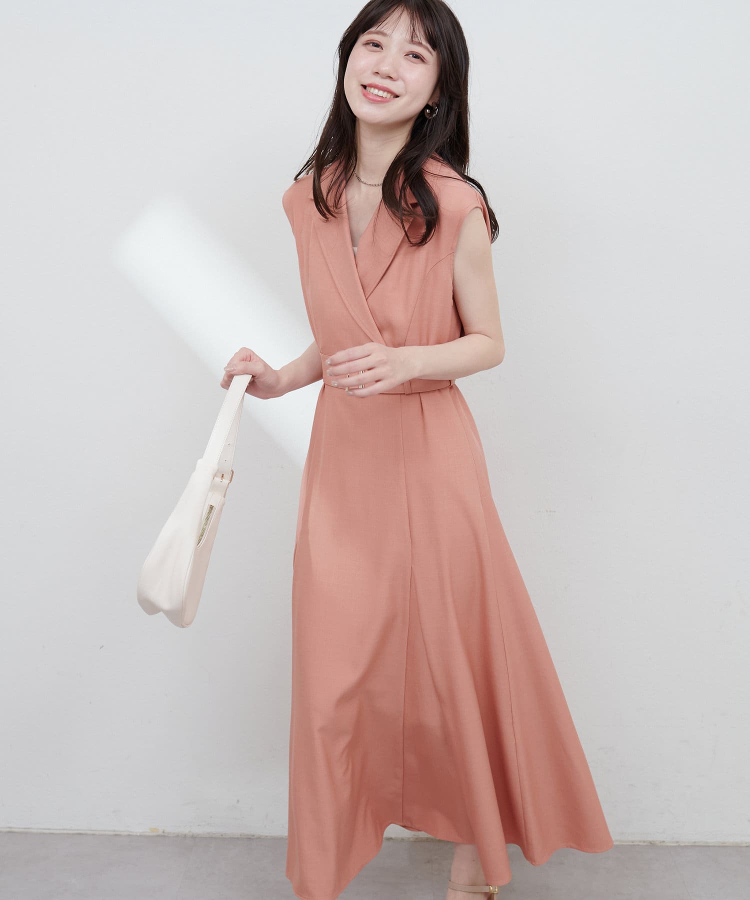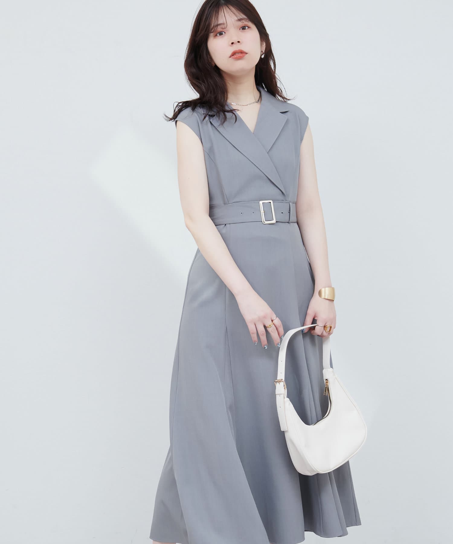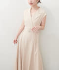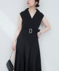 まるでテーラードジャケットのようなオープンカラーが大人の余裕を漂わせるレディワンピース。