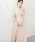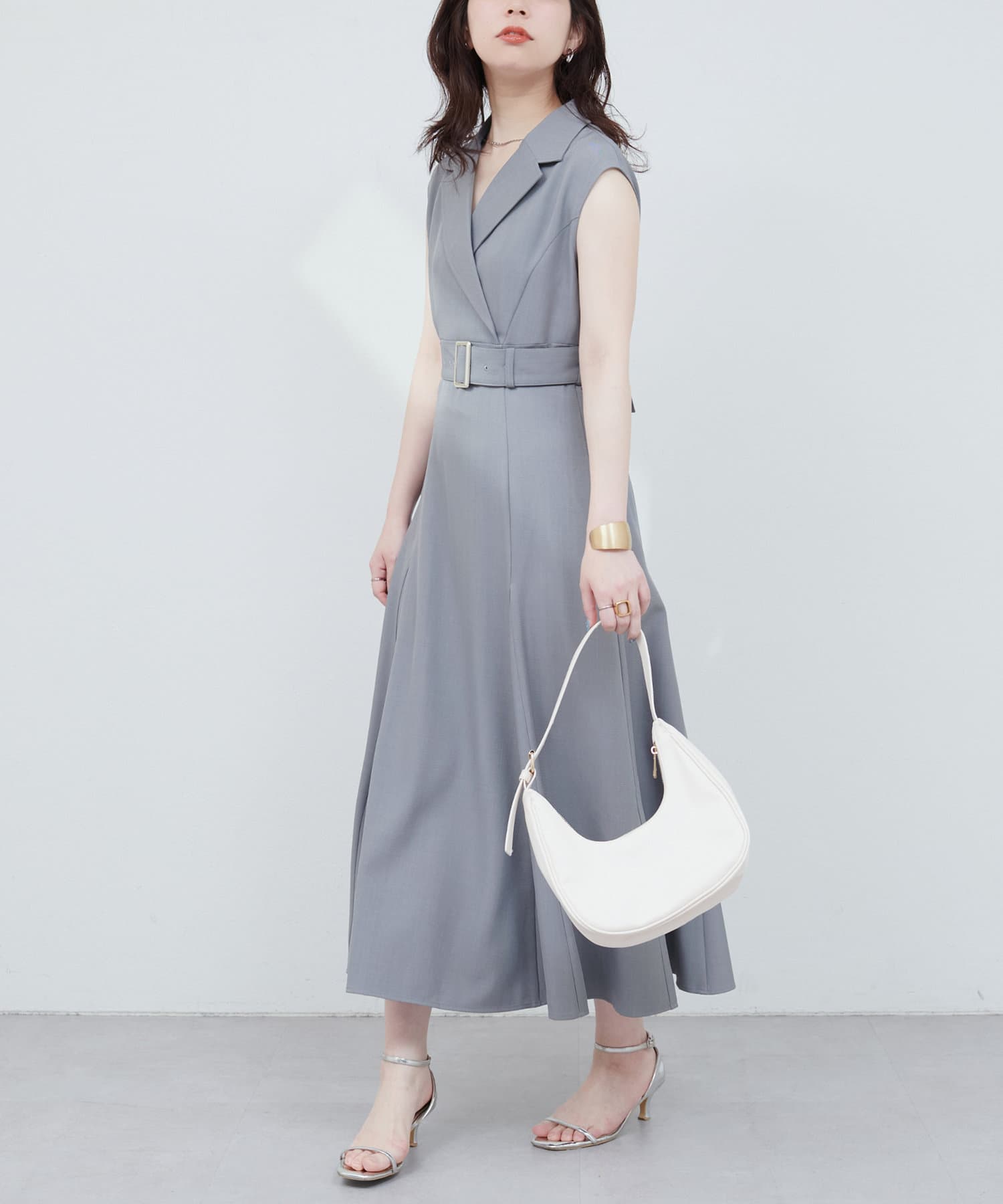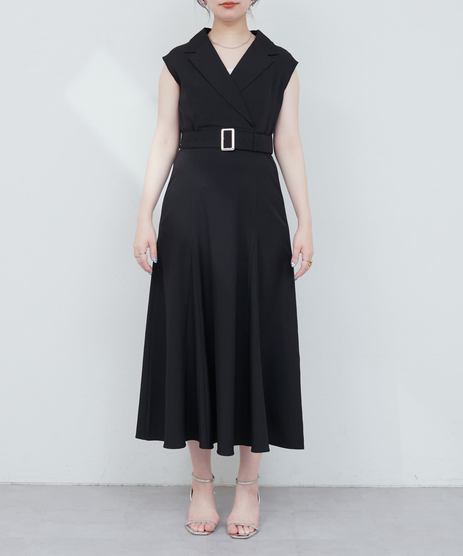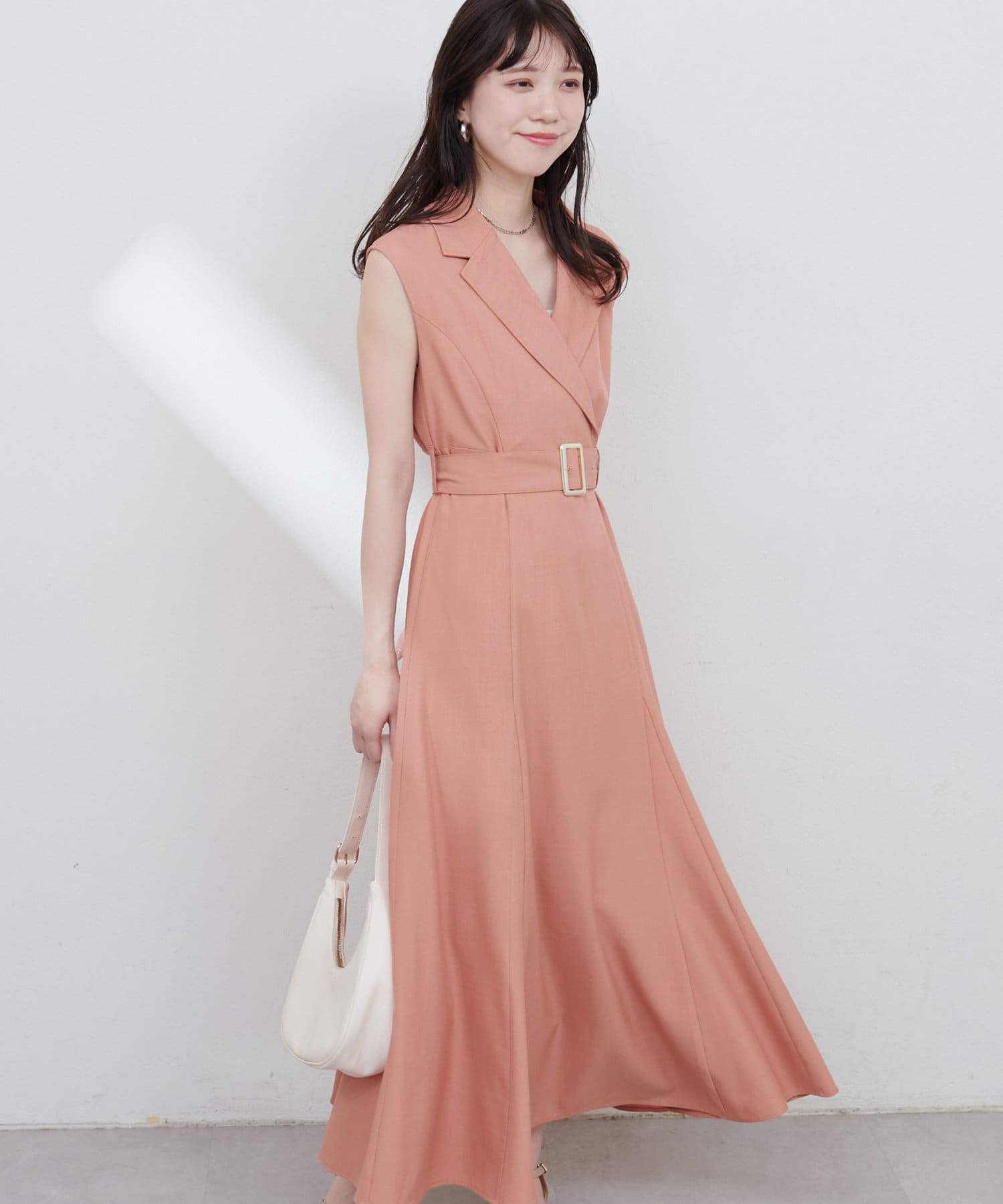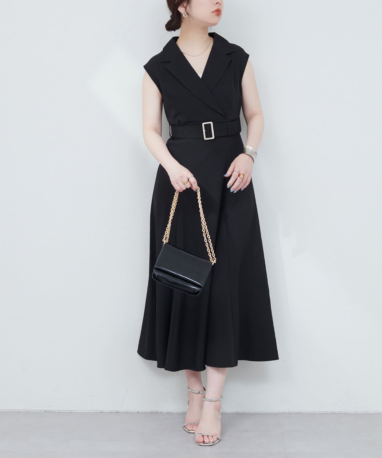 まるでテーラードジャケットのようなオープンカラーが大人の余裕を漂わせるレディワンピース。