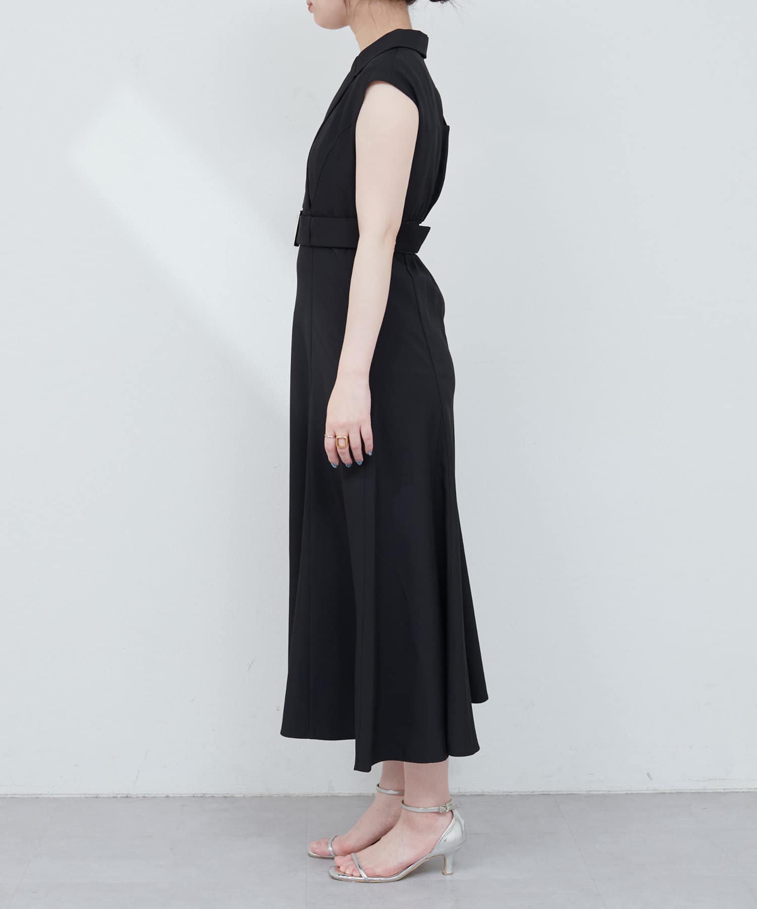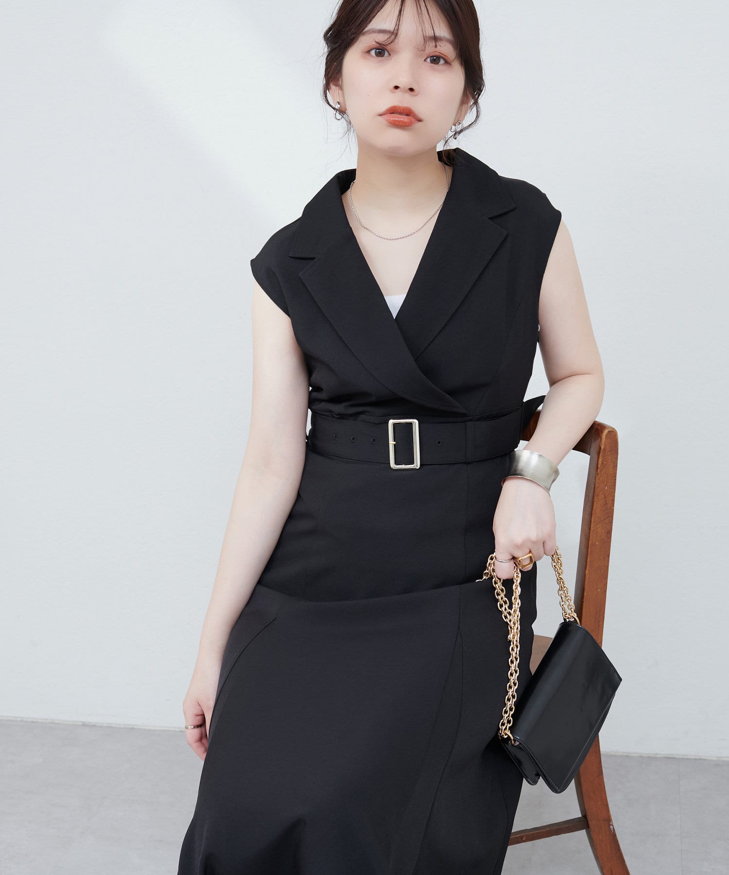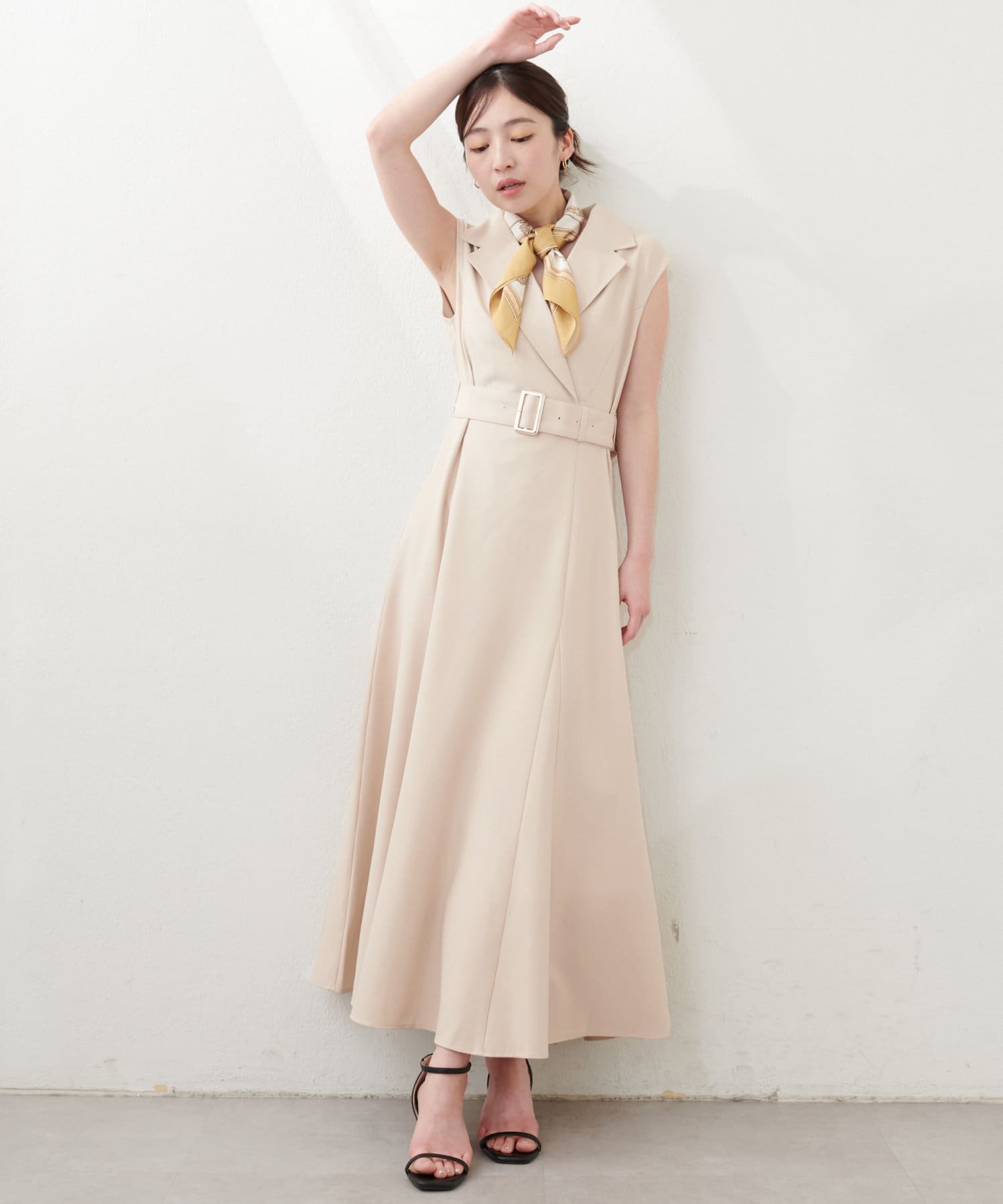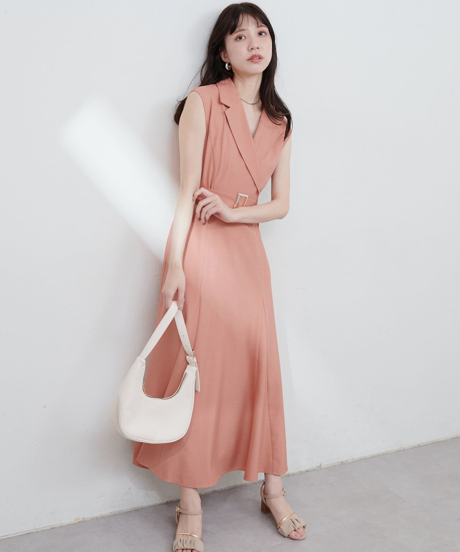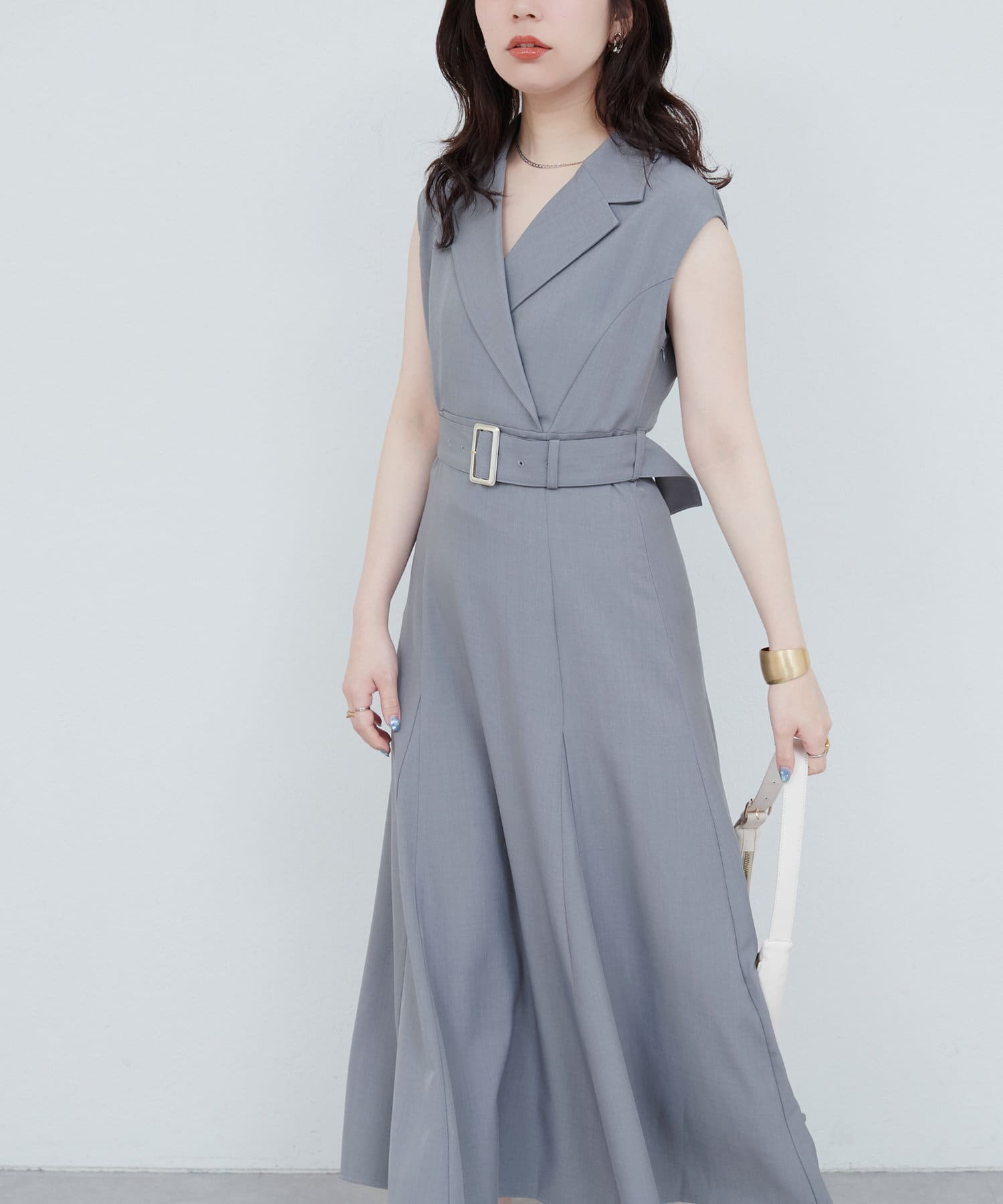 まるでテーラードジャケットのようなオープンカラーが大人の余裕を漂わせるレディワンピース。