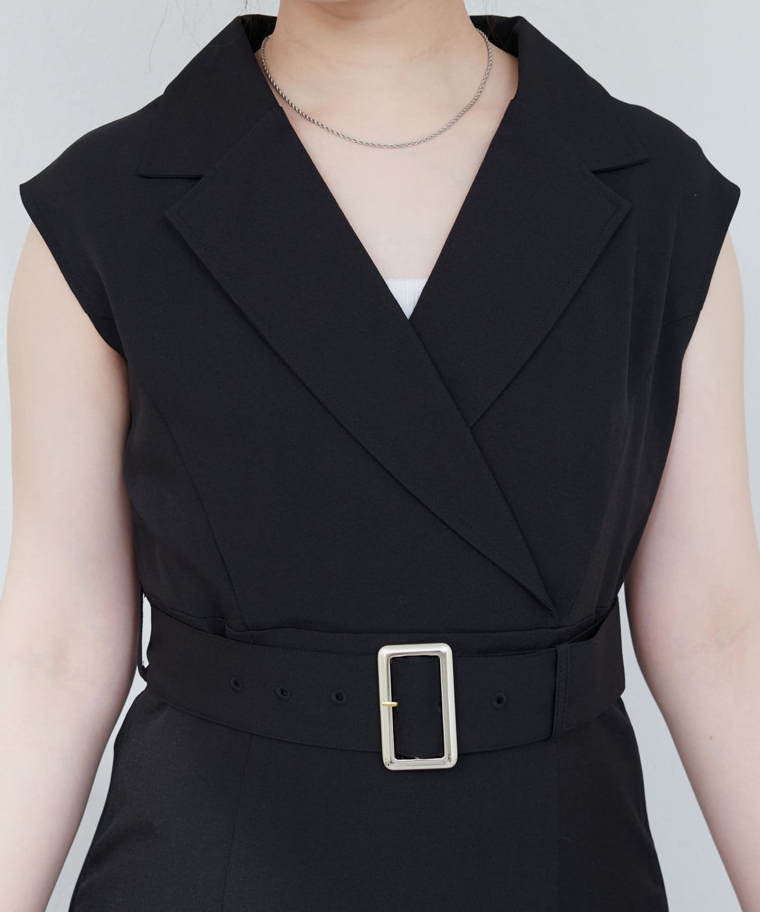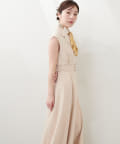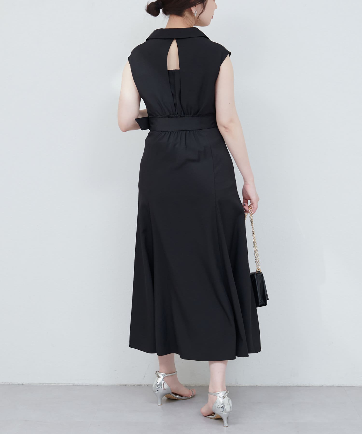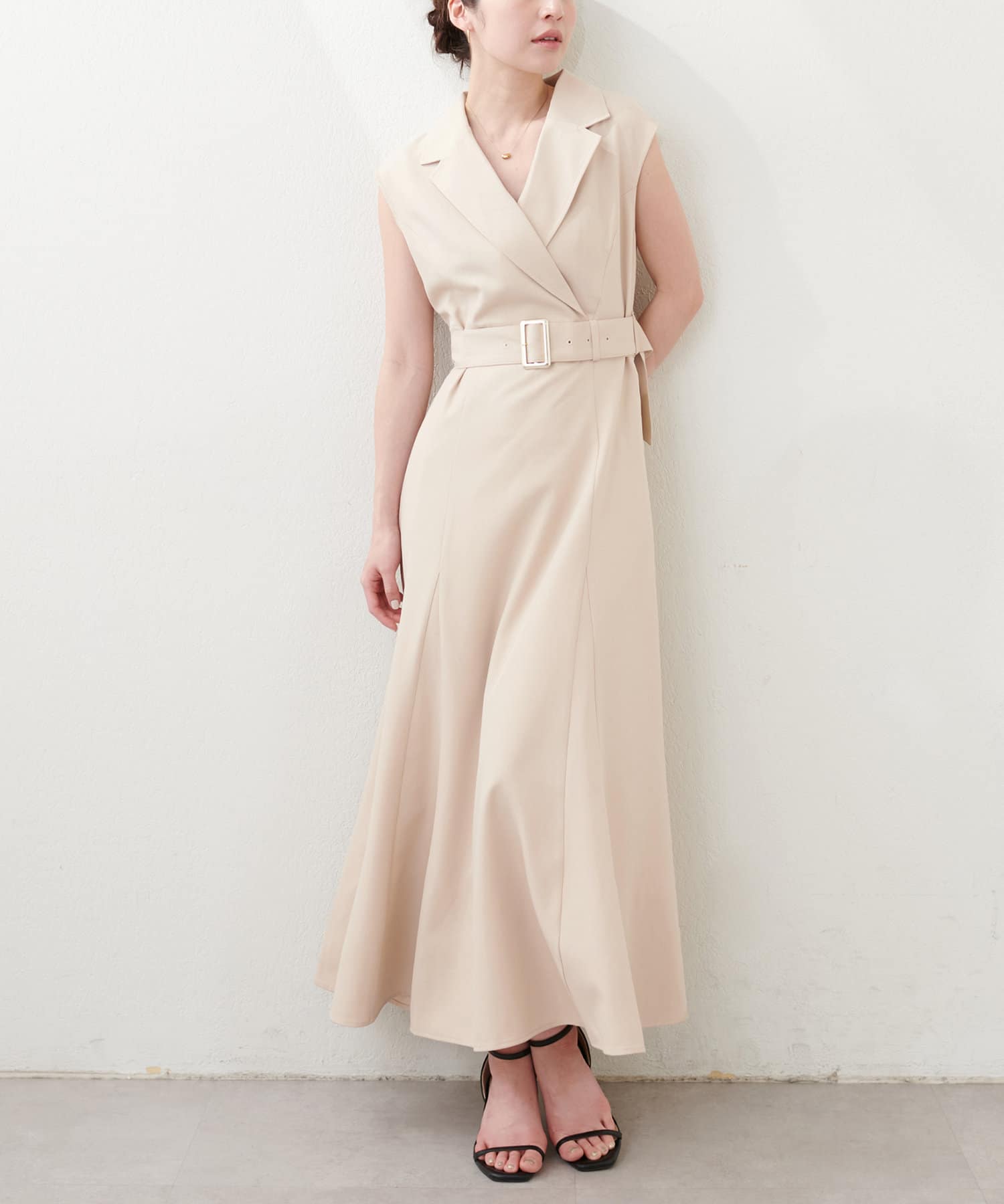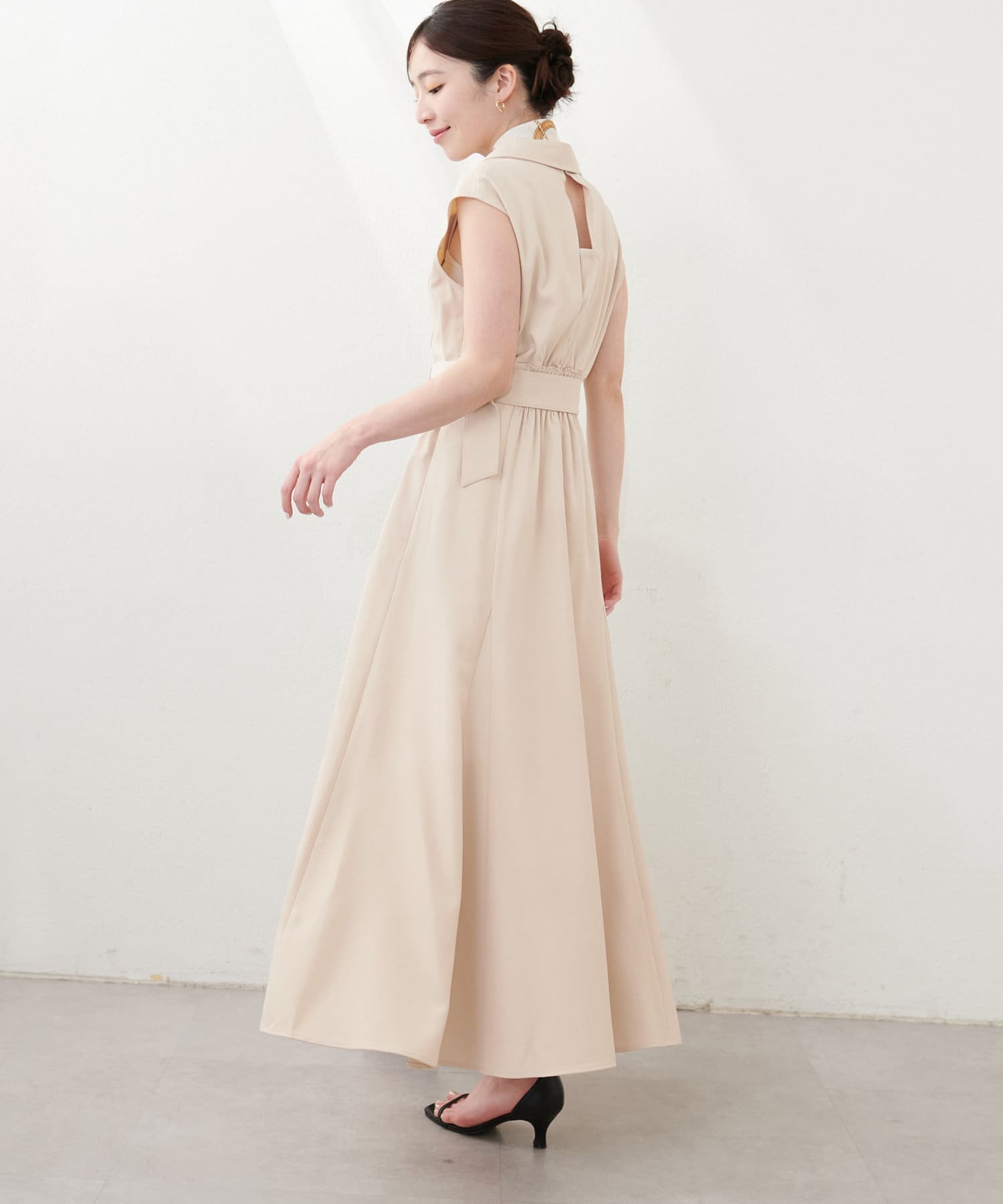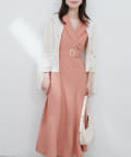 まるでテーラードジャケットのようなオープンカラーが大人の余裕を漂わせるレディワンピース。