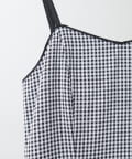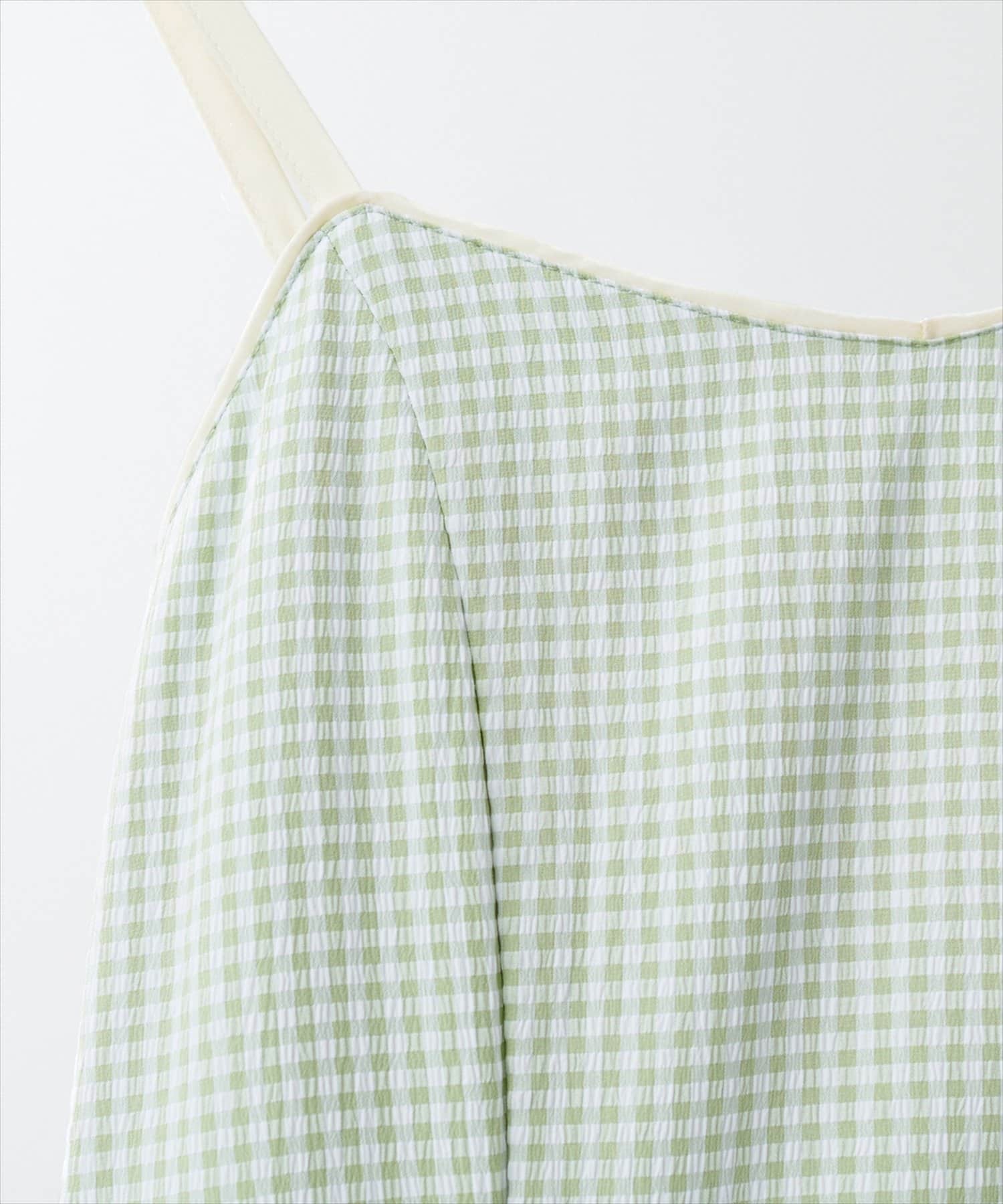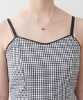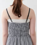 胸元のパイピングや肩紐は、花柄はサテン地、ギンガムチェックはマットにしたのもポイント。