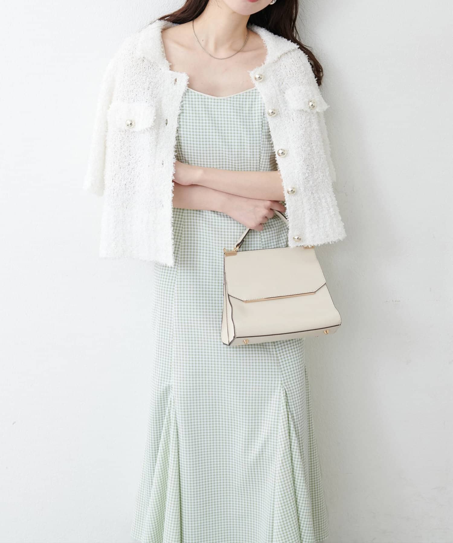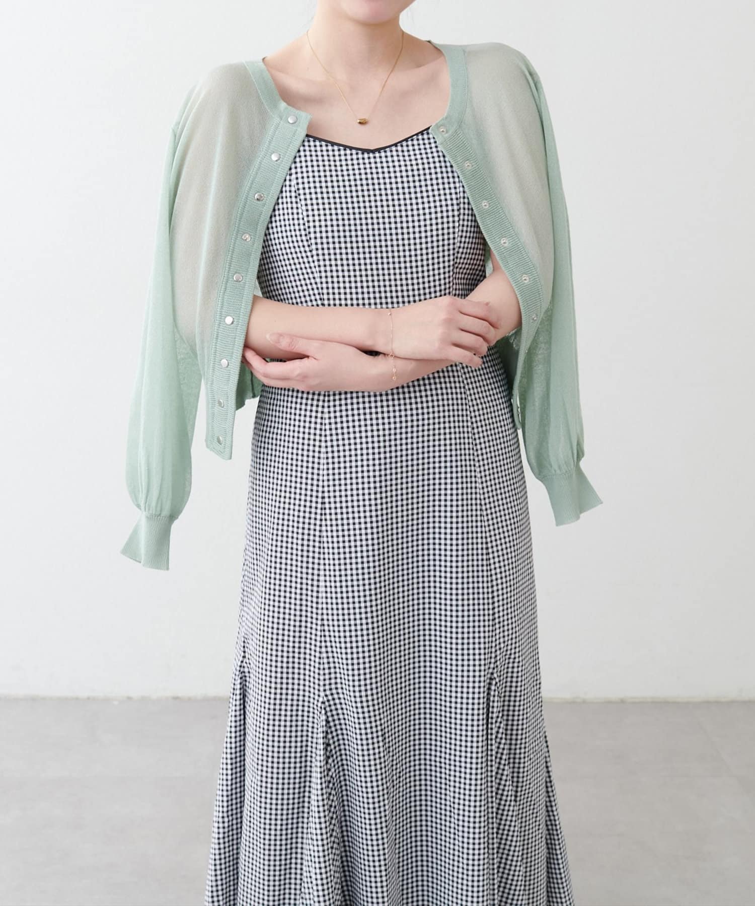 肌見せに抵抗がある方はカーディガンやボレロ合わせがおすすめです。