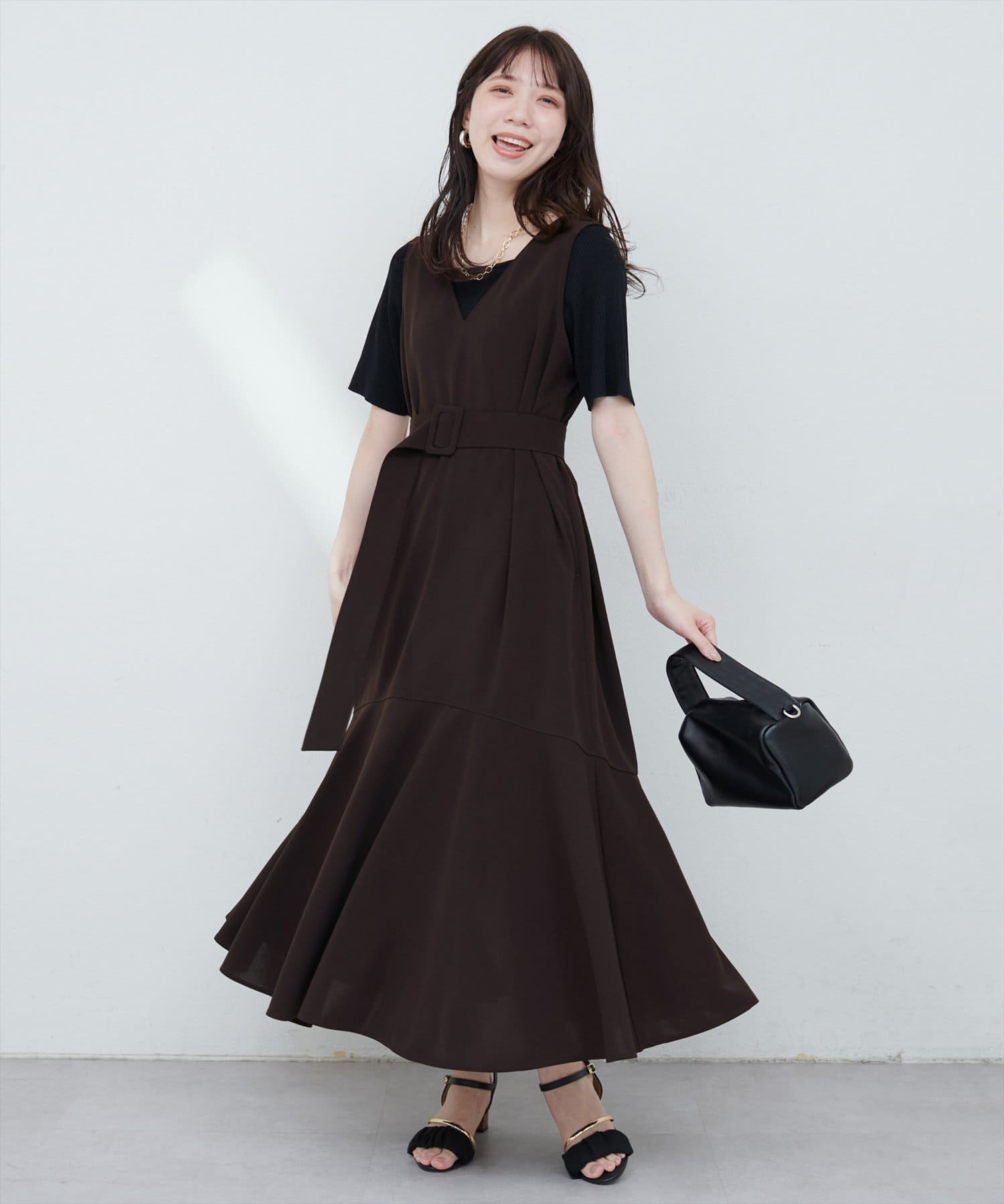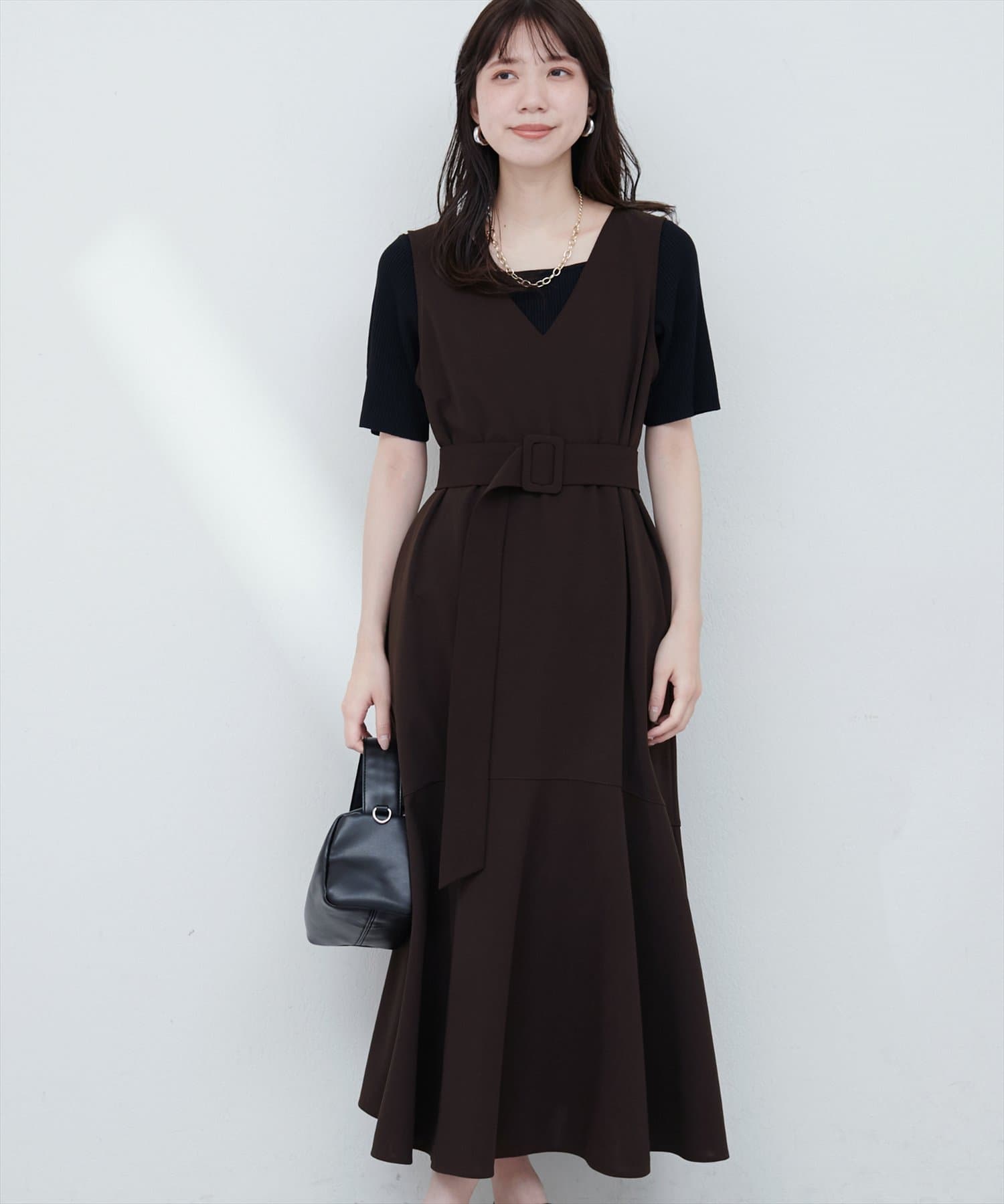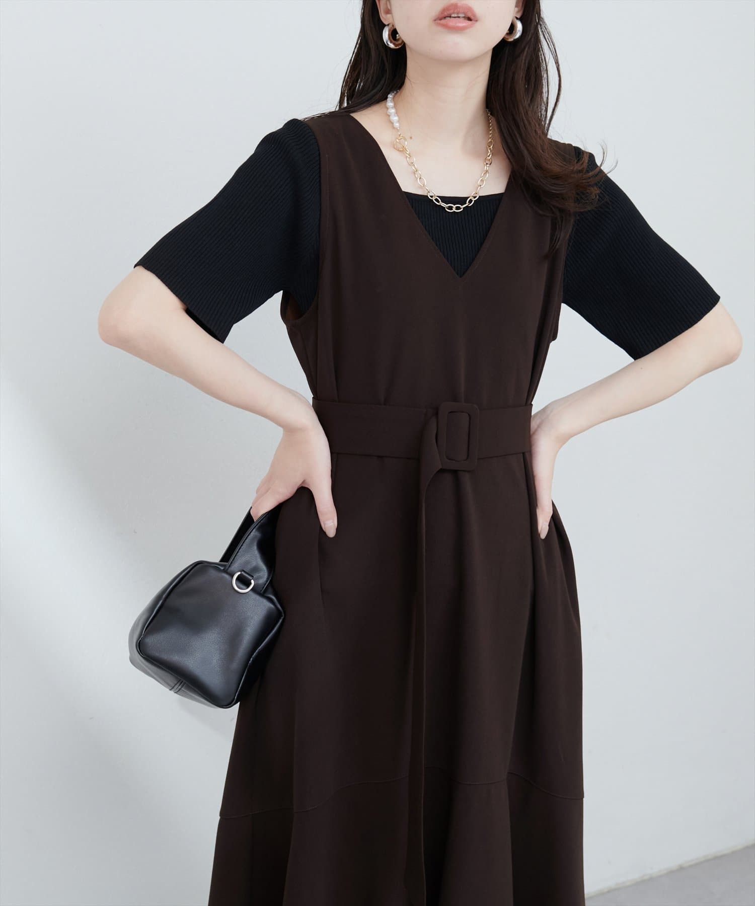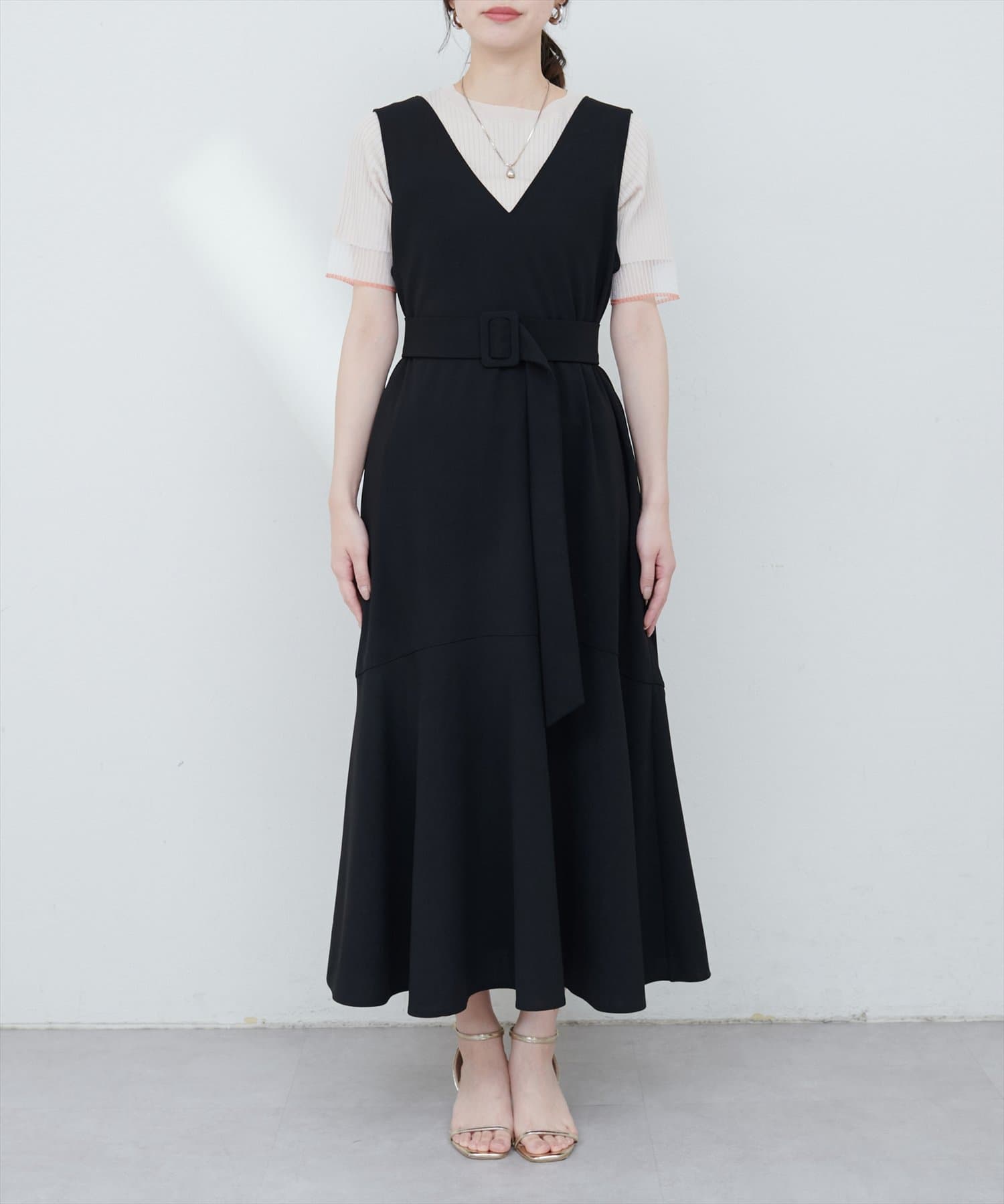 【mamamo】ベルト付きストレッチジャンスカワンピース