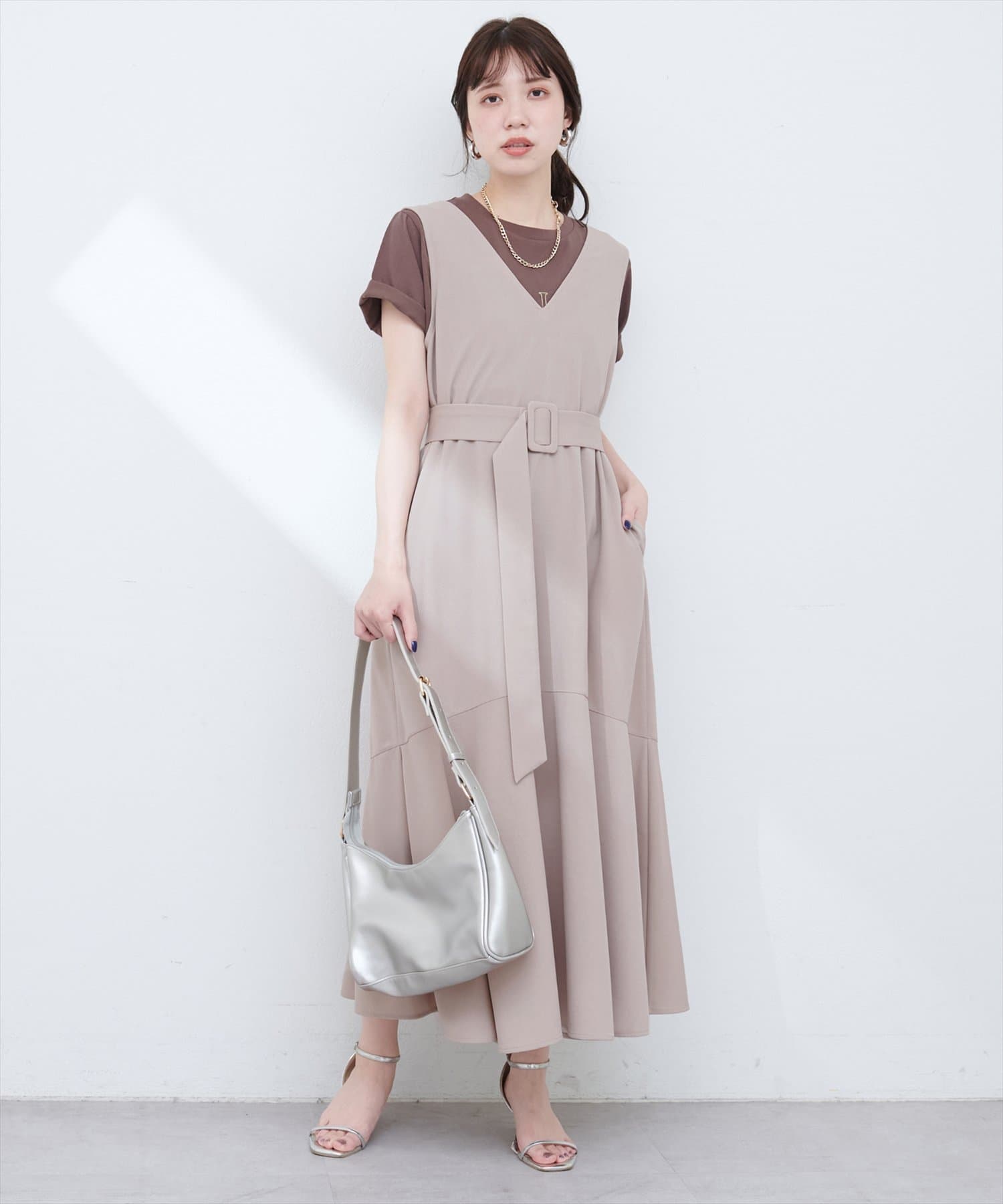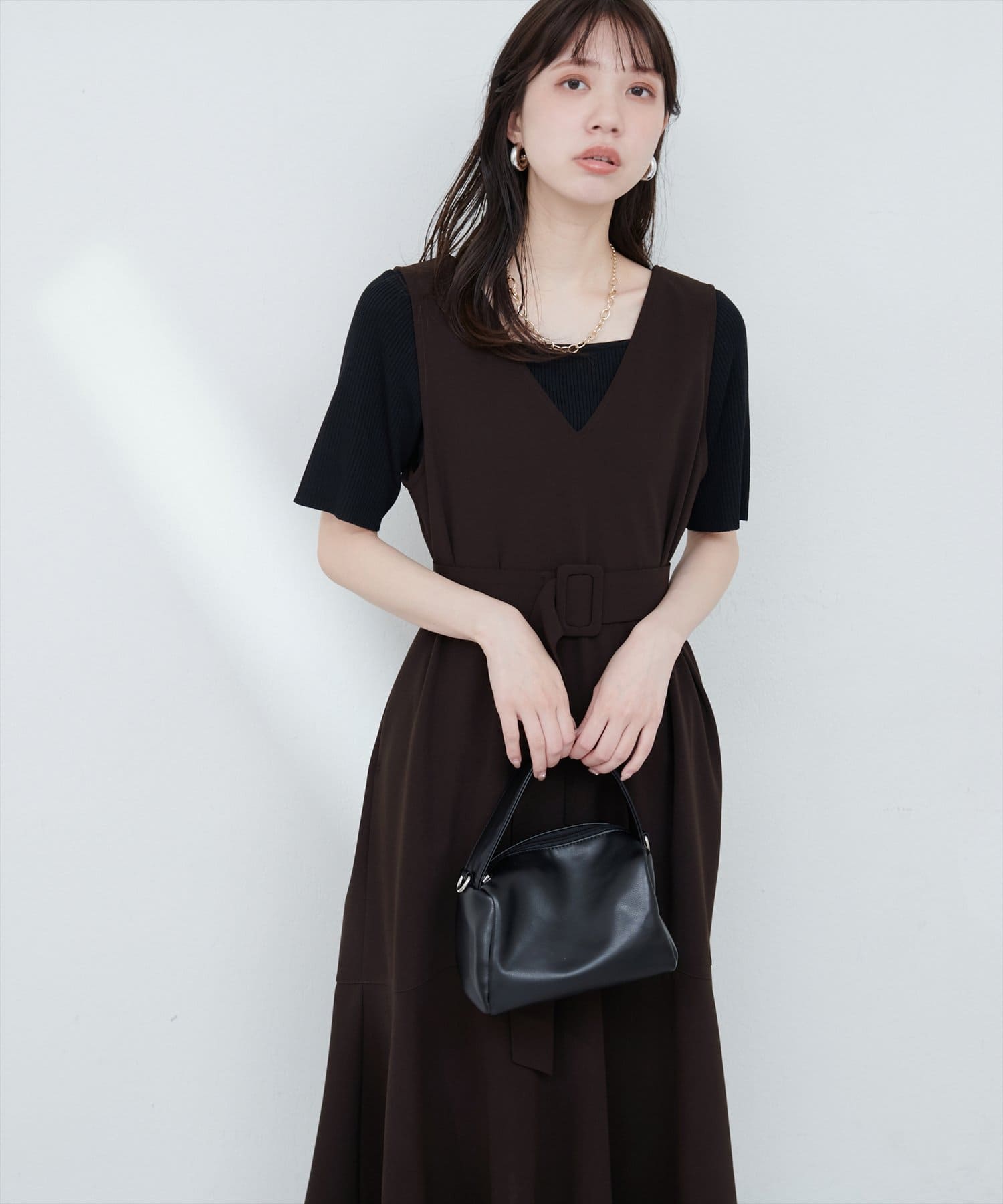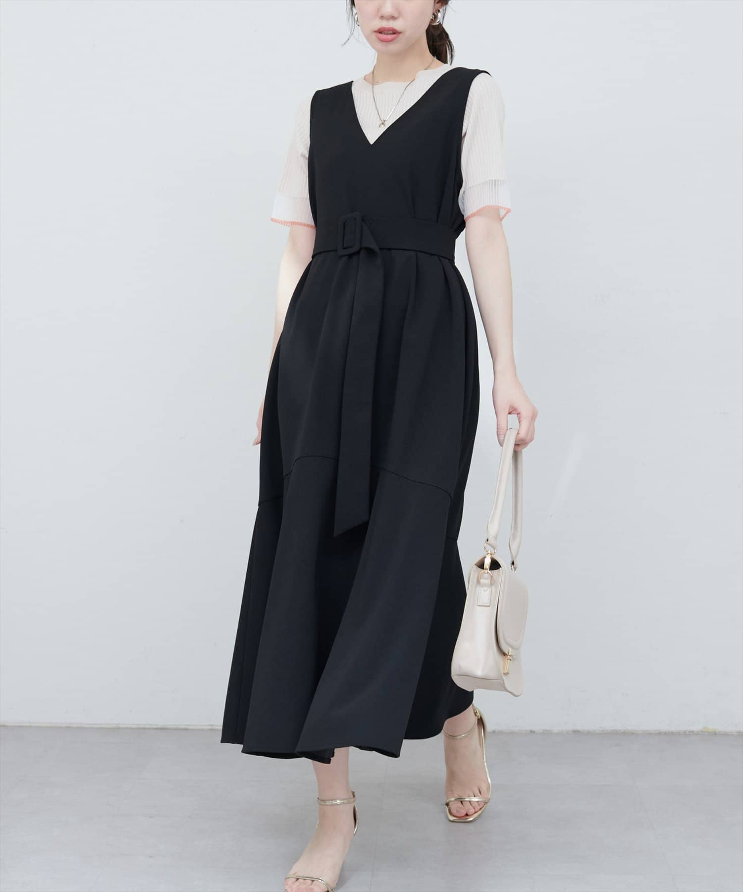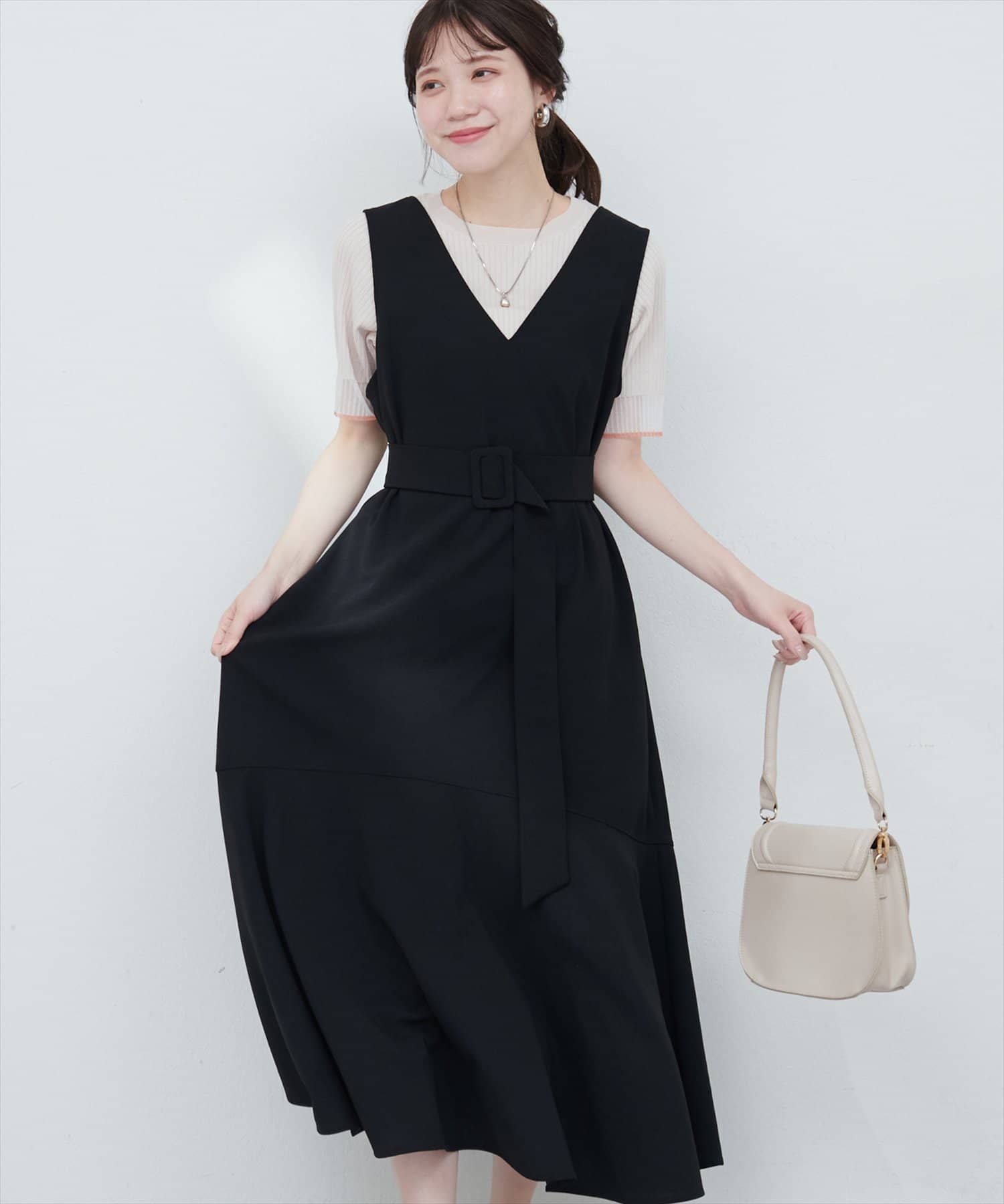 【mamamo】ベルト付きストレッチジャンスカワンピース