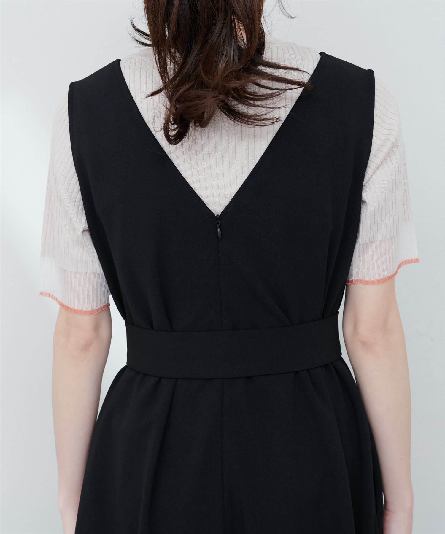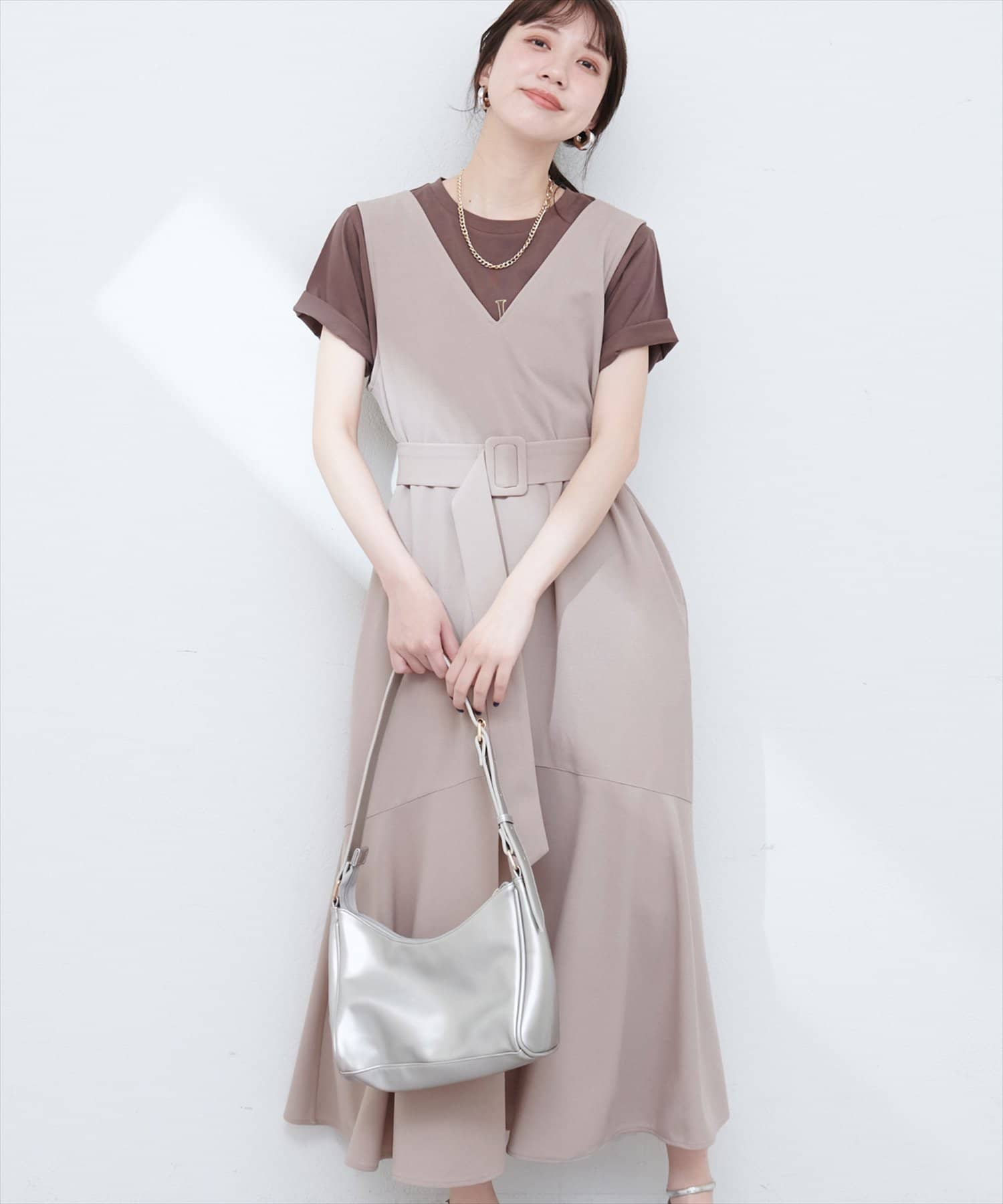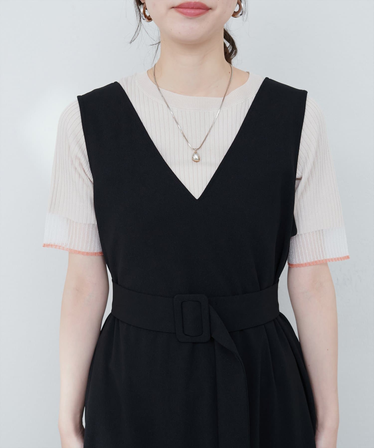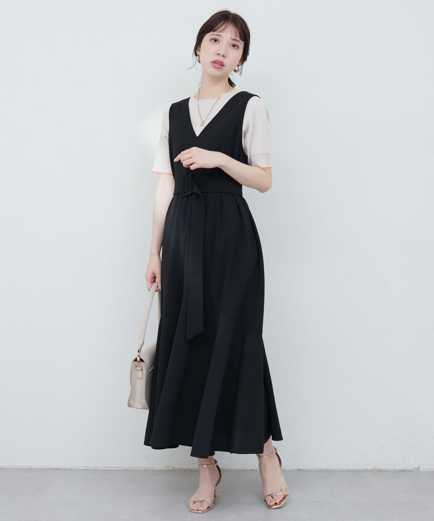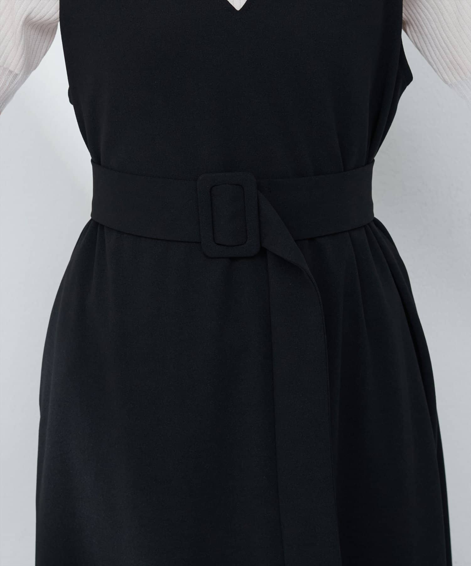 【mamamo】ベルト付きストレッチジャンスカワンピース
