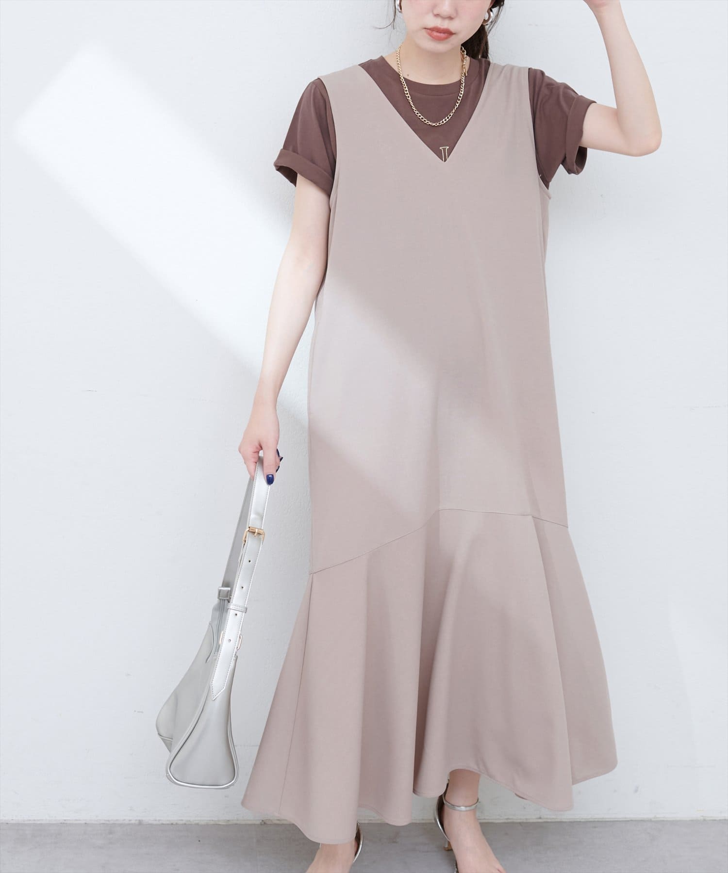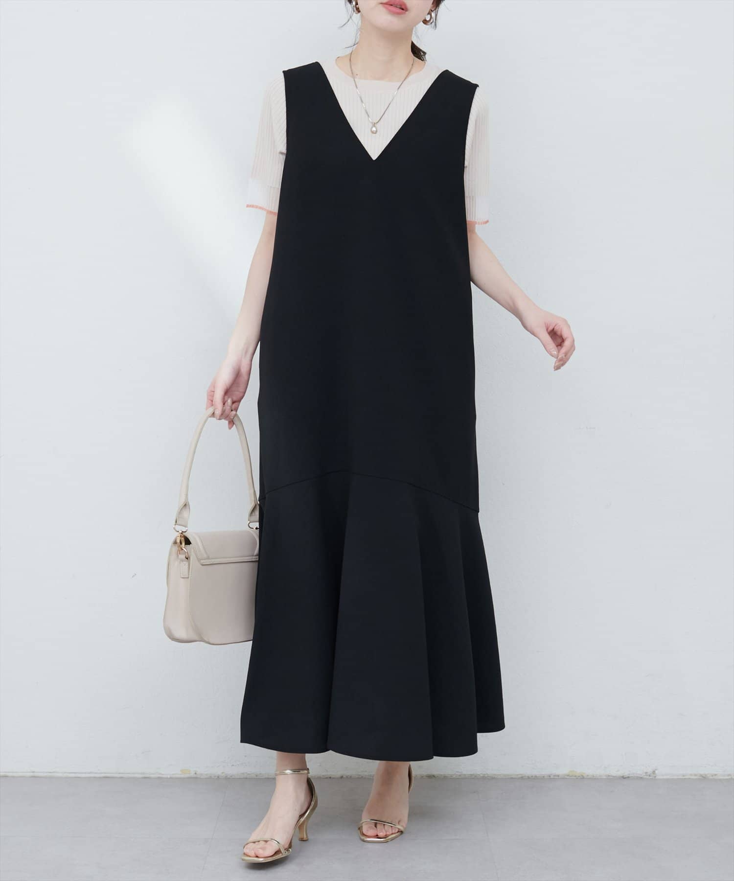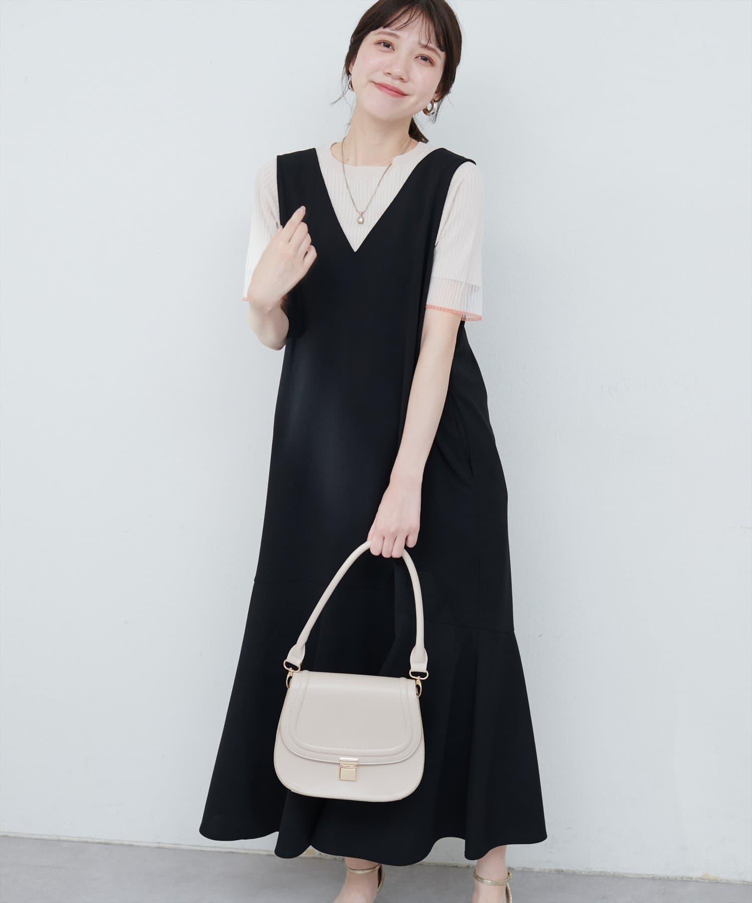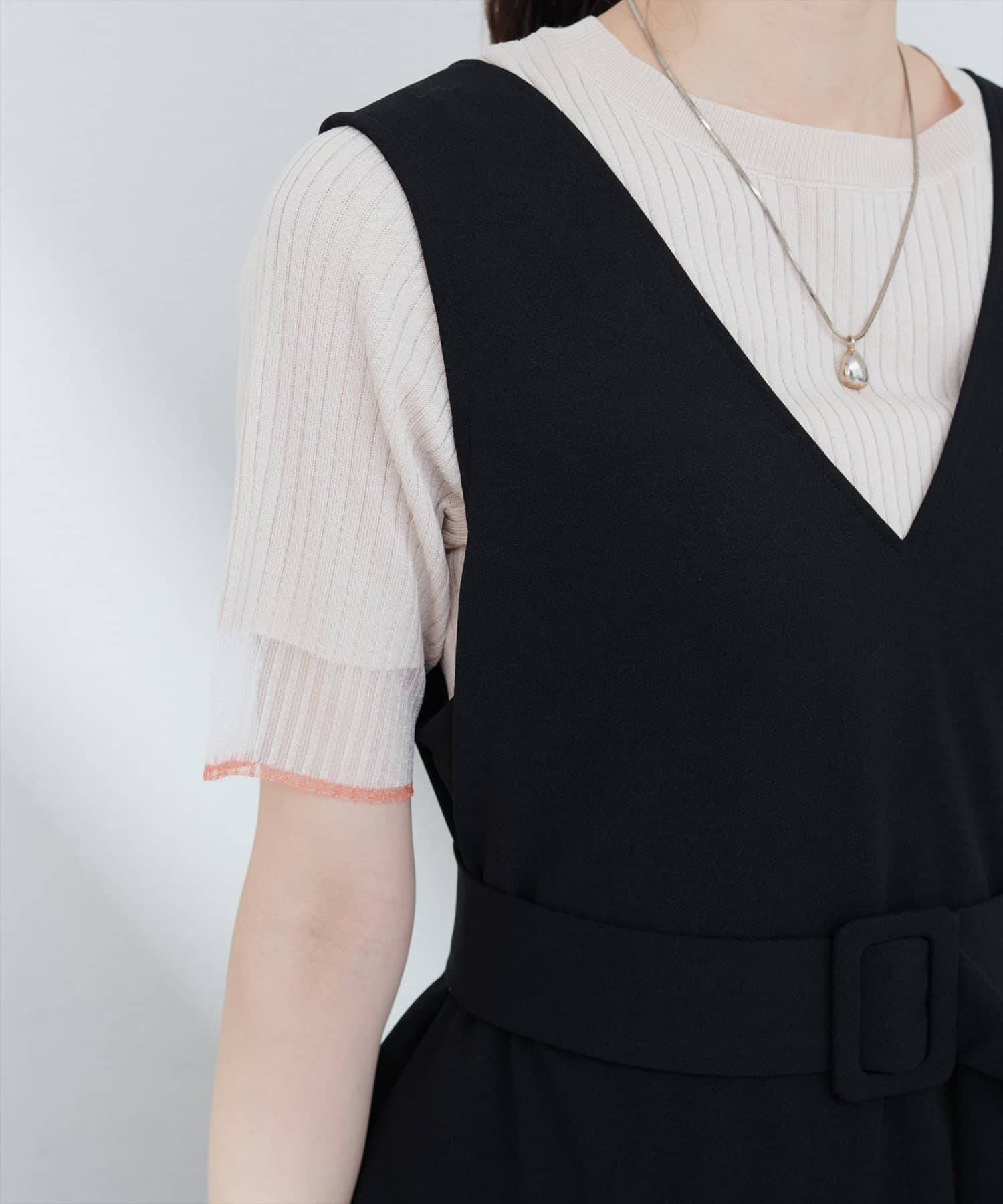 【mamamo】ベルト付きストレッチジャンスカワンピース