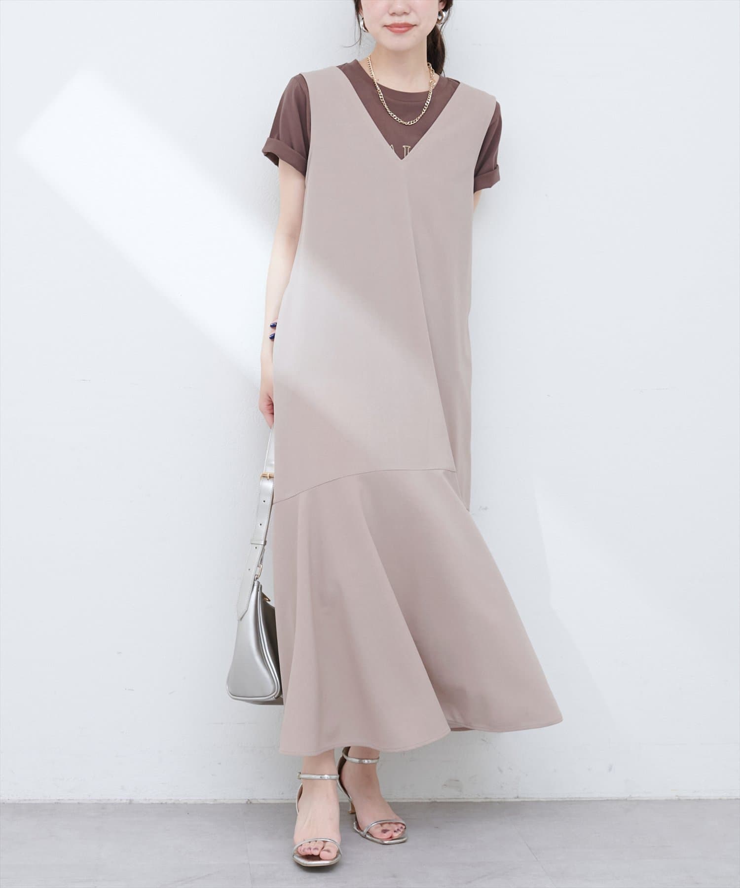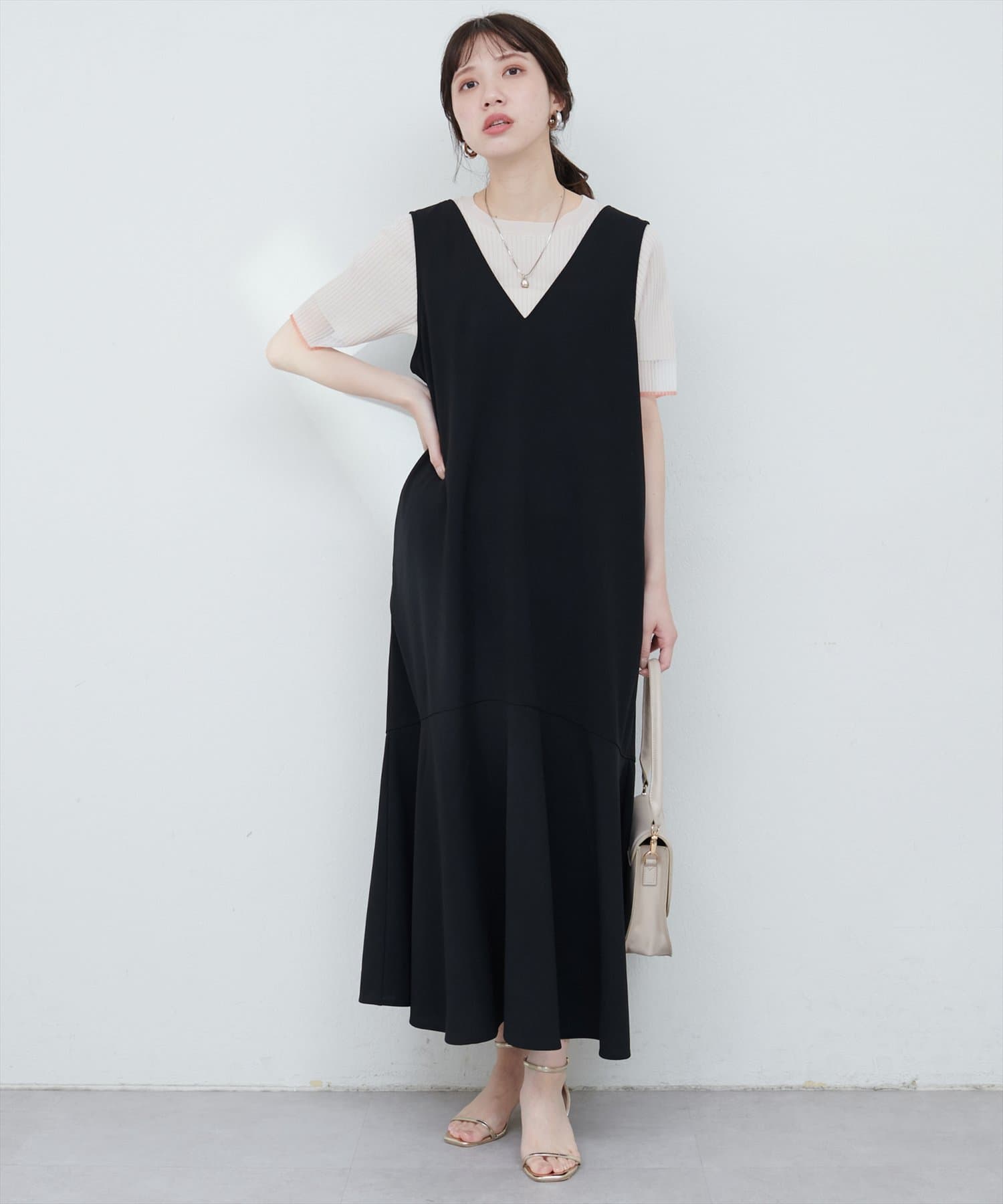 カットジョーゼットのようななめらかな生地感のジャンスカ。
