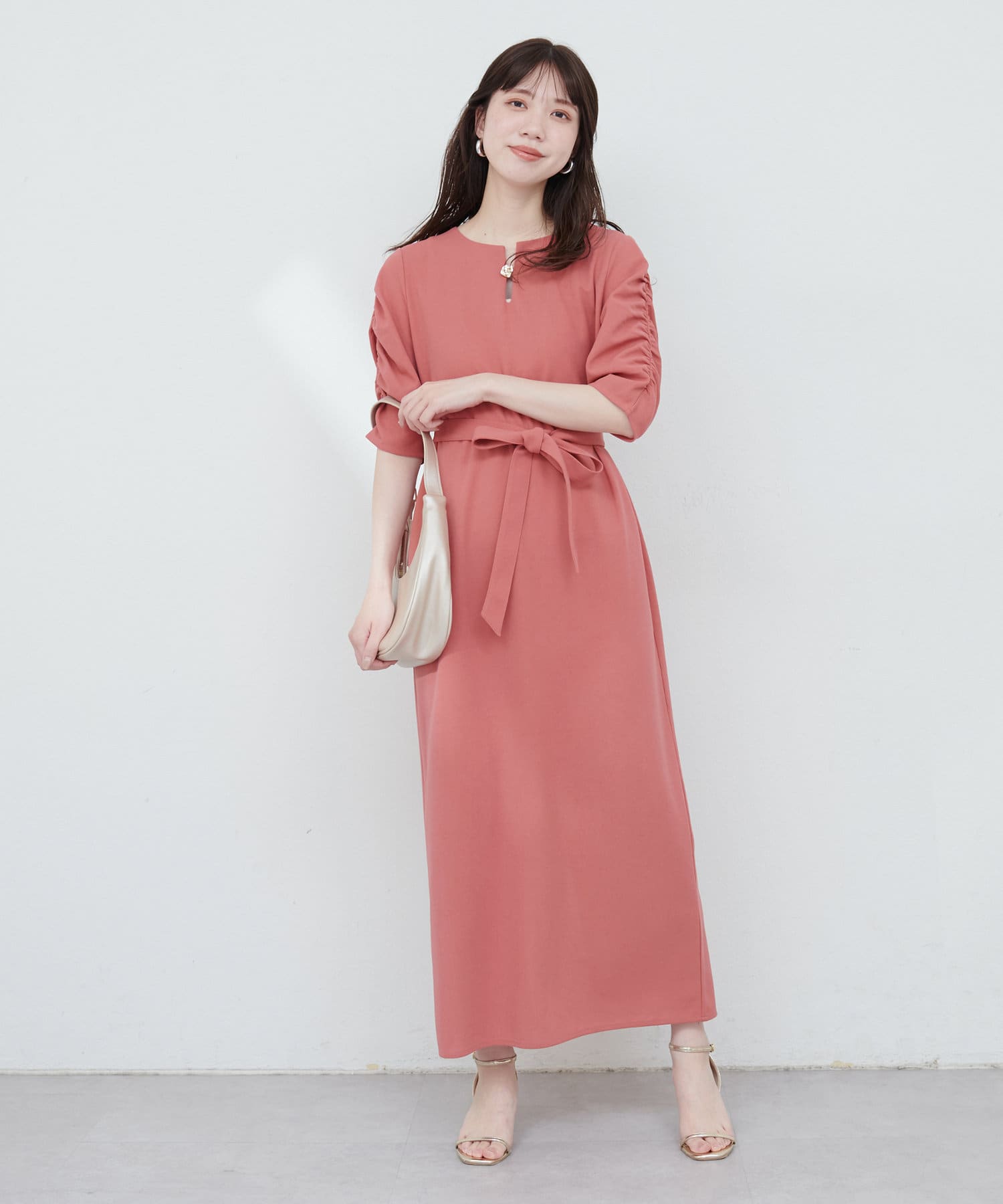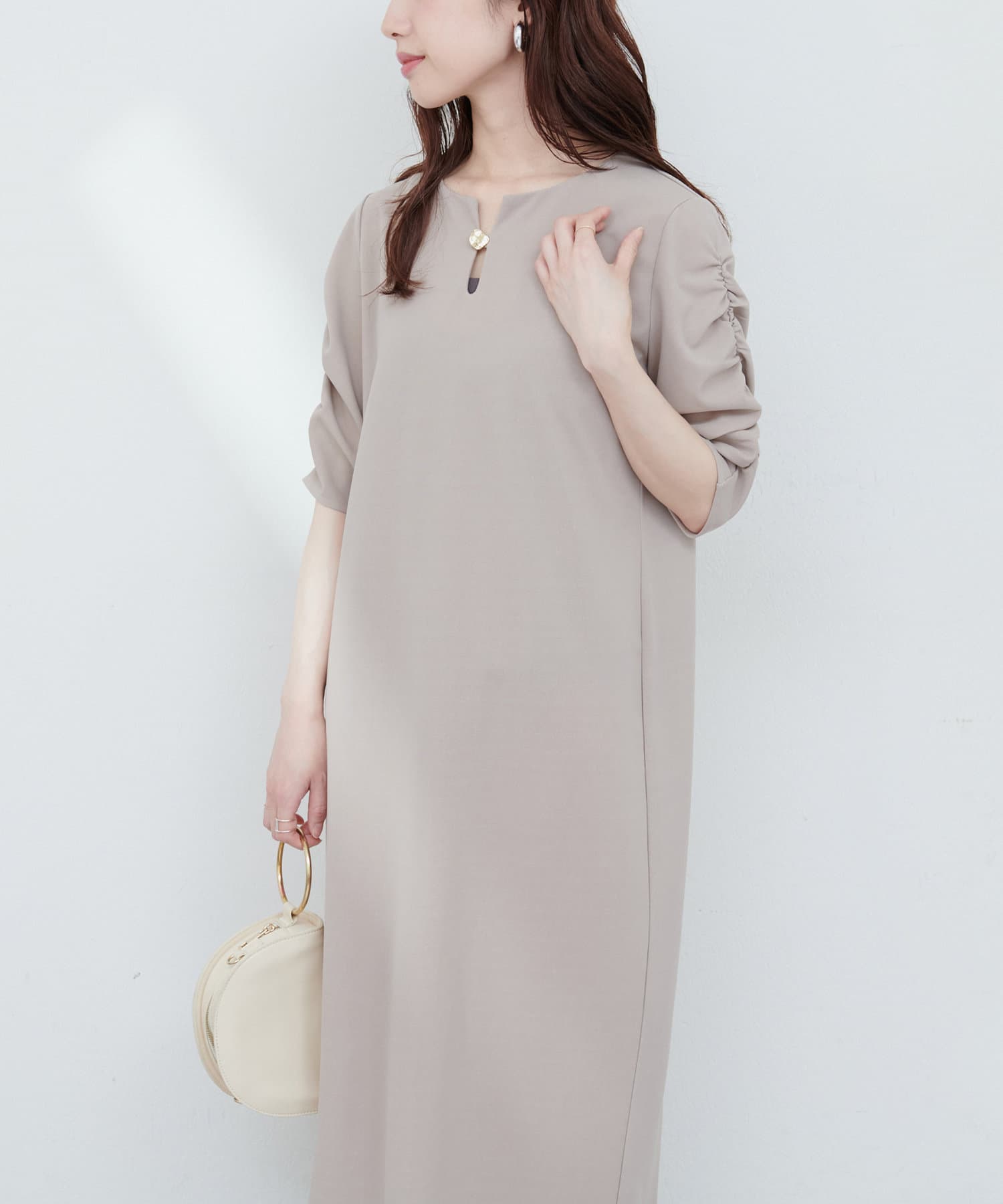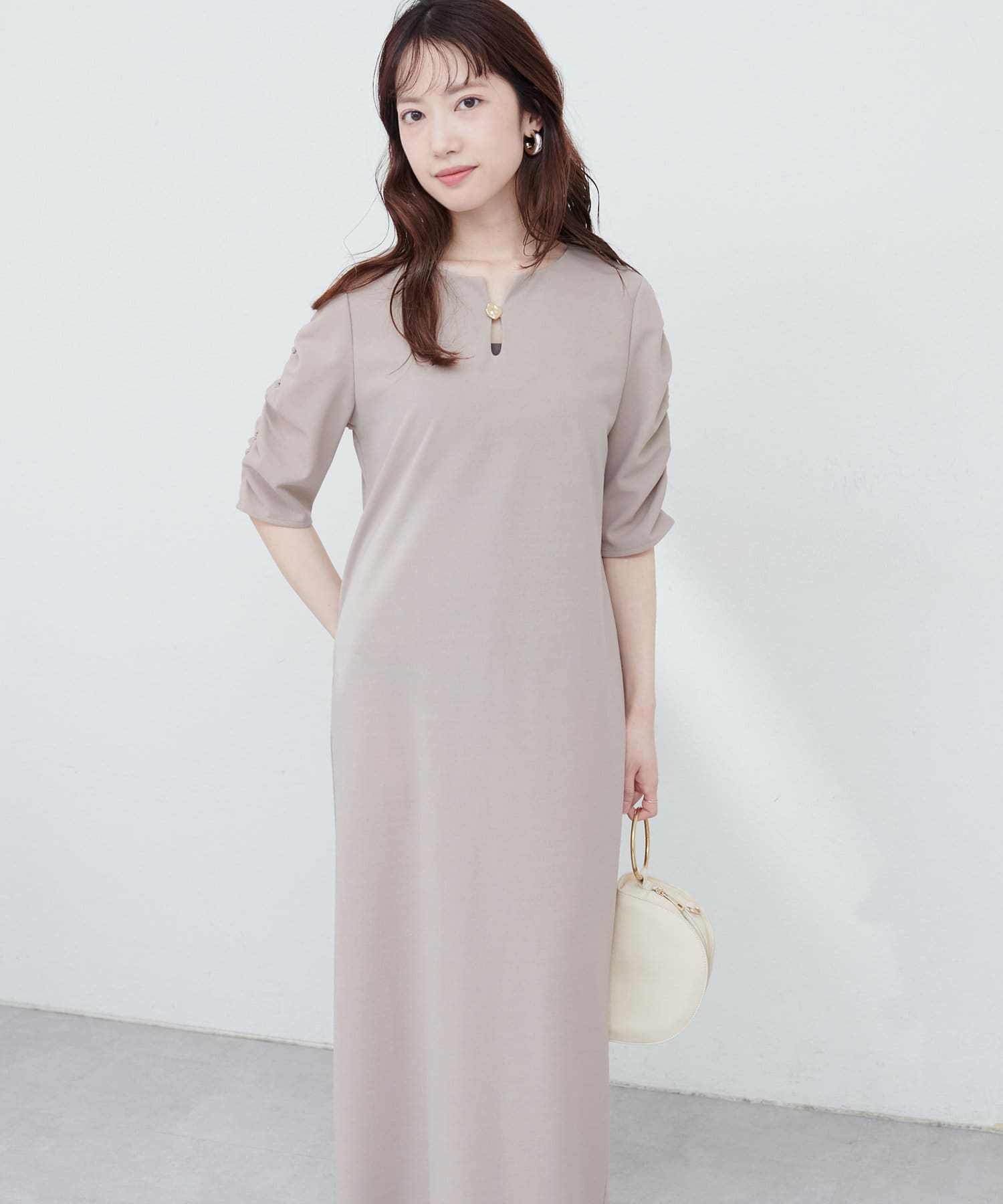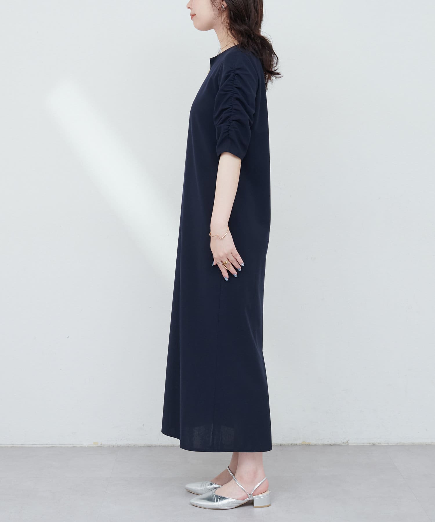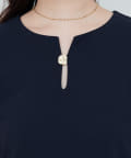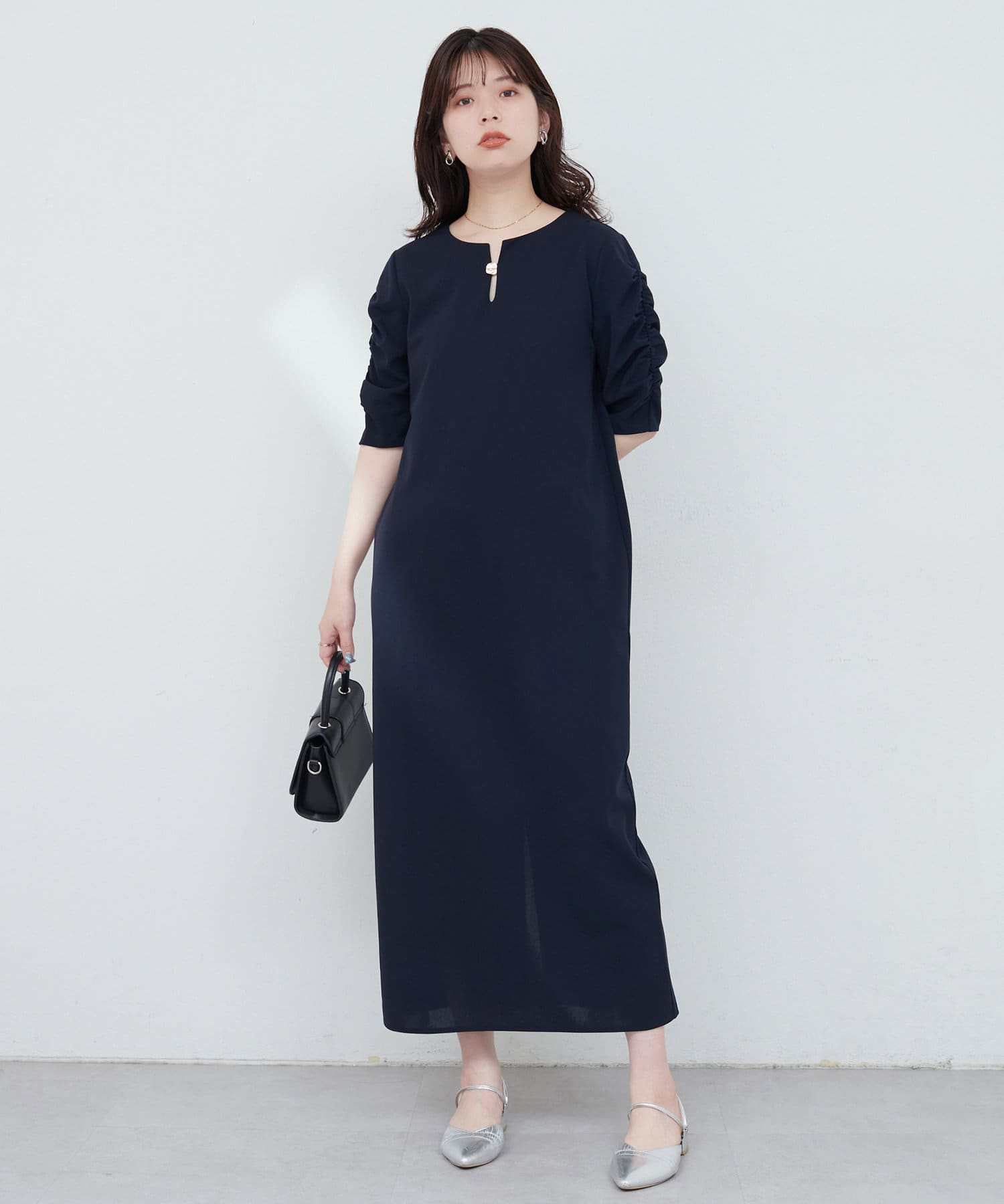 フロントのボタンでさりげない上品さをプラスし、落ち感のある生地が、体のラインをすっきりと見せてくれるのも嬉しいポイントです。