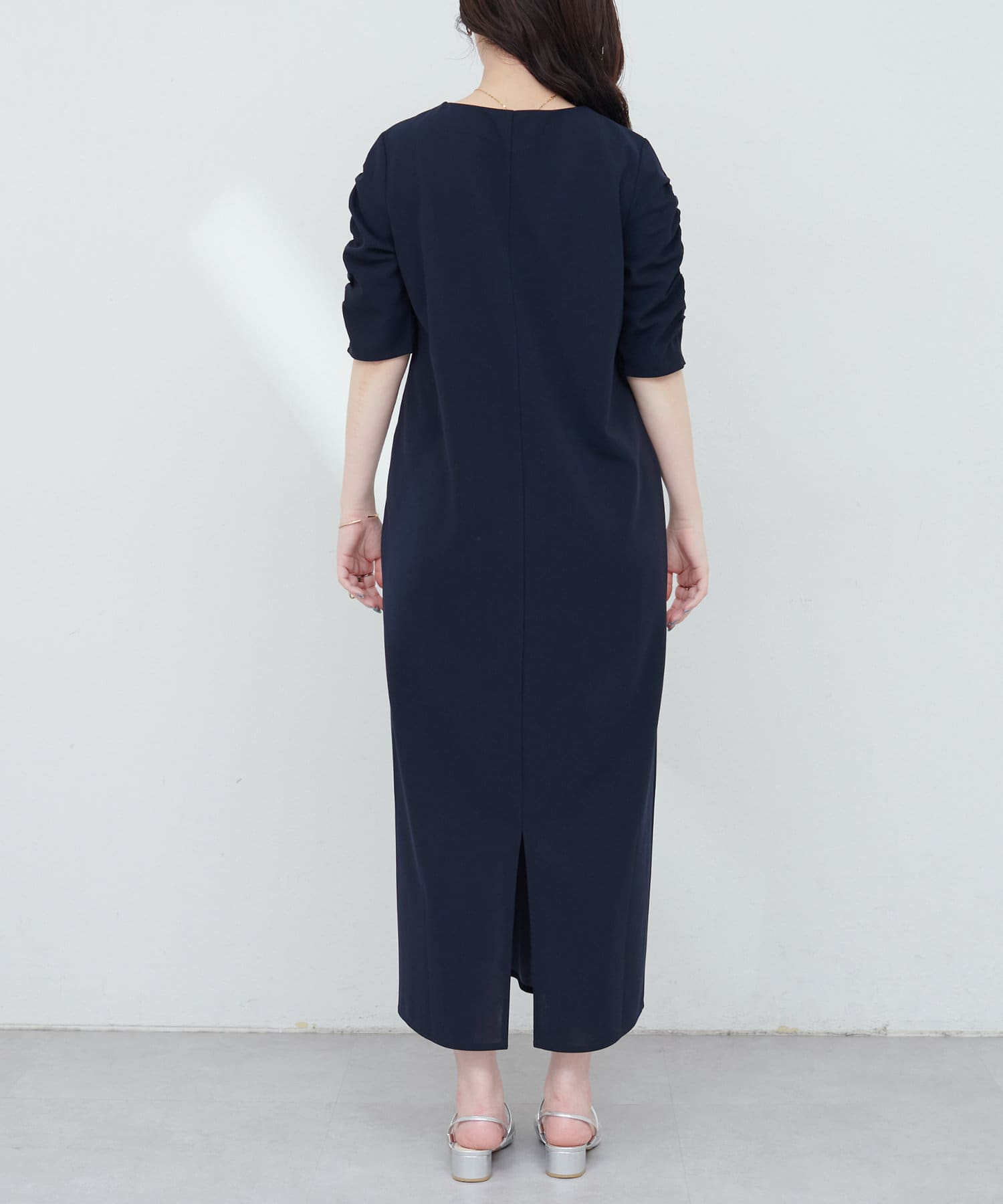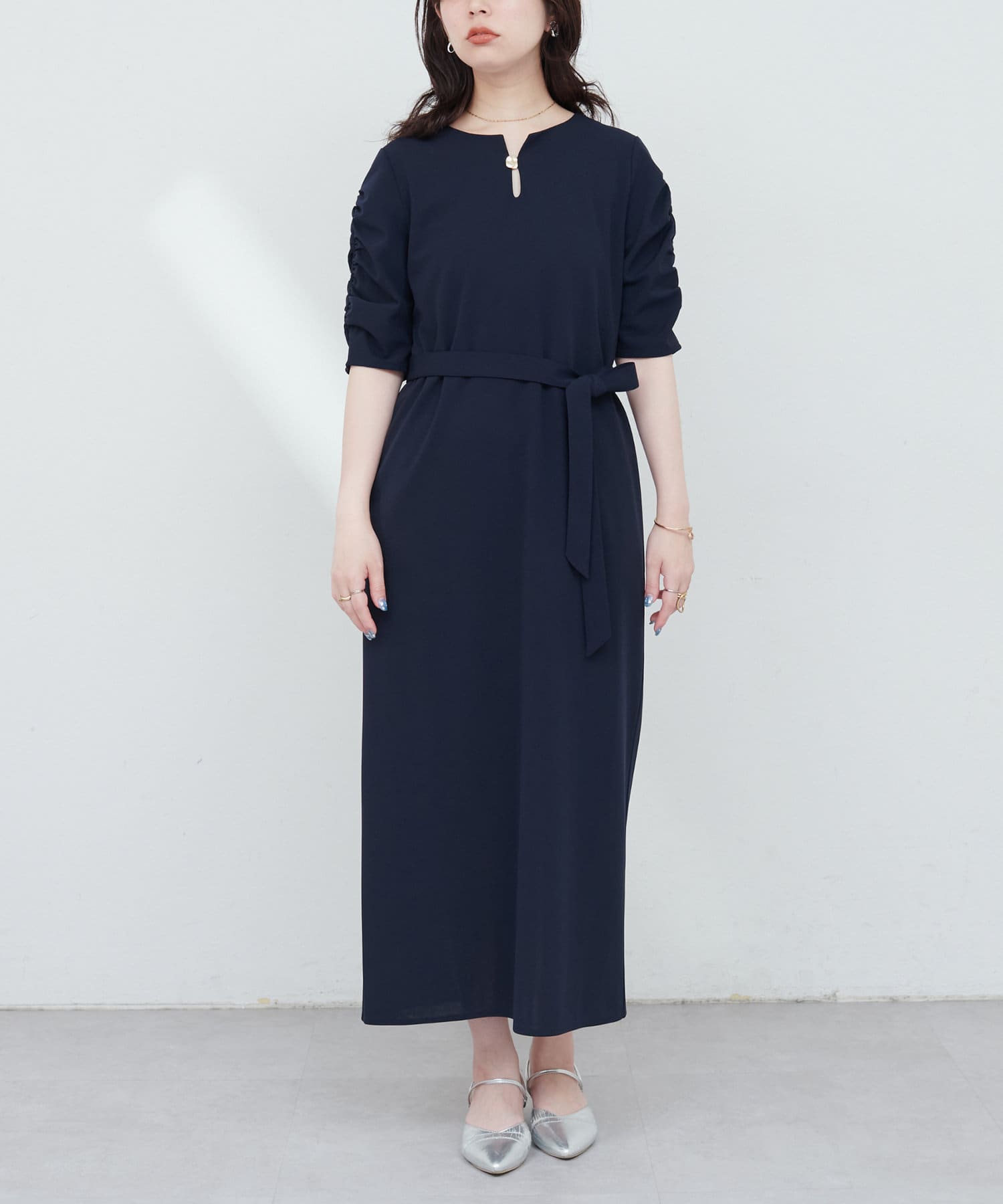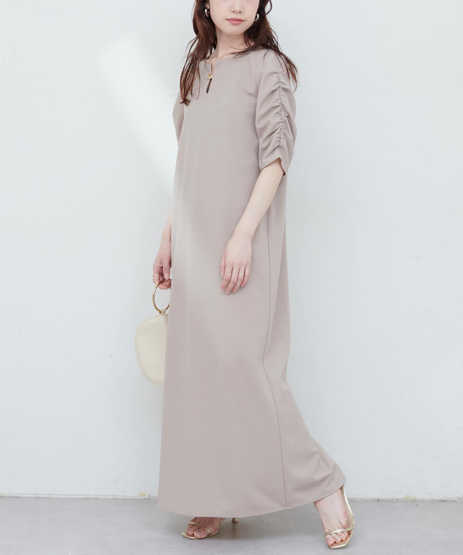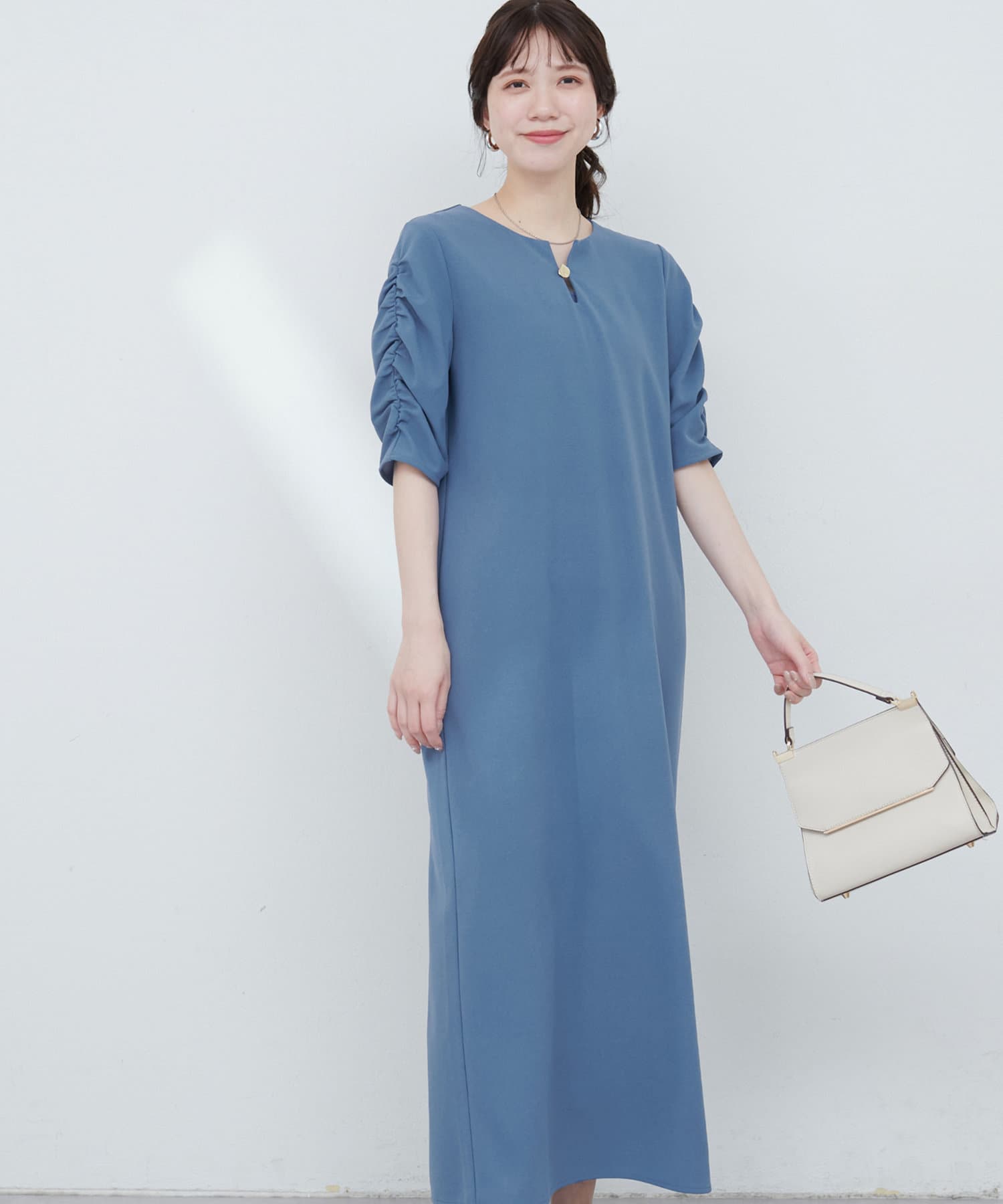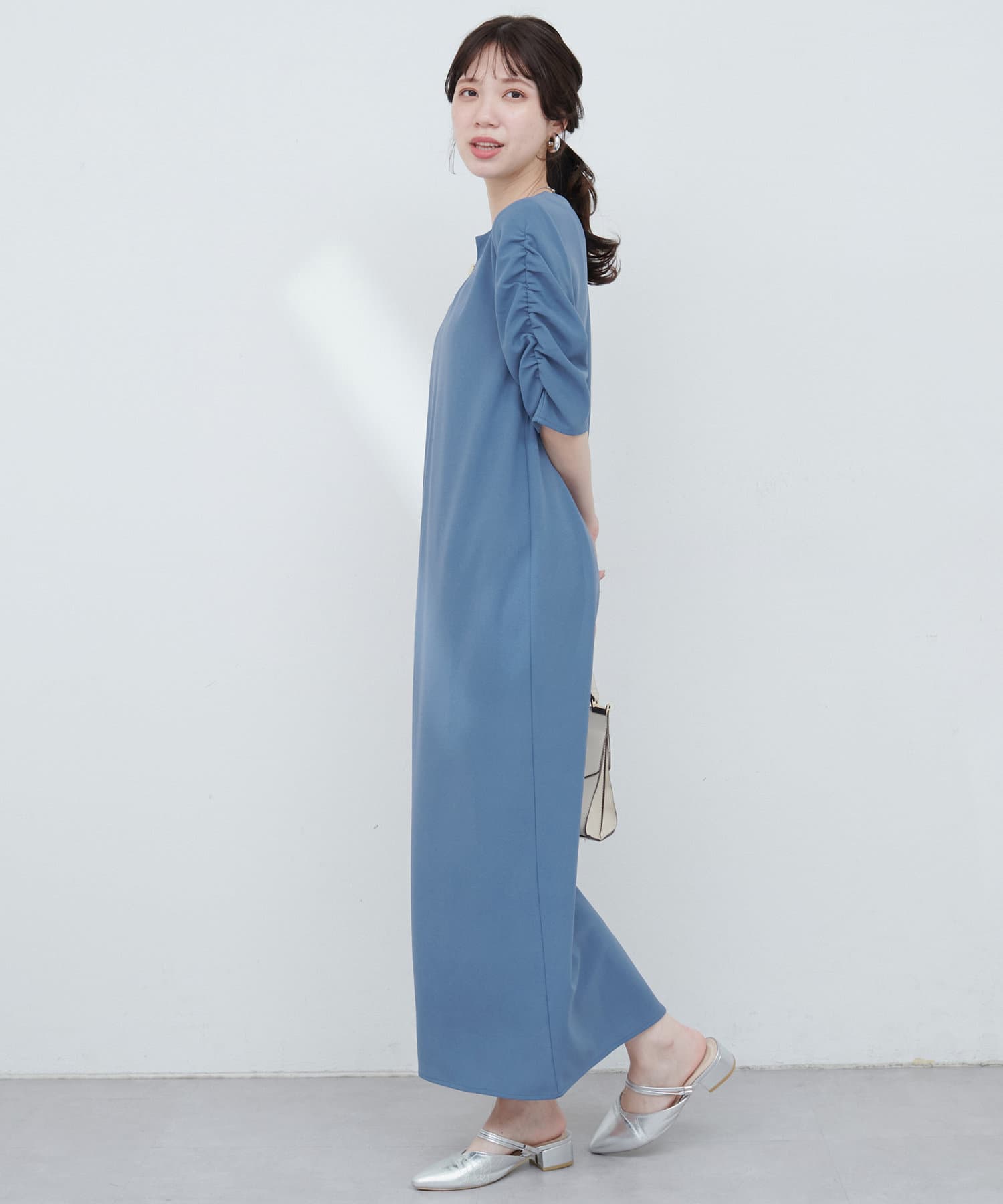 フロントのボタンでさりげない上品さをプラスし、落ち感のある生地が、体のラインをすっきりと見せてくれるのも嬉しいポイントです。