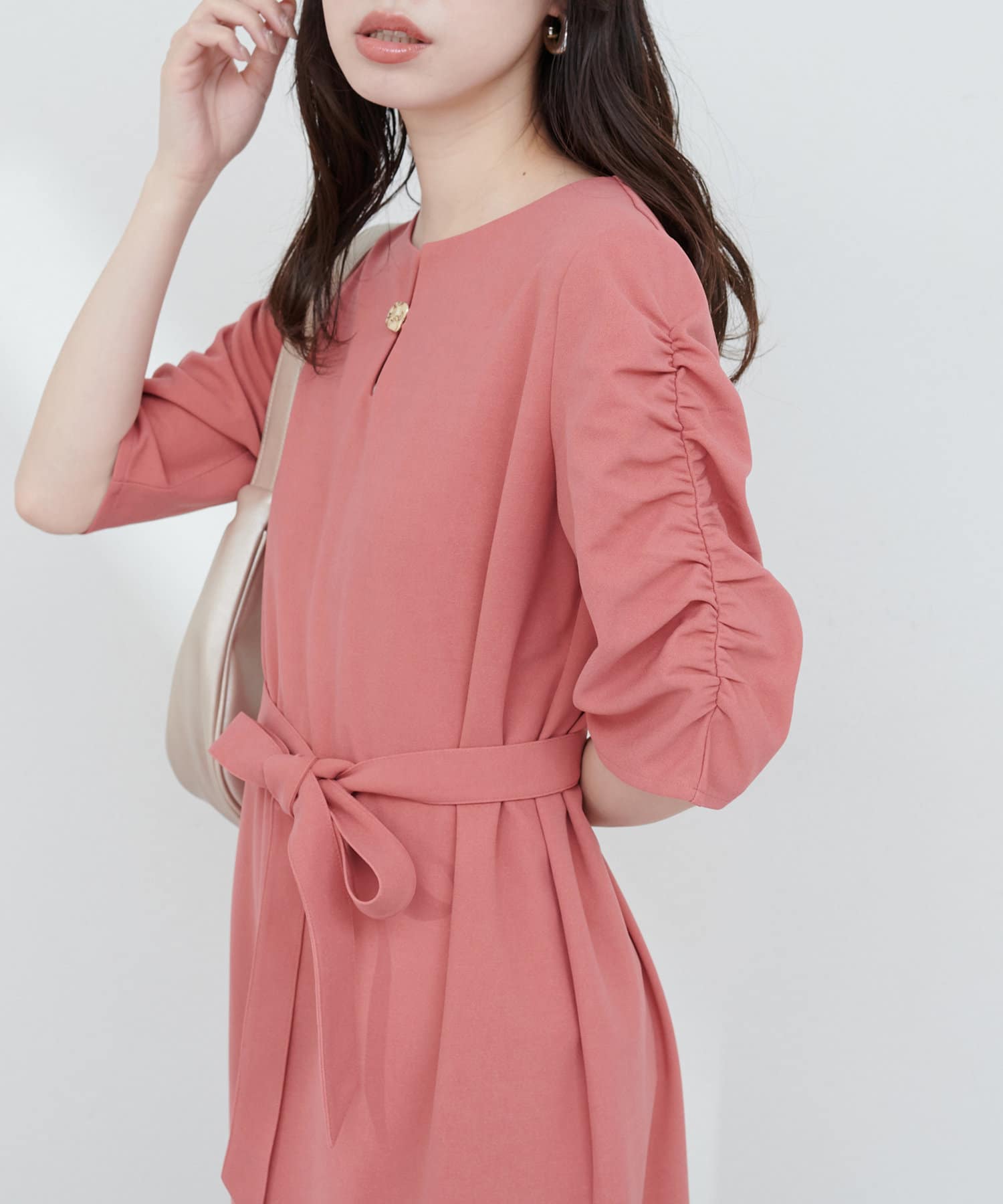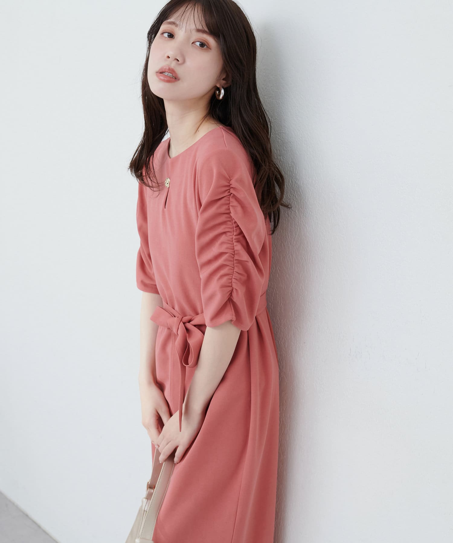 付属のベルトでウエストマークするとスタイルアップ効果も期待できます。