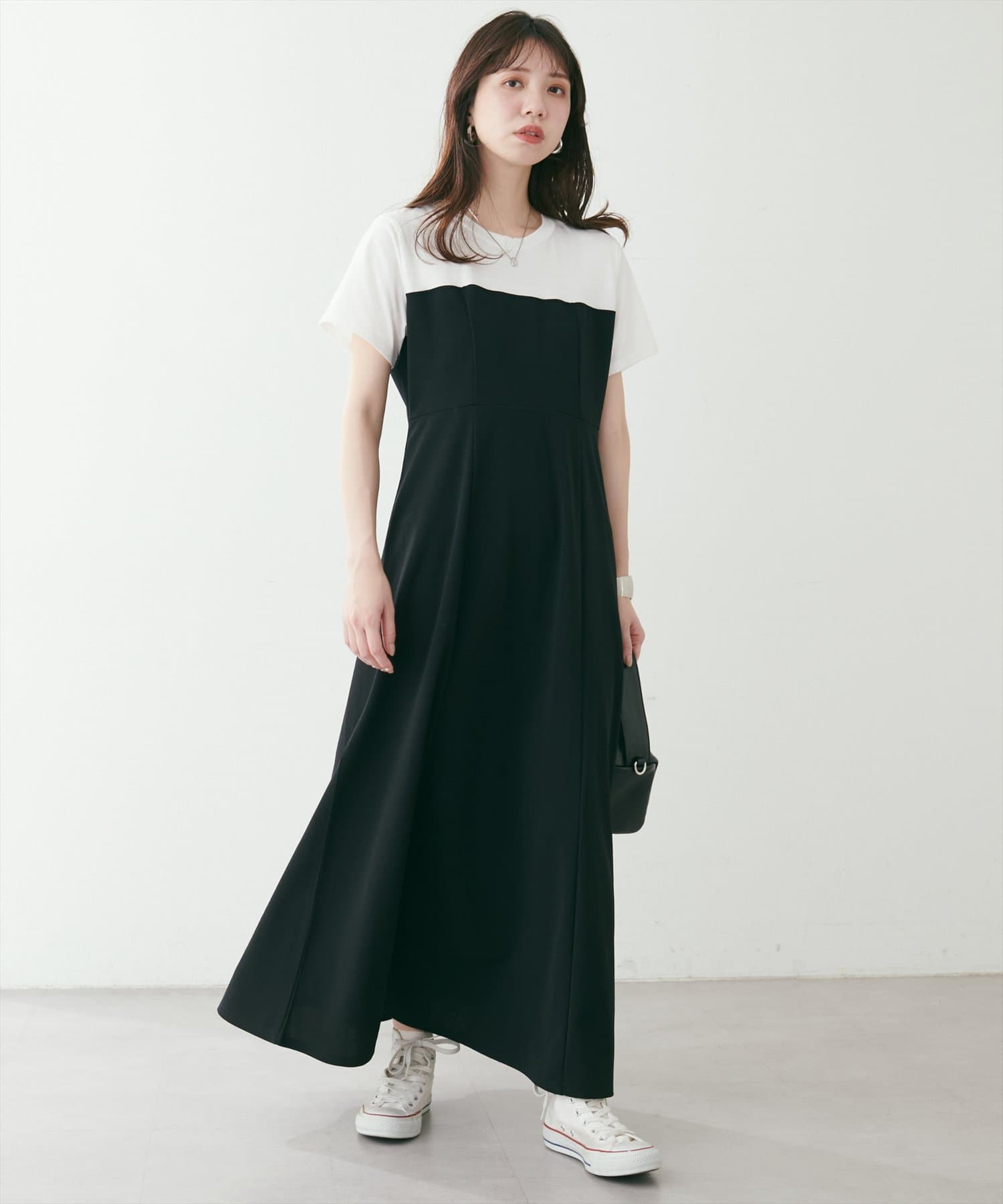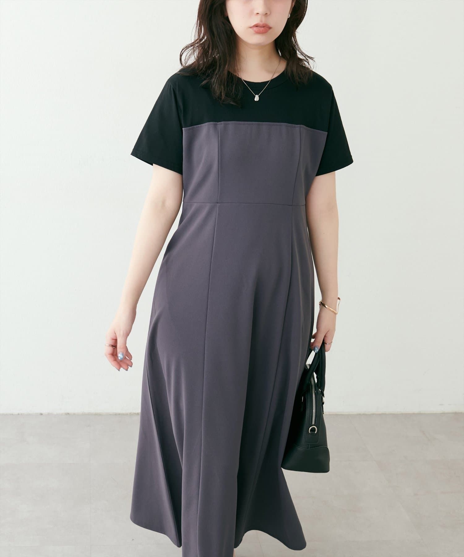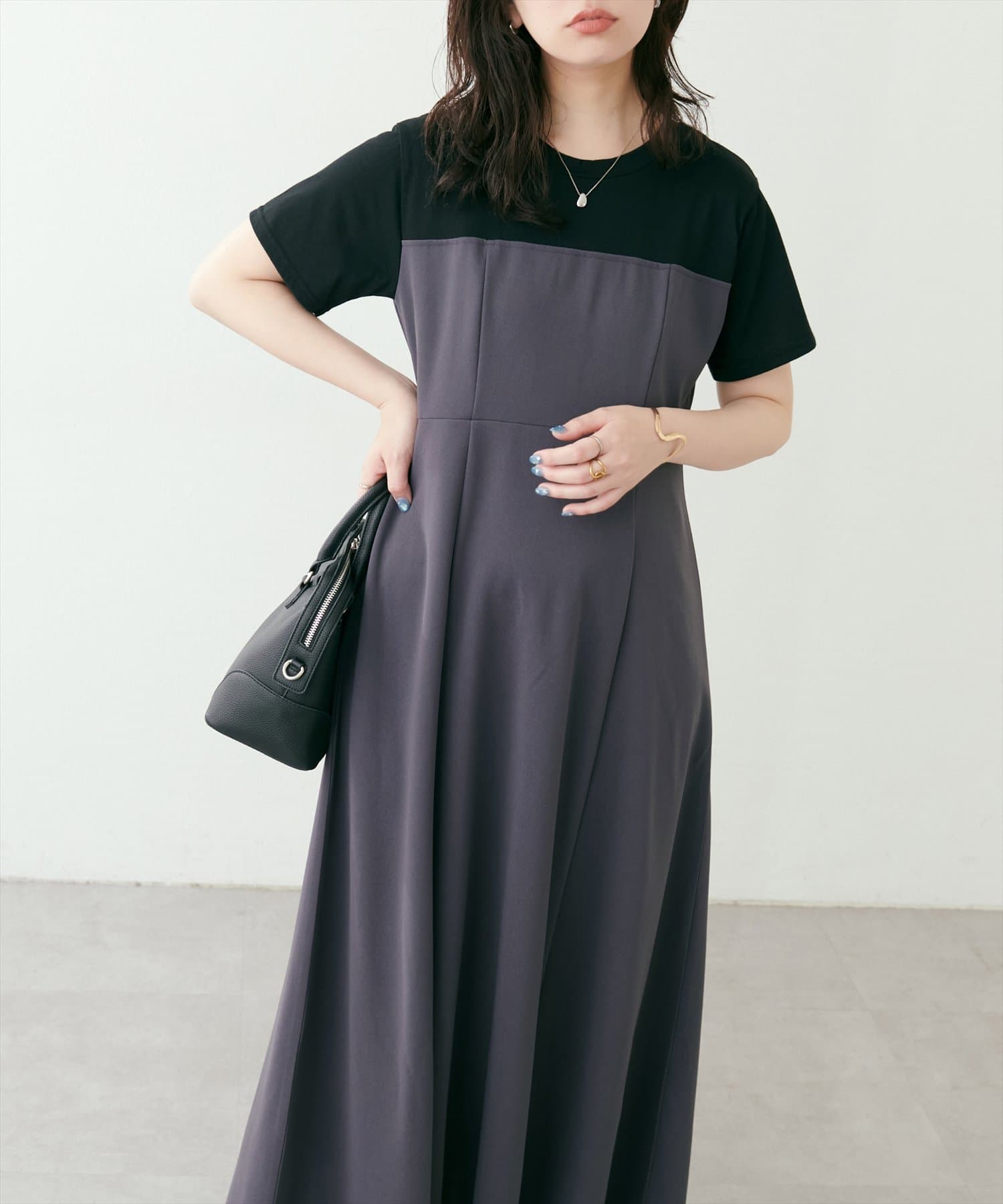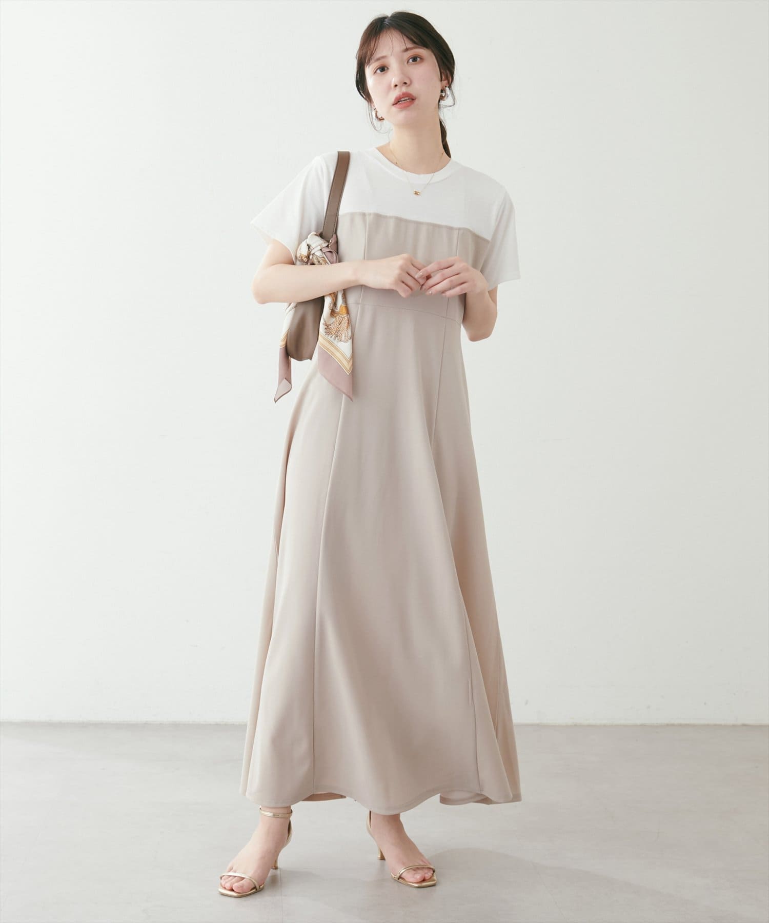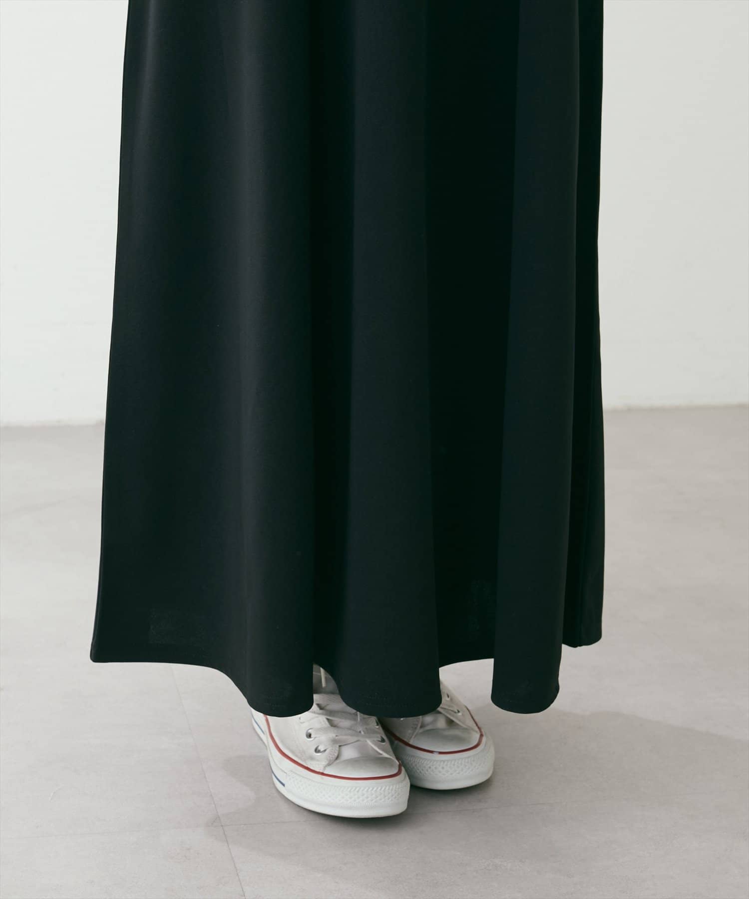 裾にかけてのゆるやかなフレアシルエットが女性らしさを演出し、身体のラインをすっきり見せてくれる大人レディな一着。