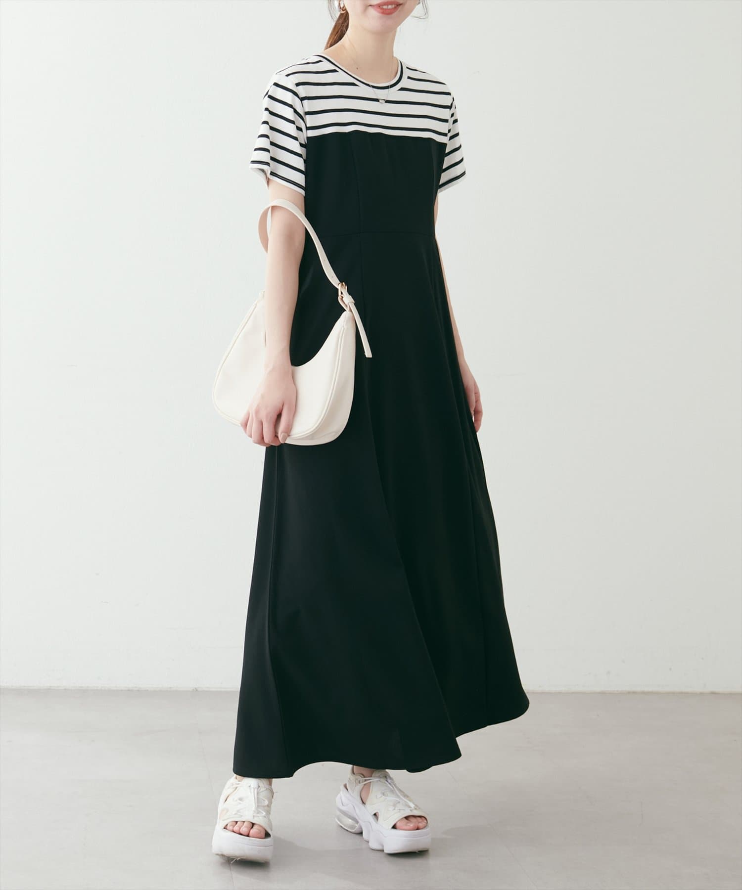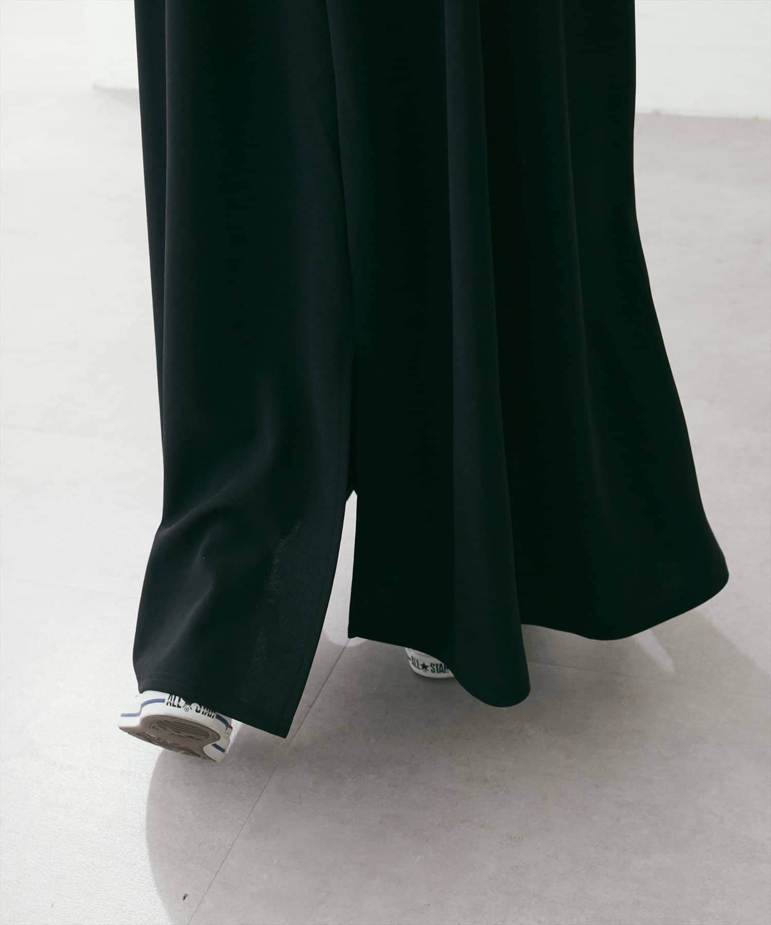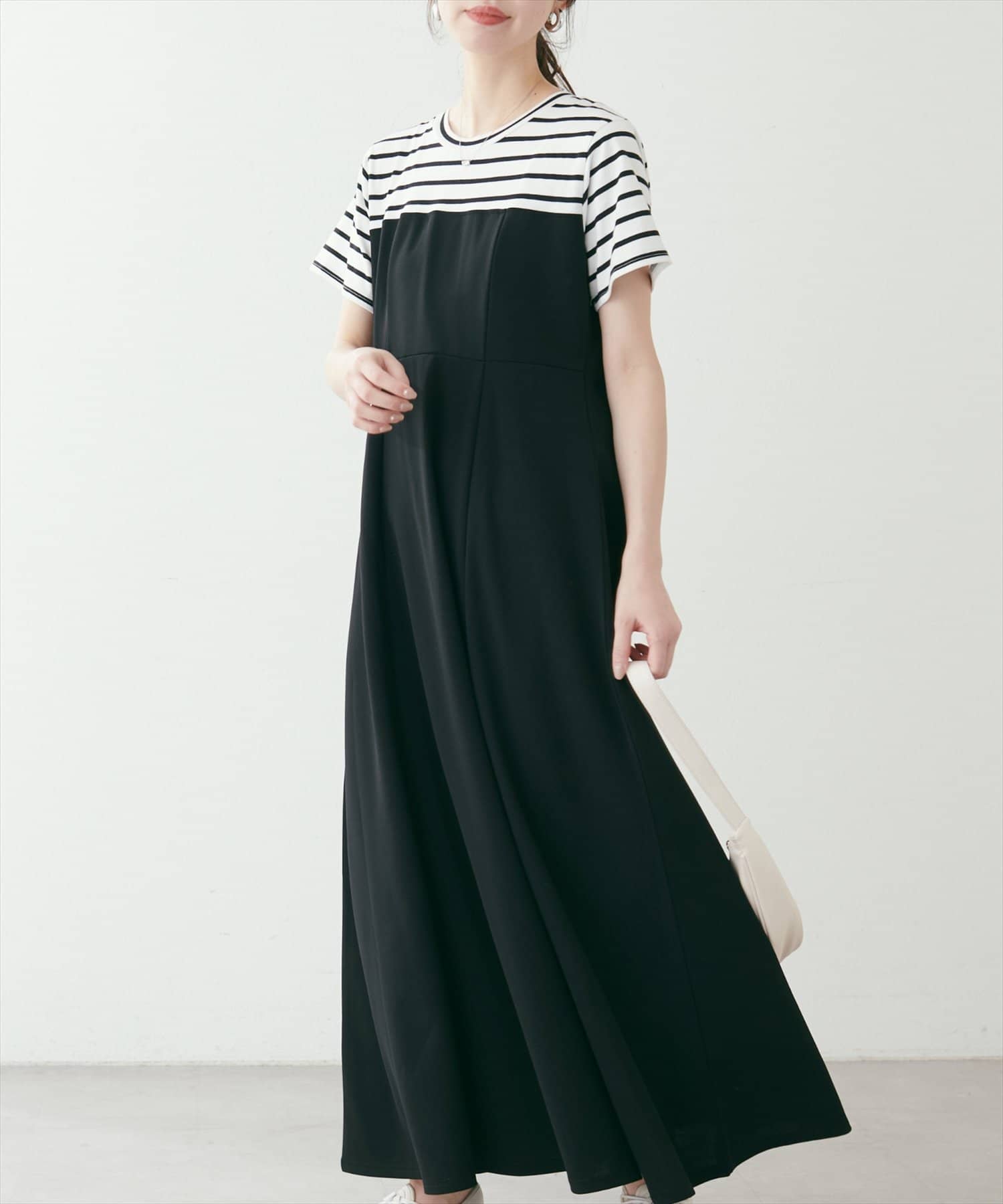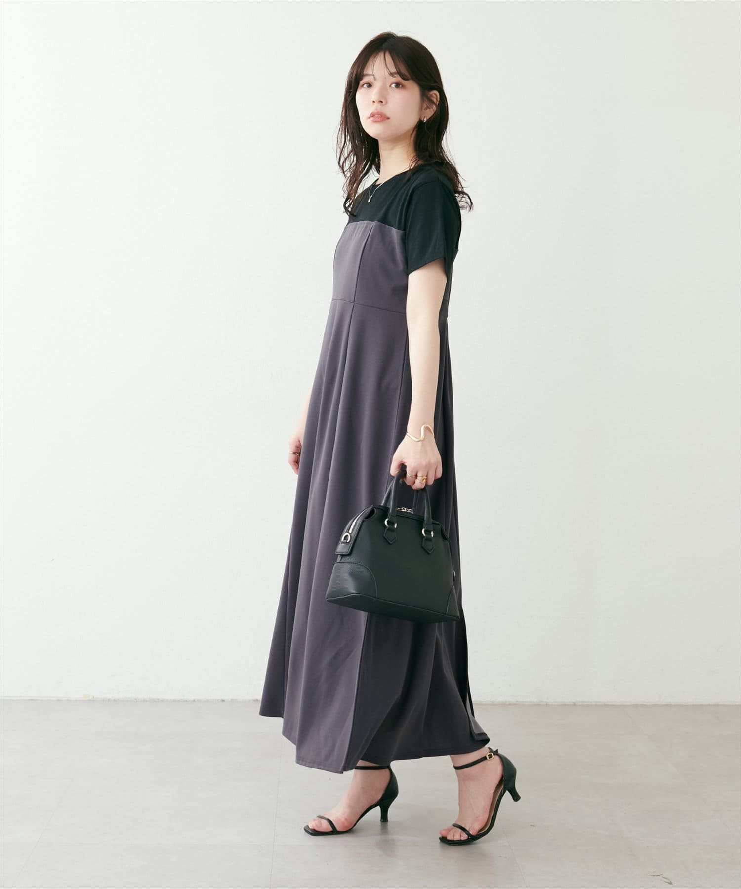 裾にかけてのゆるやかなフレアシルエットが女性らしさを演出し、身体のラインをすっきり見せてくれる大人レディな一着。