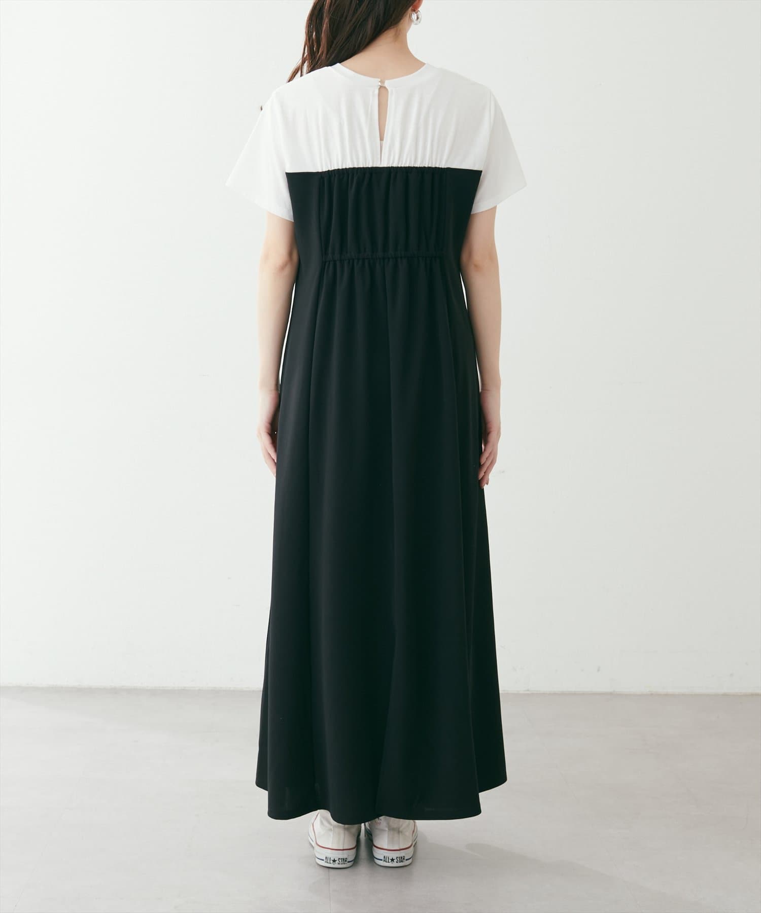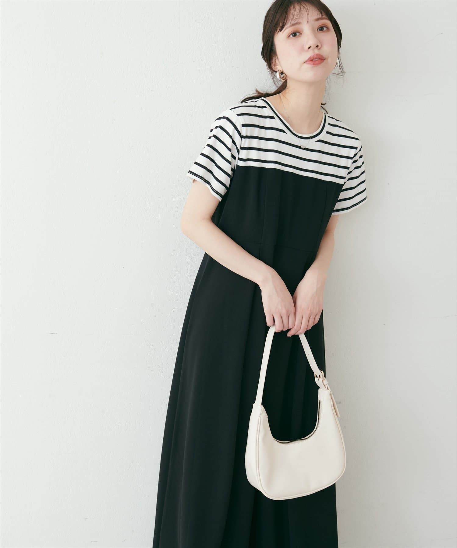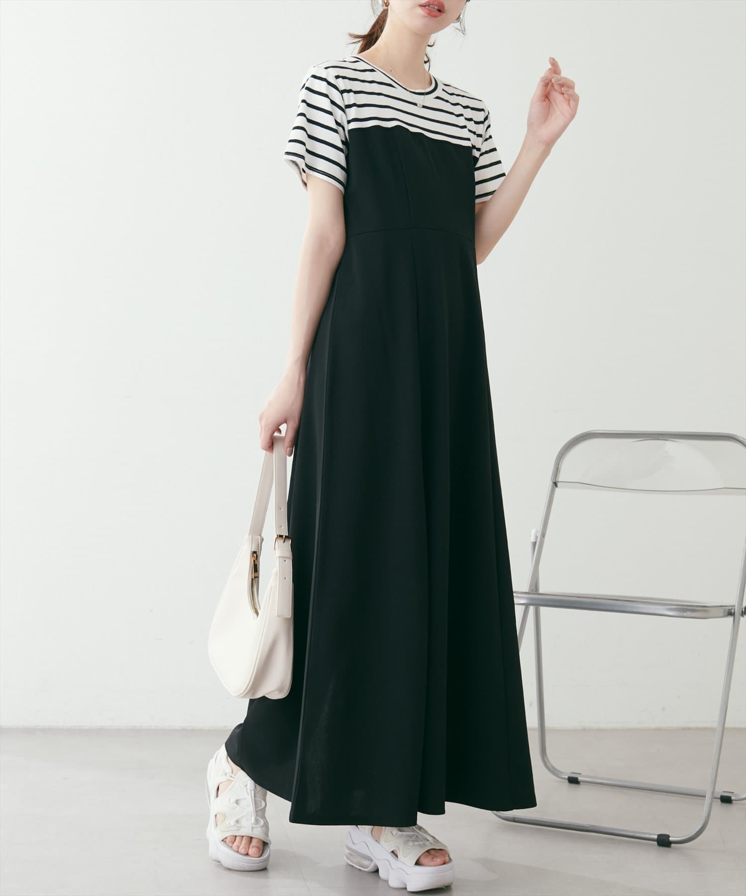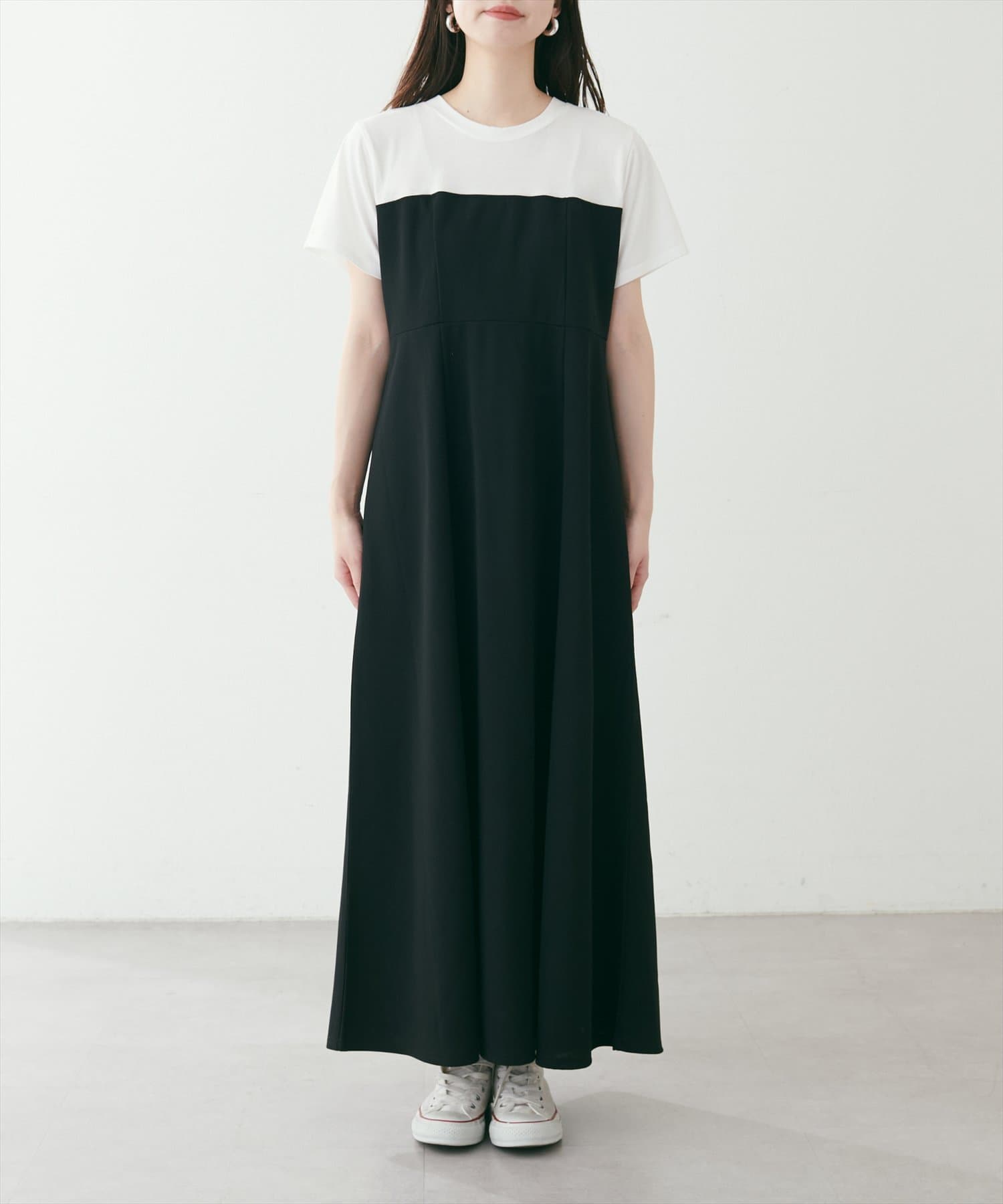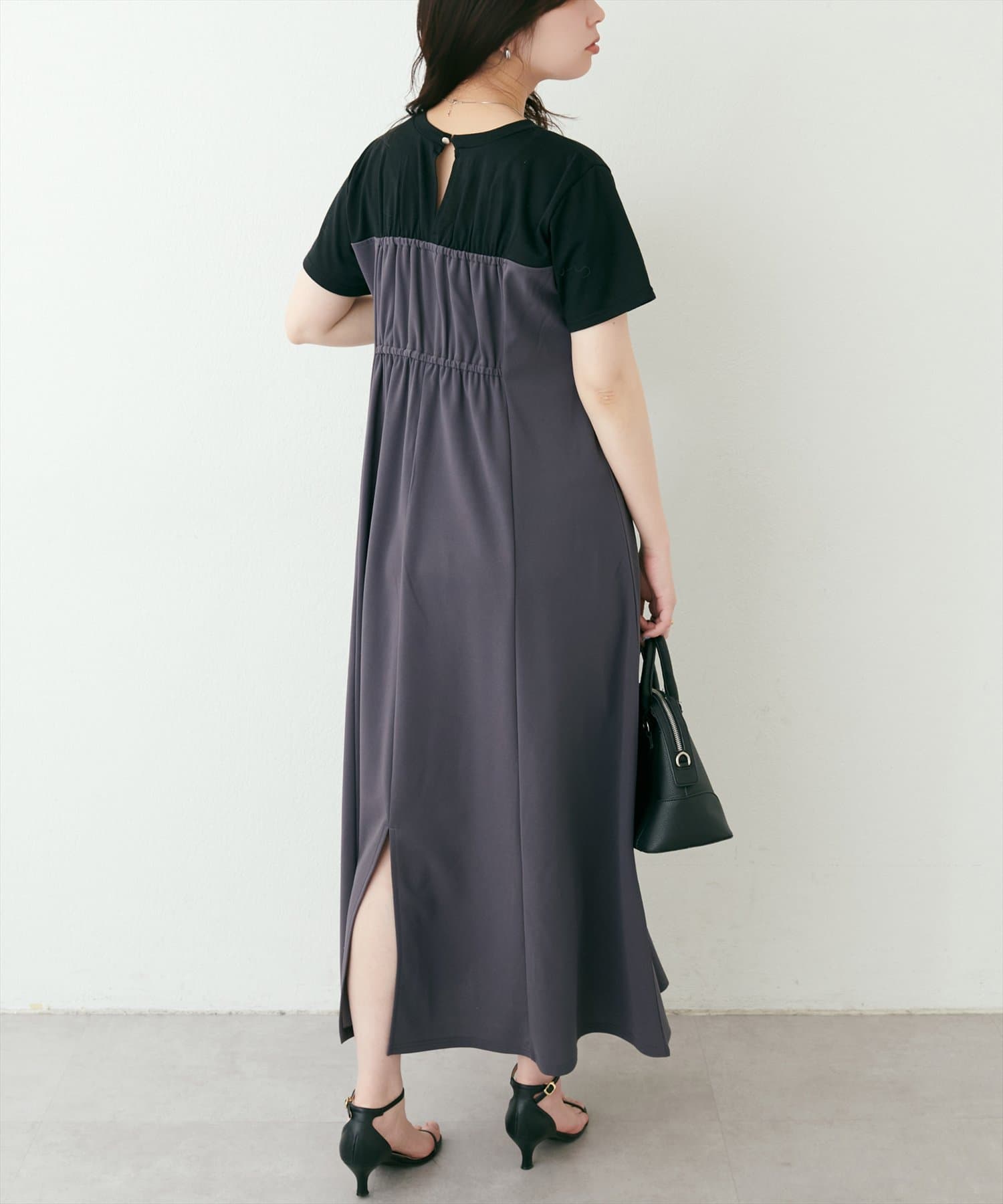 裾にかけてのゆるやかなフレアシルエットが女性らしさを演出し、身体のラインをすっきり見せてくれる大人レディな一着。