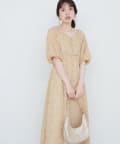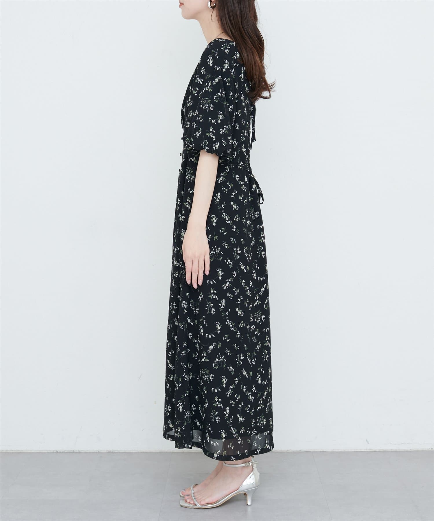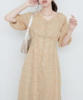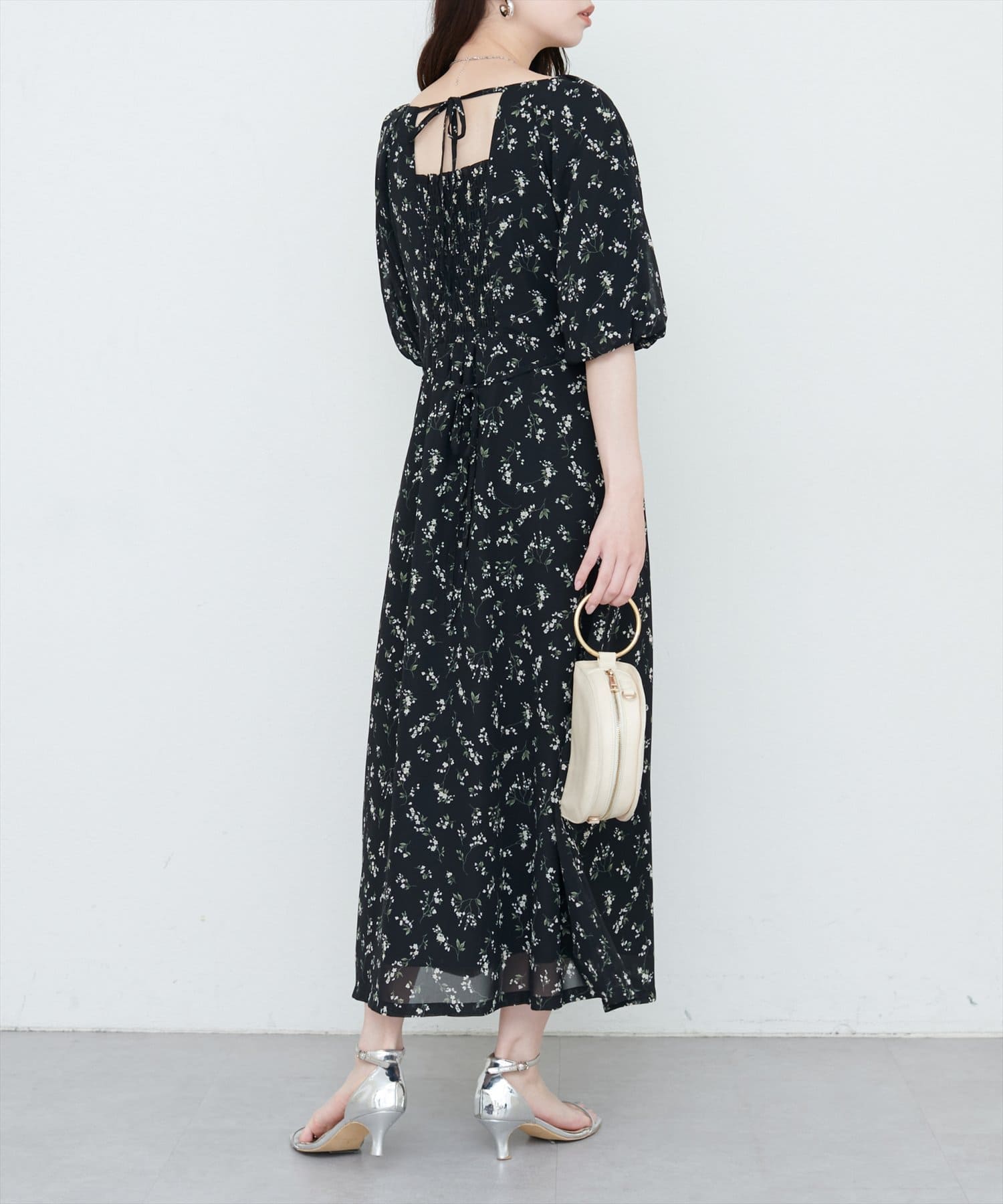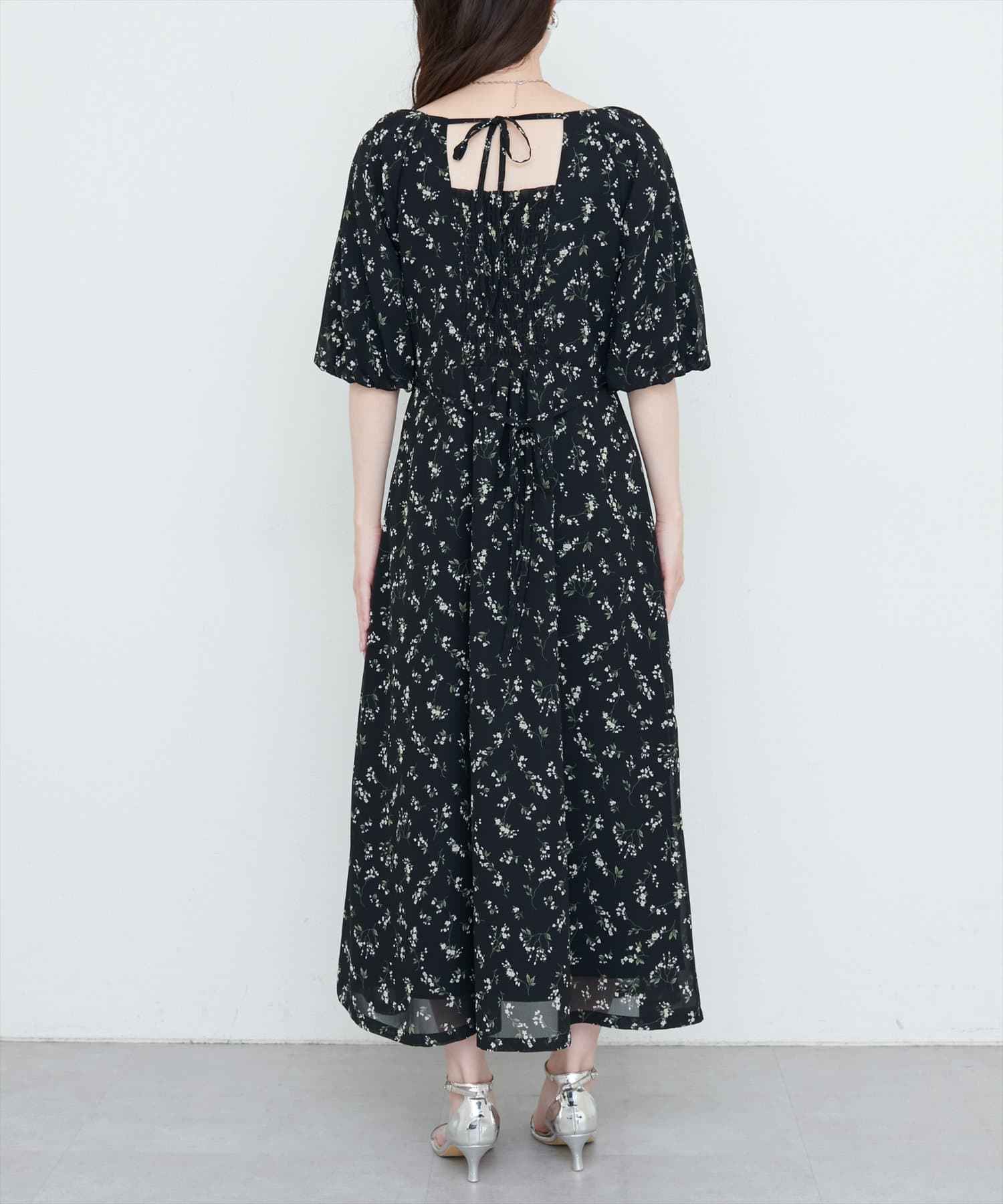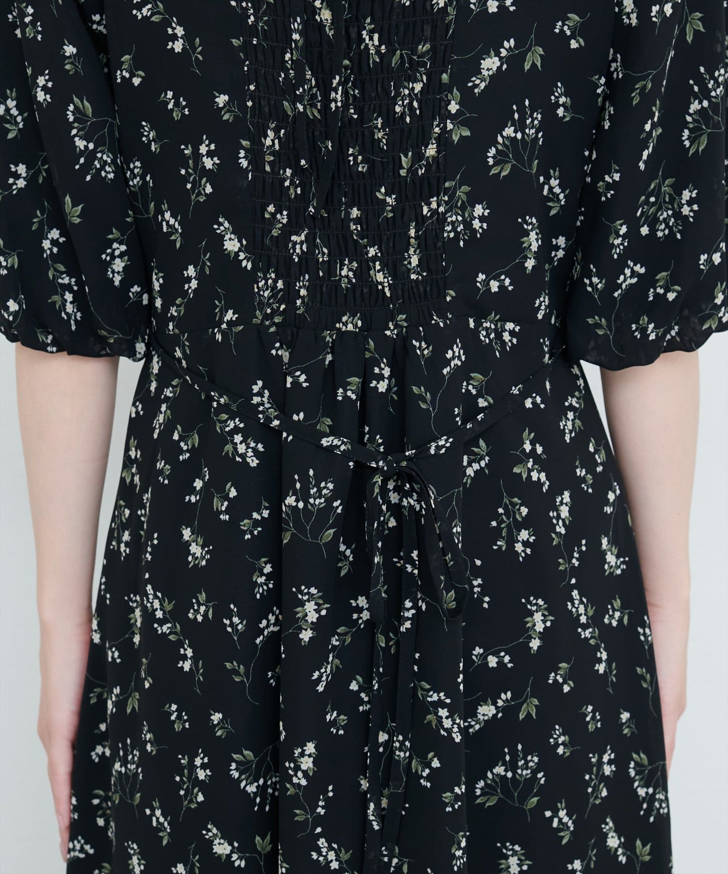 後ろにシャーリングゴムが入っているので着心地◎首元、ウエストリボンでバックスタイルも手を抜かない一枚です。