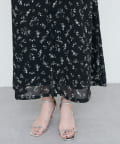 膝下丈のフレアスカートは、動くたびに優雅なシルエットを描き出し、エレガントな雰囲気に。