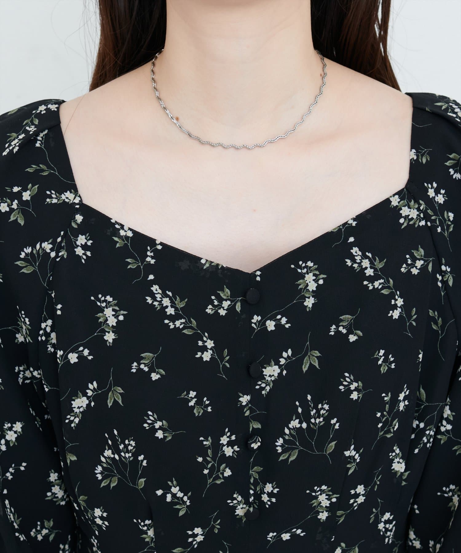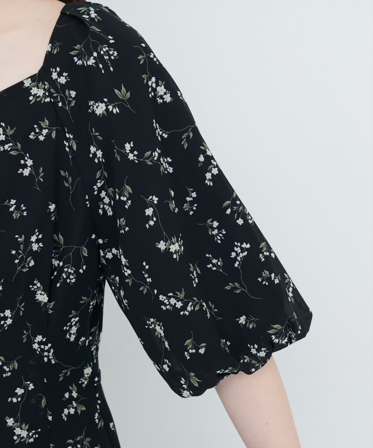 デコルテを美しく見せるネックラインと、ふんわりとしたバルーン袖が、フェミニンな印象をプラス。