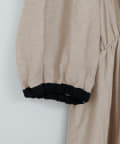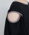 ネックライン、肩、袖口にあしらわれた配色パイピングが、全体を引き締め、さりげない個性をプラスし、
