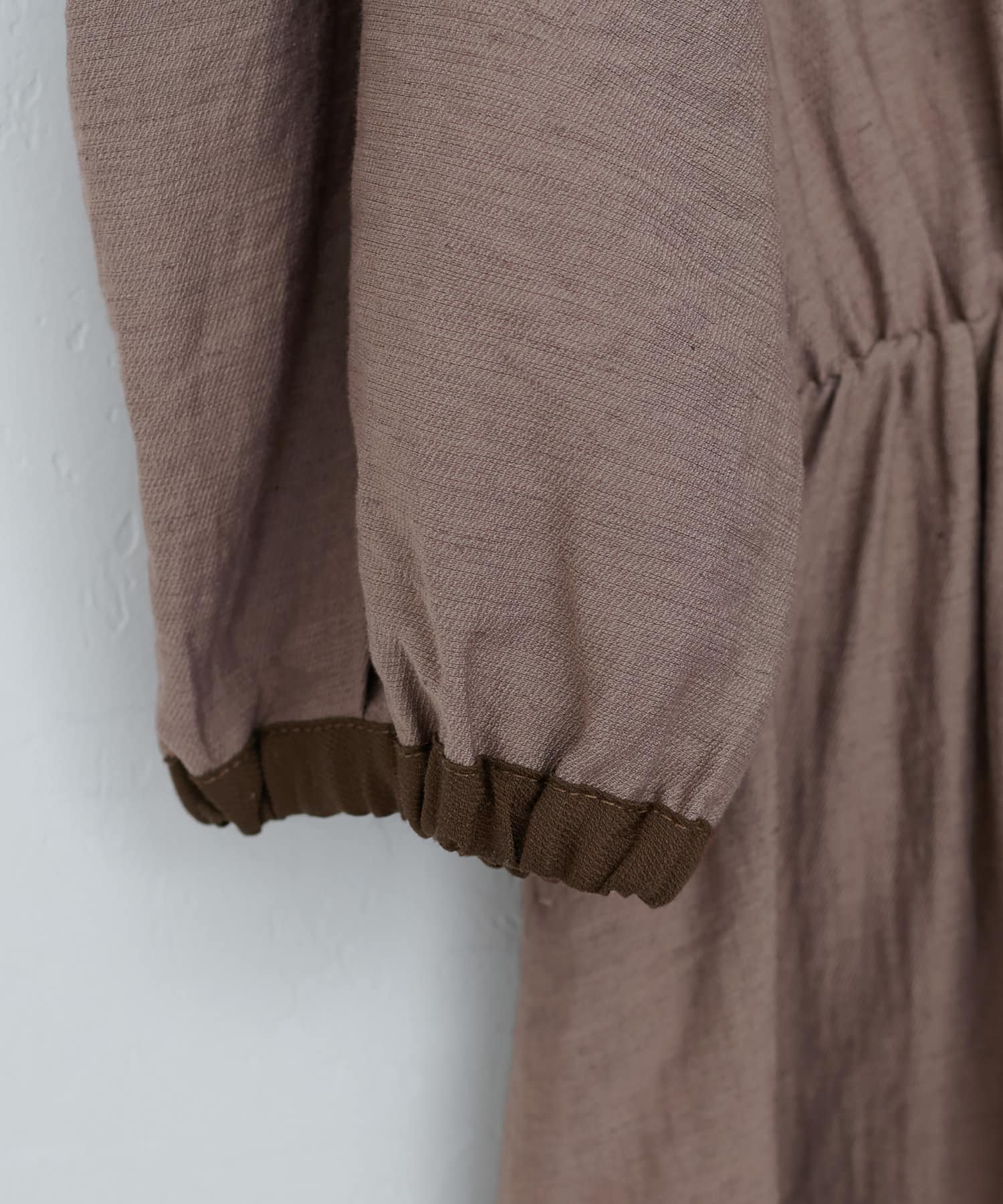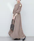 落ち着いたカラーに配色パイピングがアクセントとなり、洗練された印象を与えてくれるワンピースです。