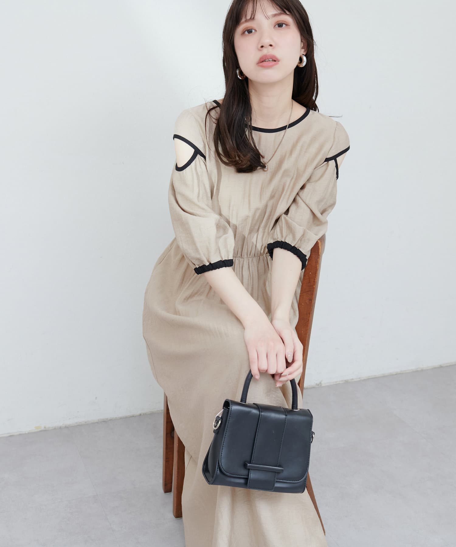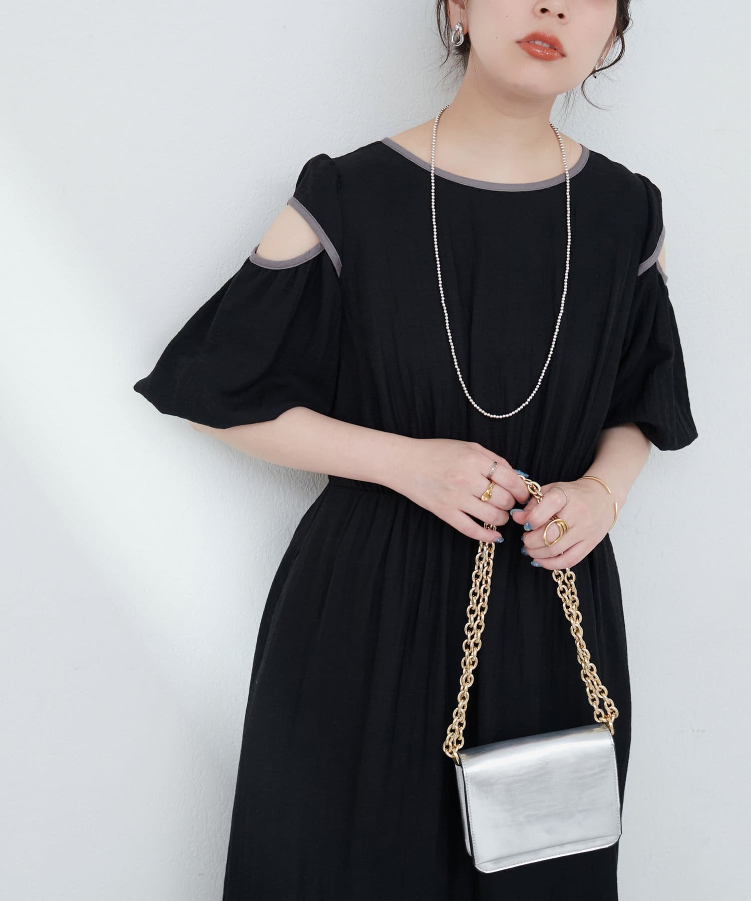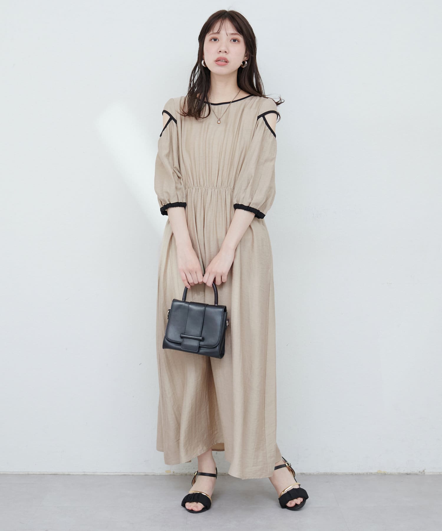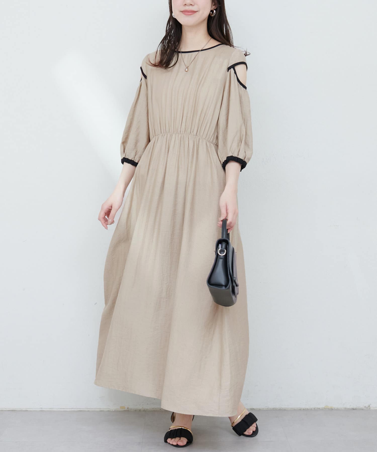 配色パイピングが効いた、大人の抜け感ワンピース。