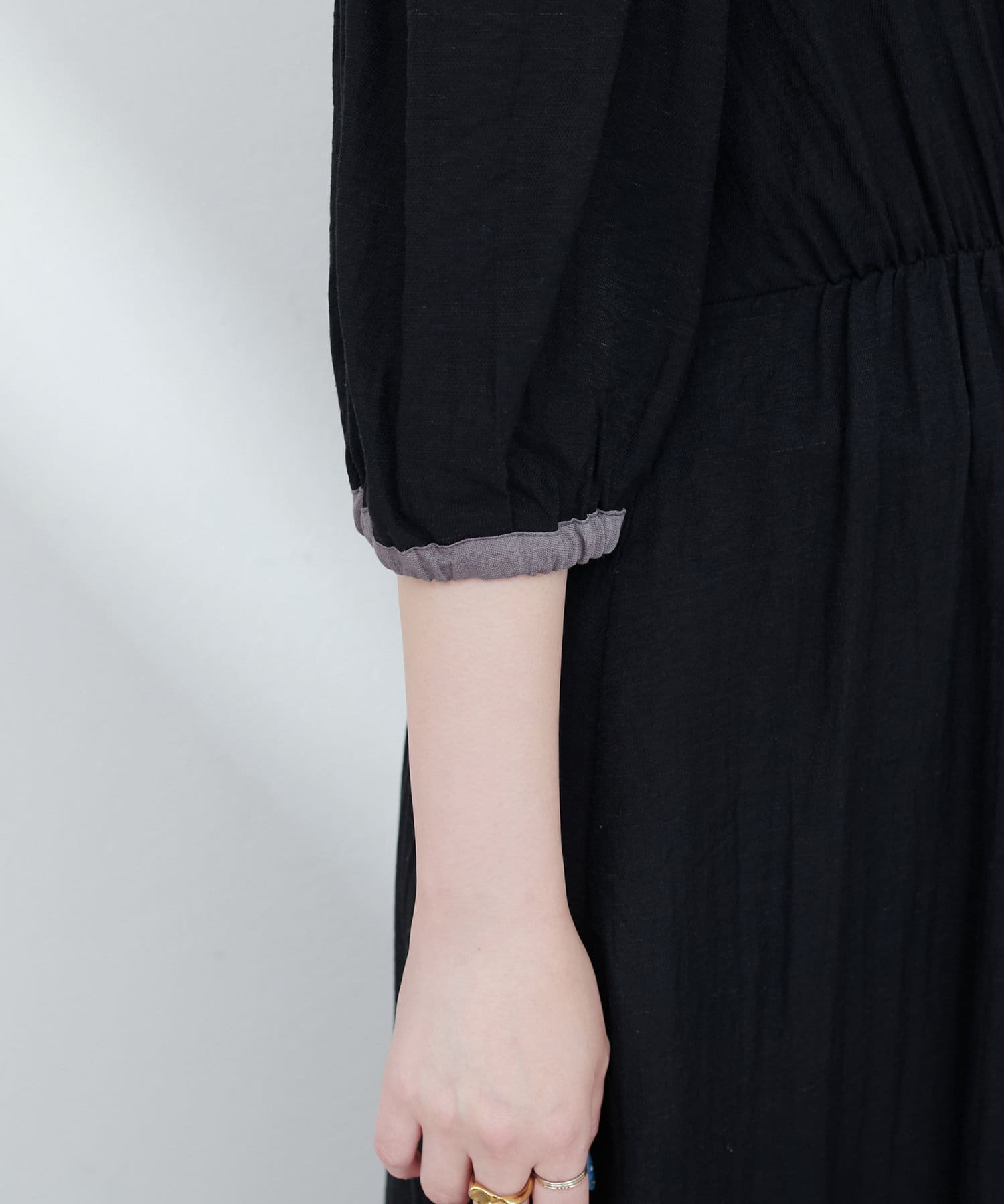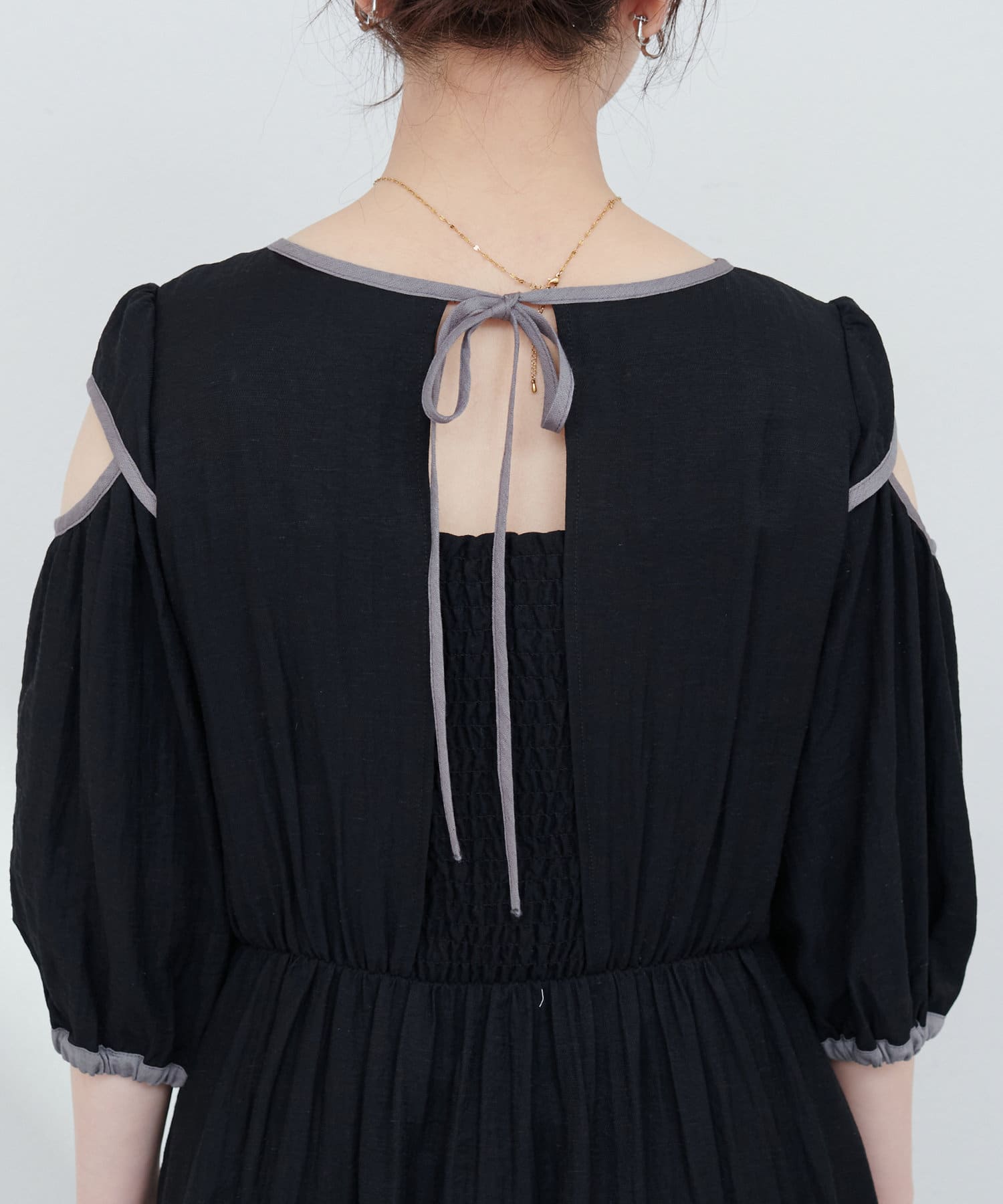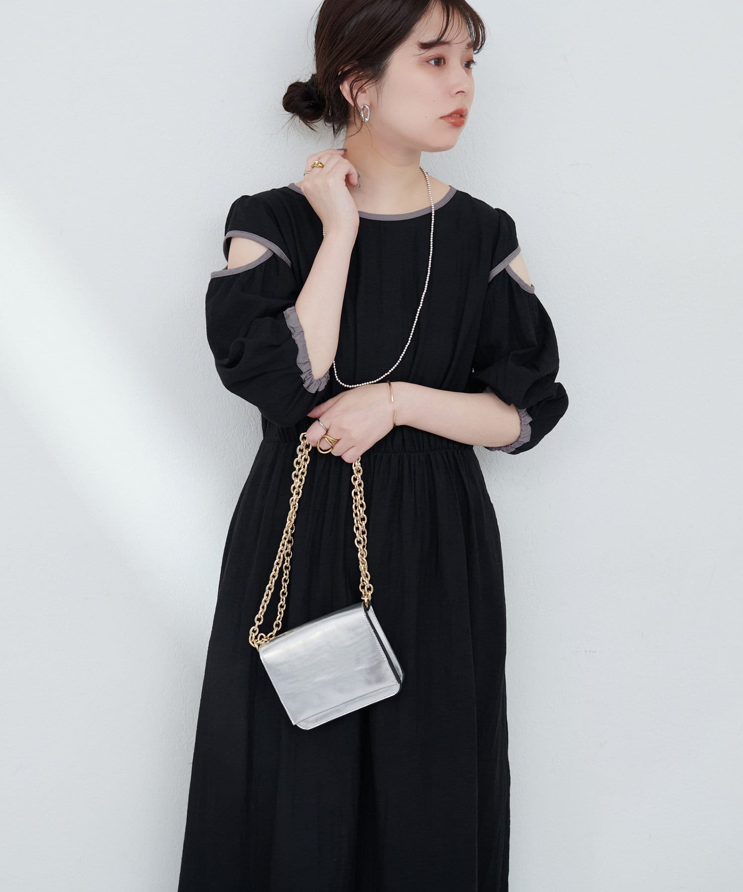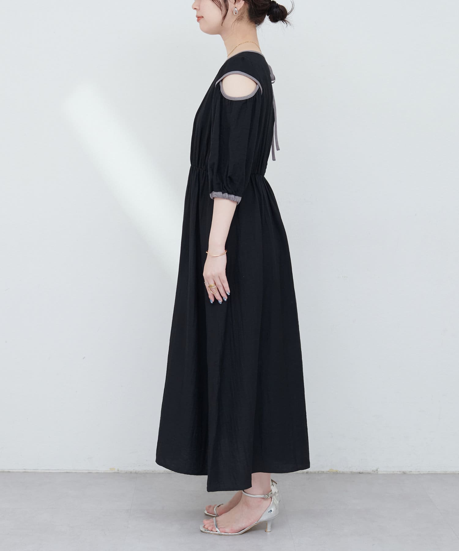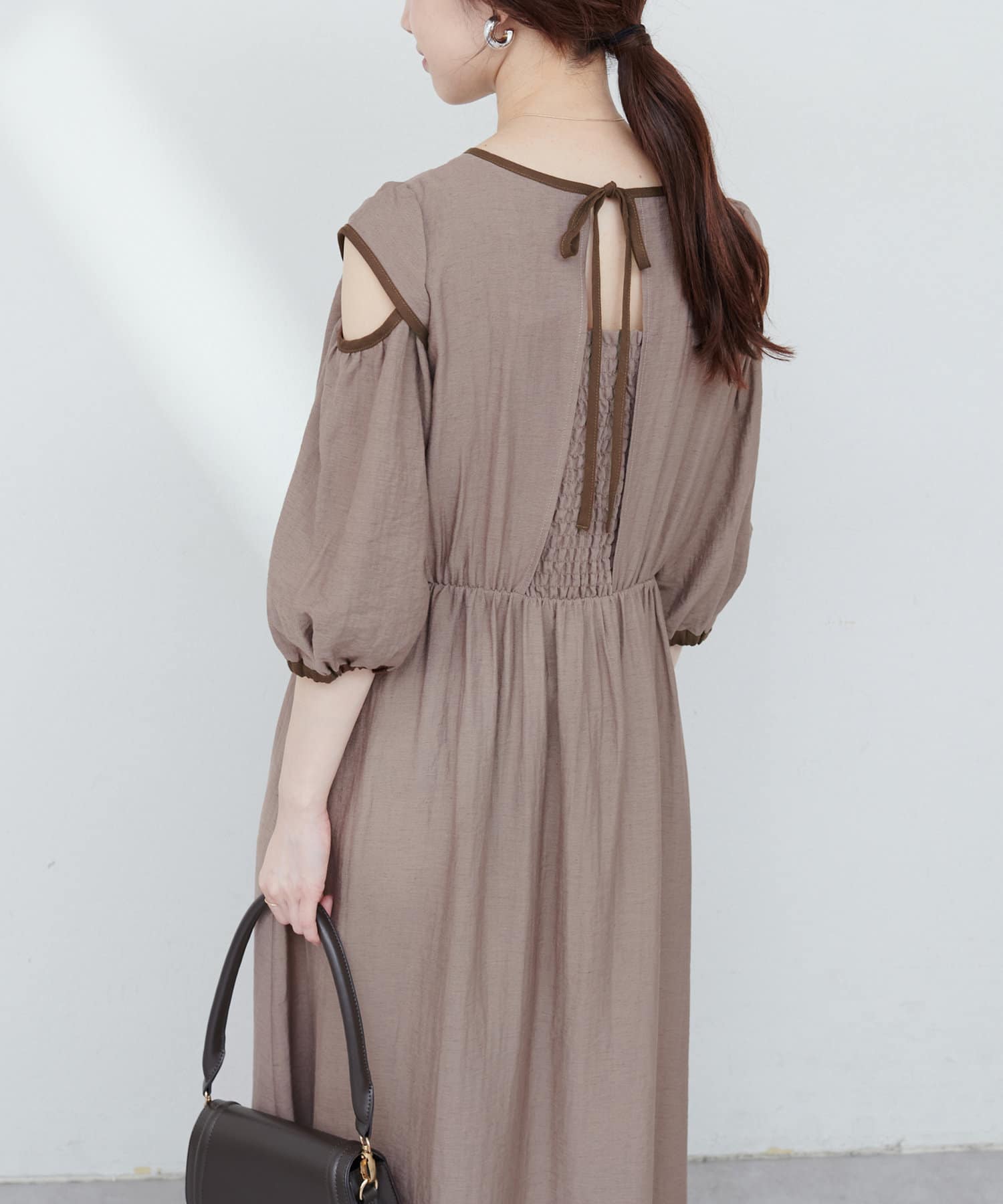 配色パイピングが効いた、大人の抜け感ワンピース。