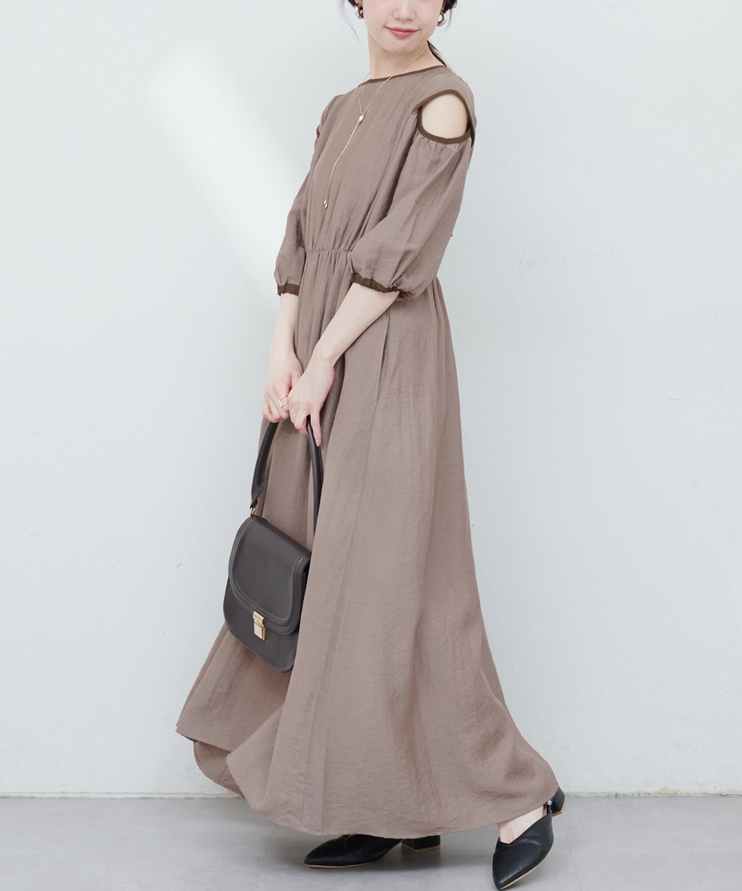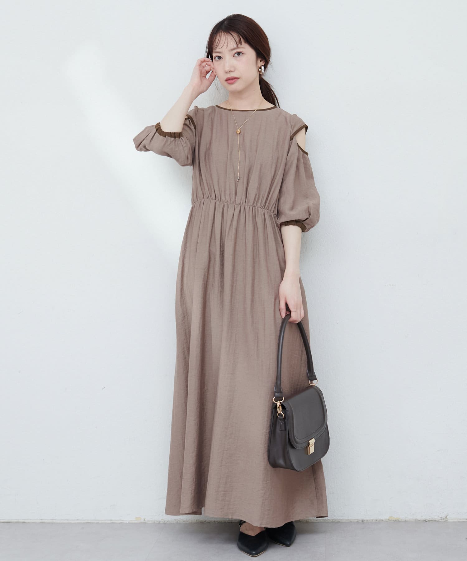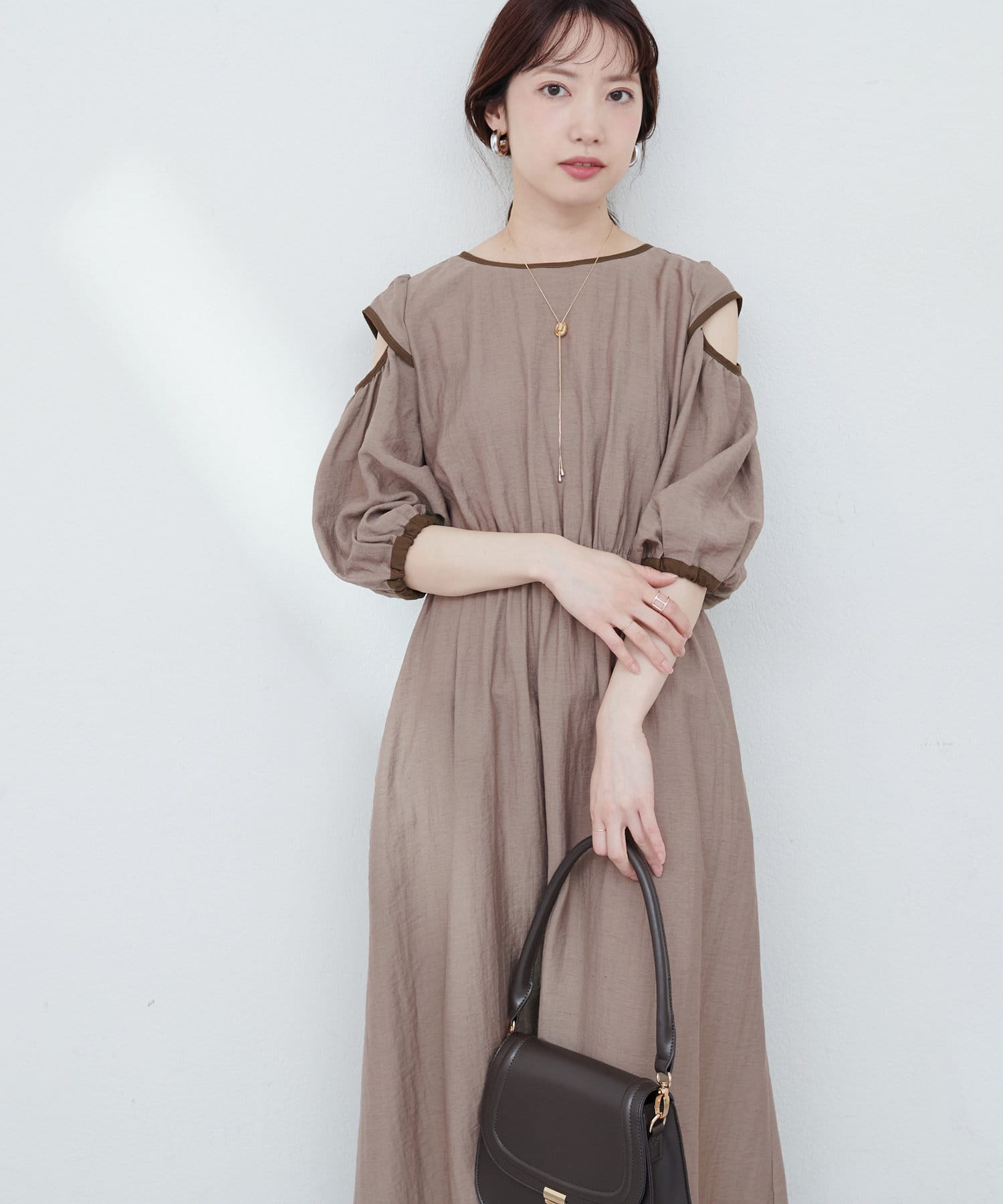 ほんのり肌見せが叶う肩出しデザインで、ヘルシーな抜け感を演出。