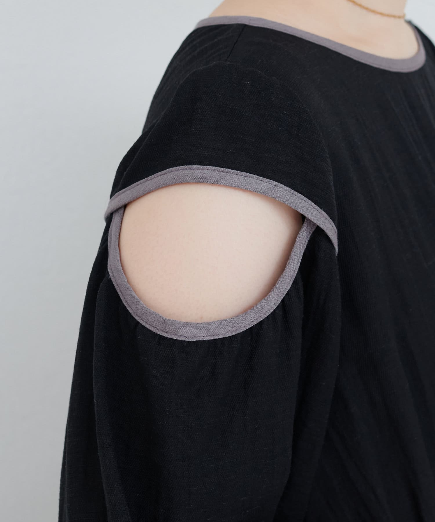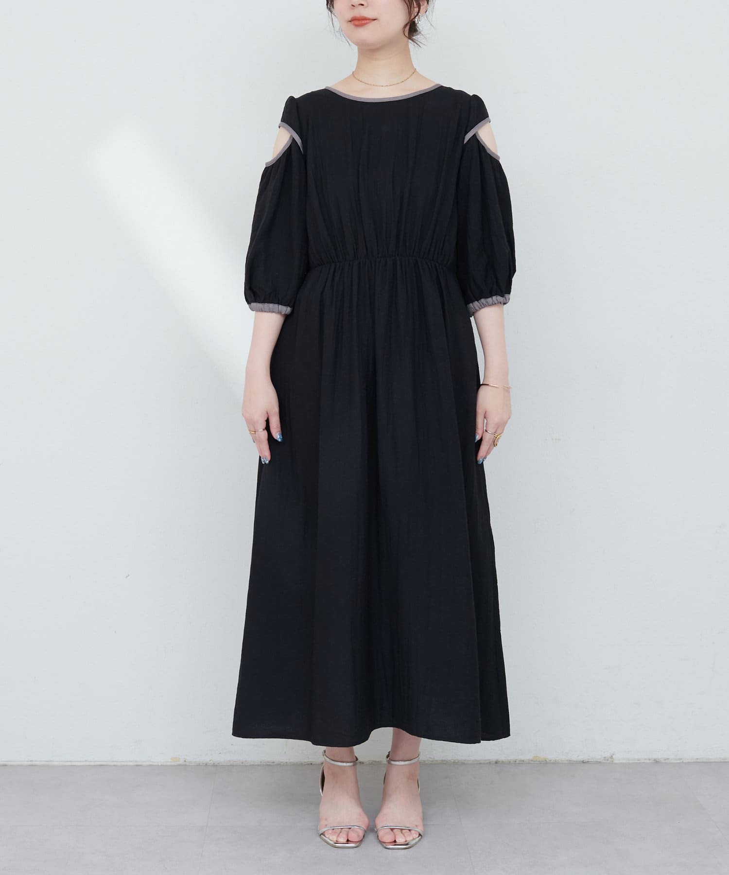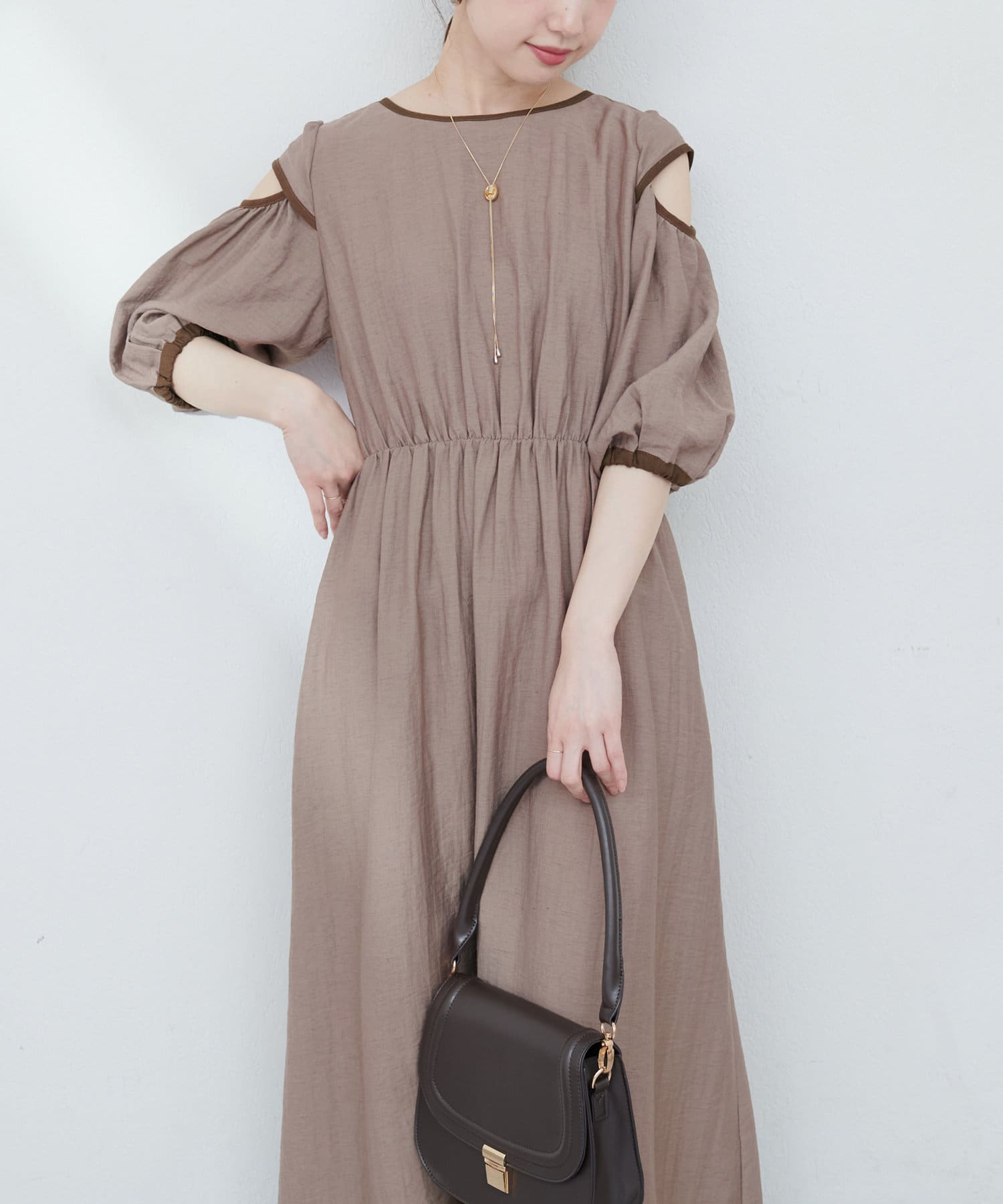 ほんのり肌見せが叶う肩出しデザインで、ヘルシーな抜け感を演出。