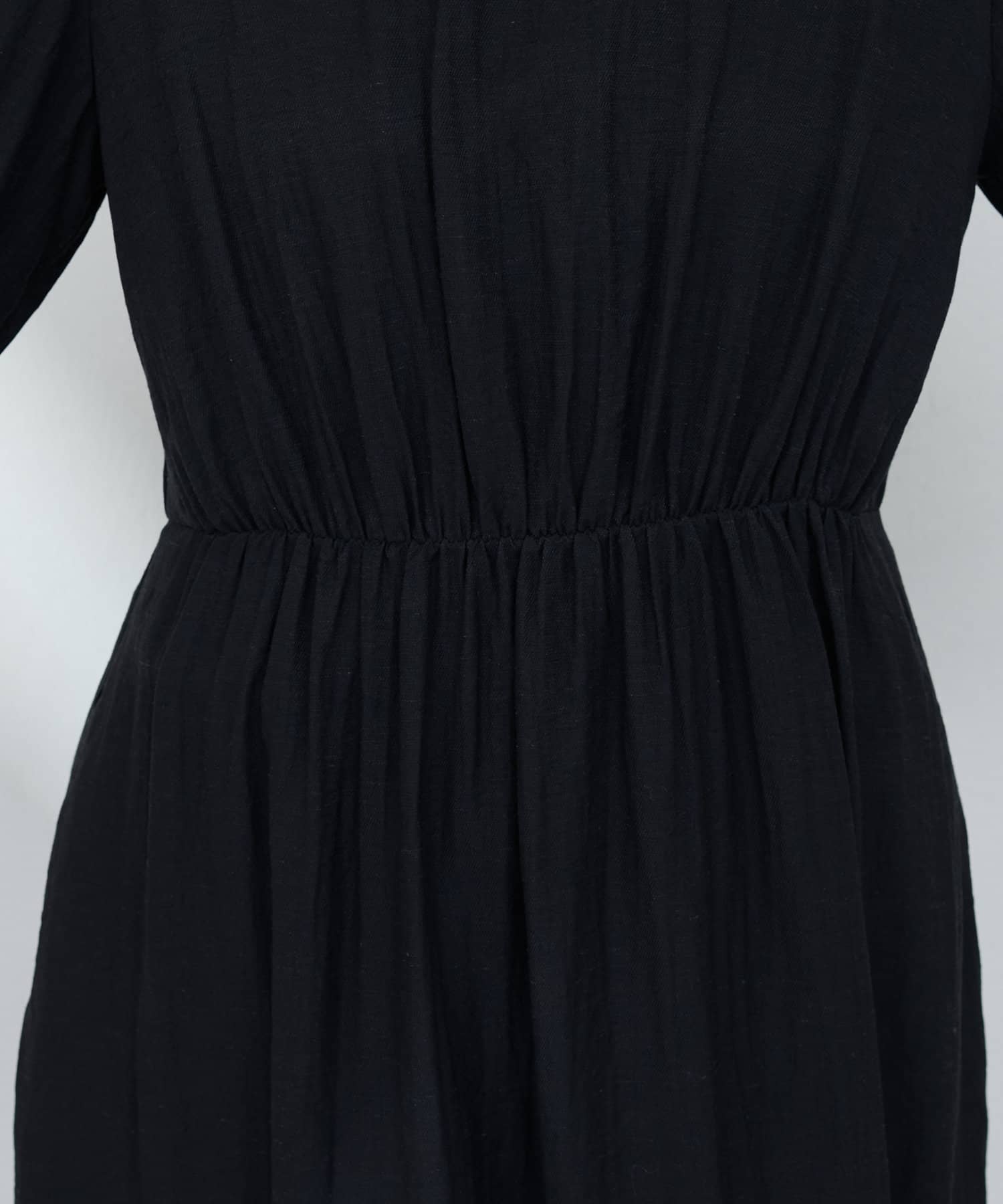 ウエスト部分のシャーリングが、自然なシルエットを作り出し、スタイルアップ効果も期待できます。