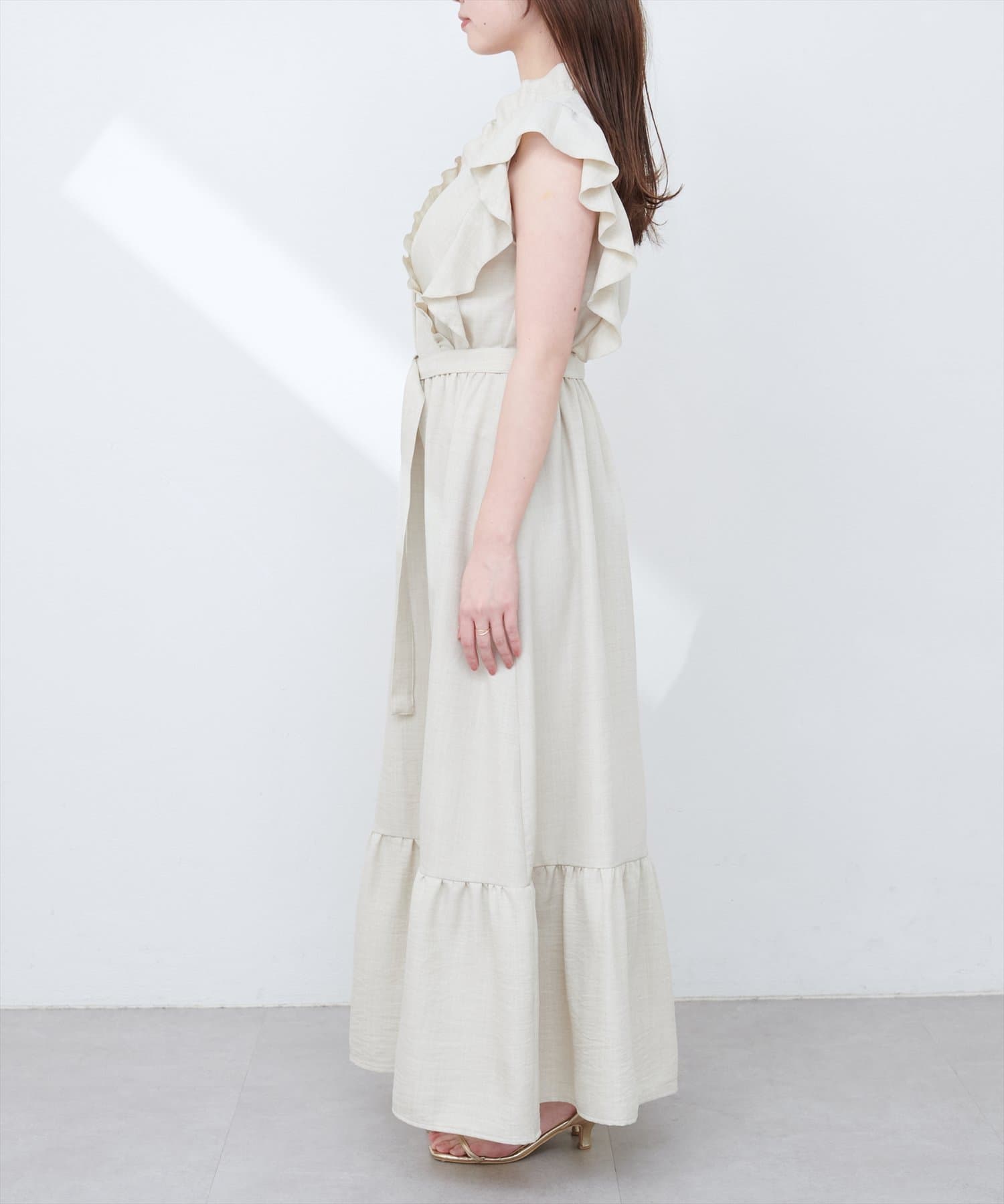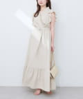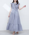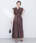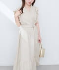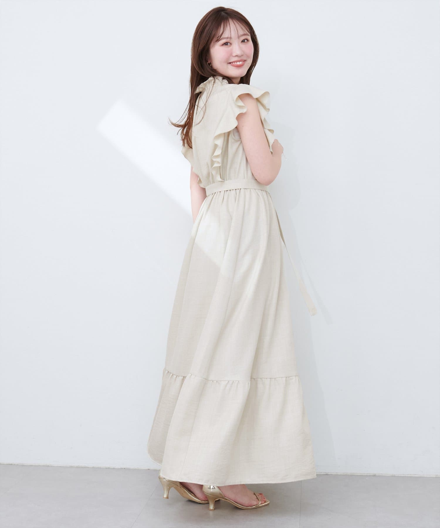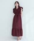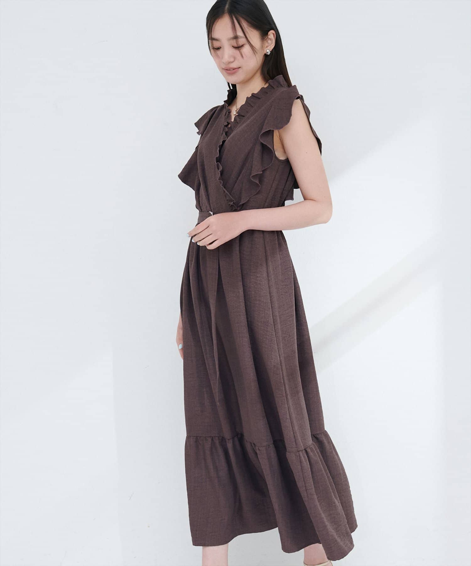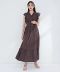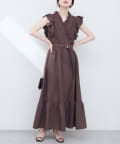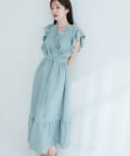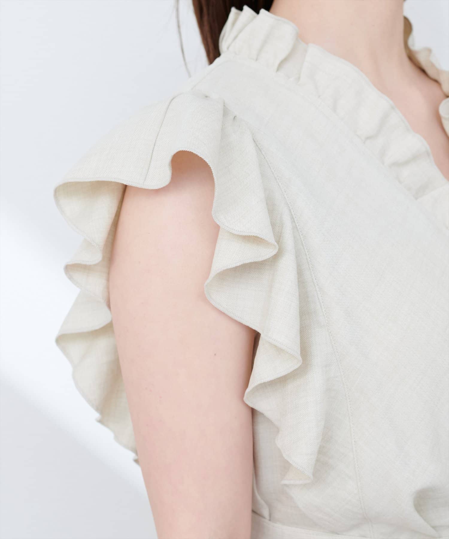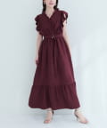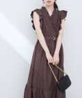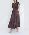 肩のフリルが、上品で華やかな印象を与え、歩くたびに揺れる裾のフリルが、女性らしさを引き立てます。