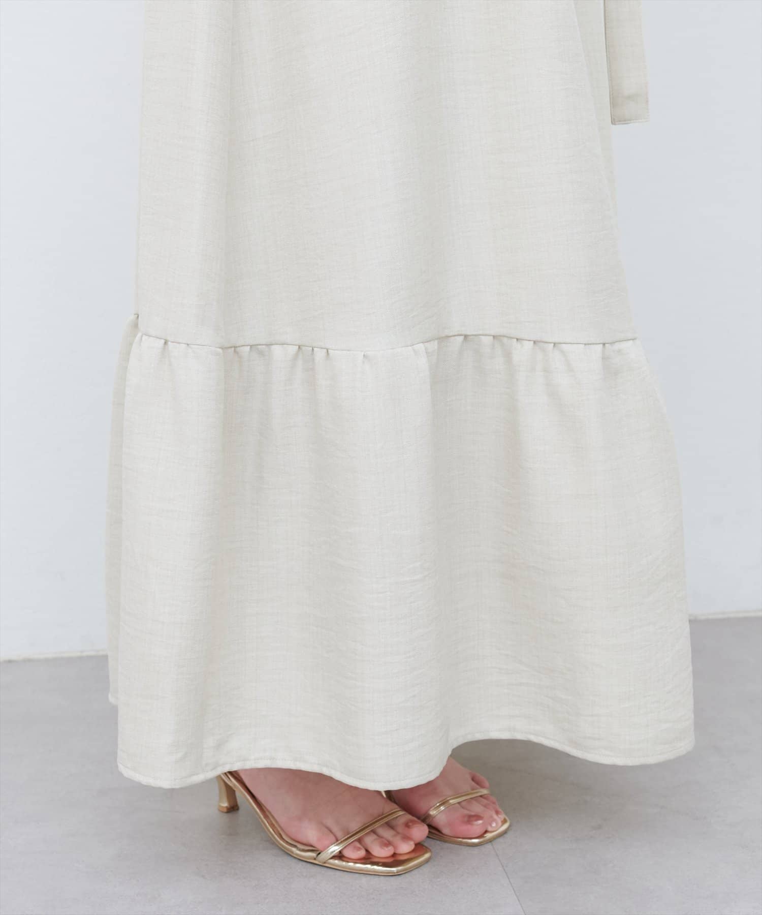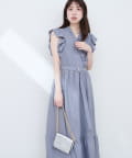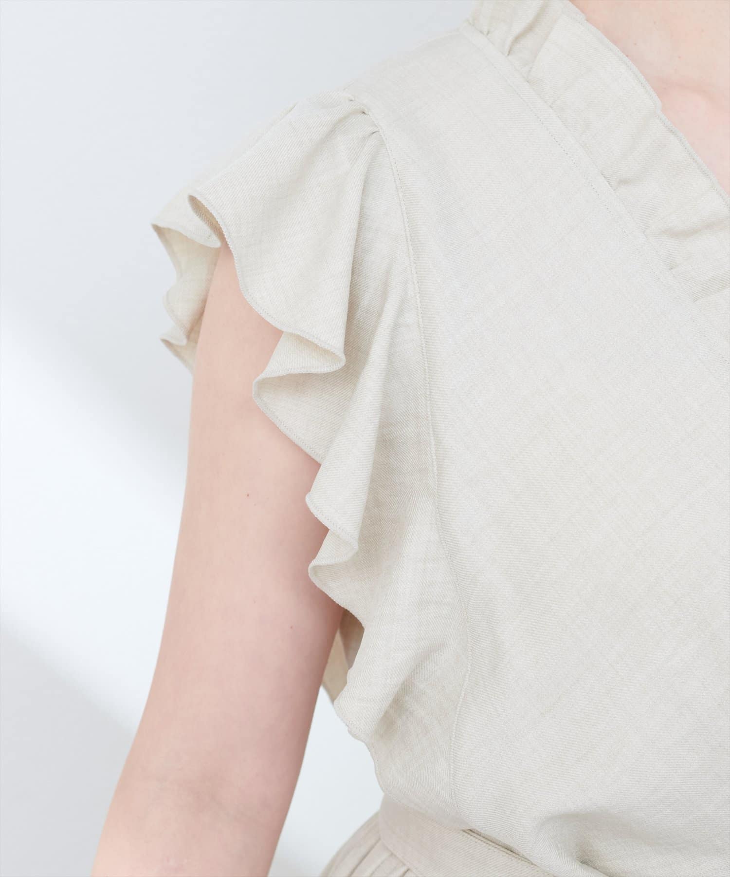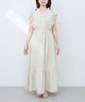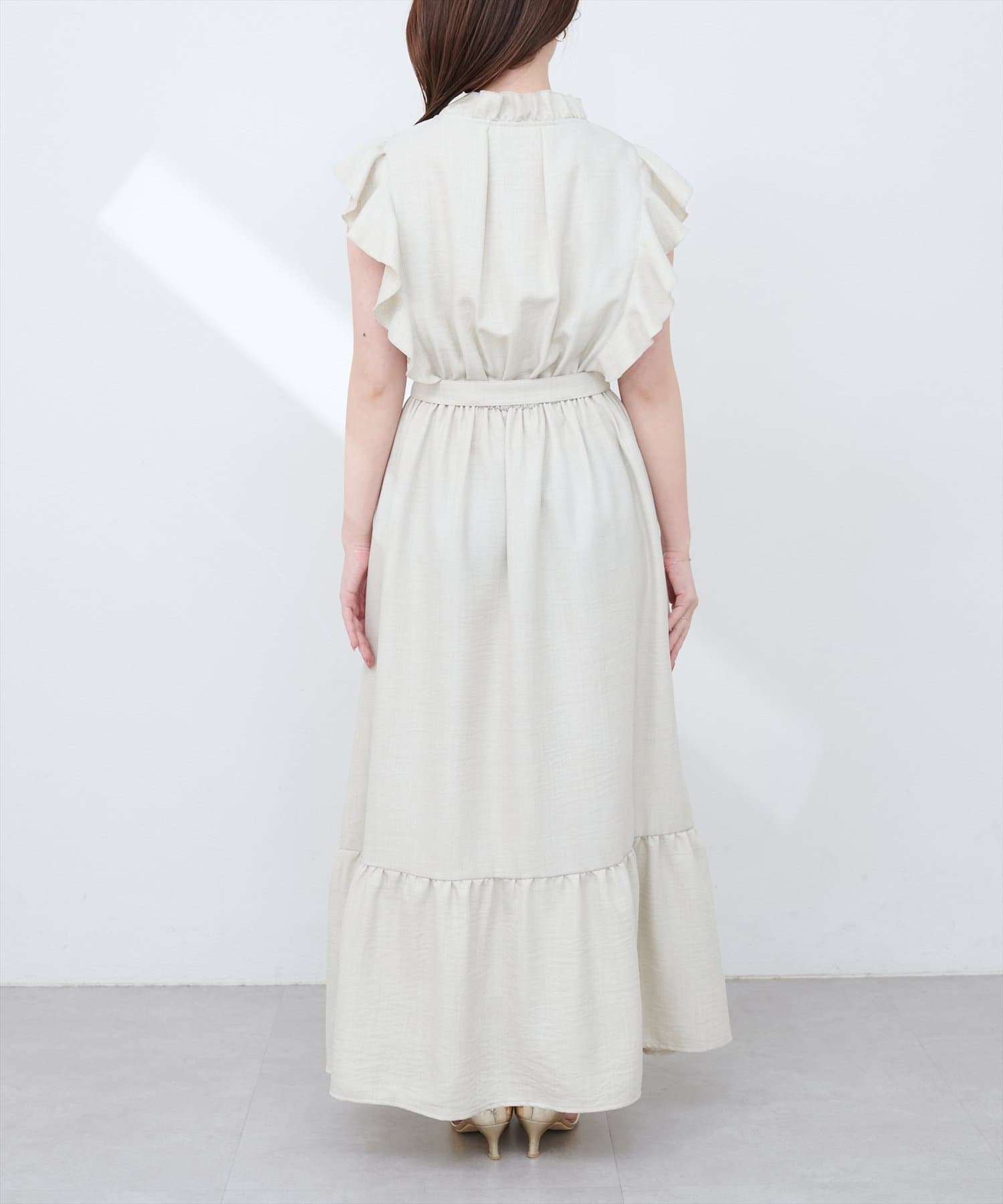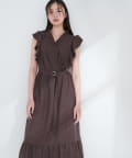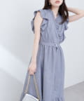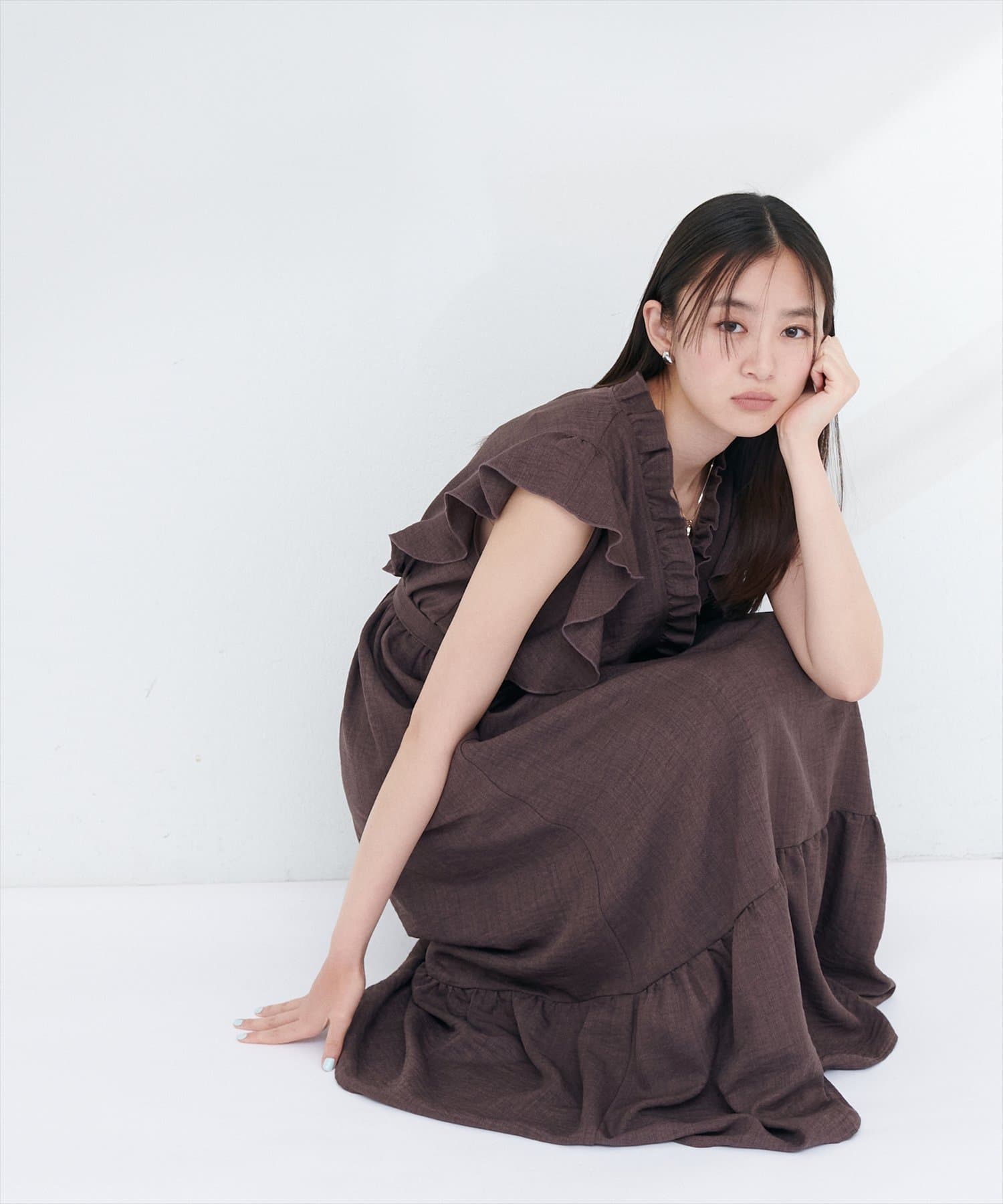 肩のフリルが、上品で華やかな印象を与え、歩くたびに揺れる裾のフリルが、女性らしさを引き立てます。