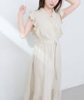 ウエストのリボンベルトで、シルエットにメリハリをつけ、スタイルアップ効果も期待できます。