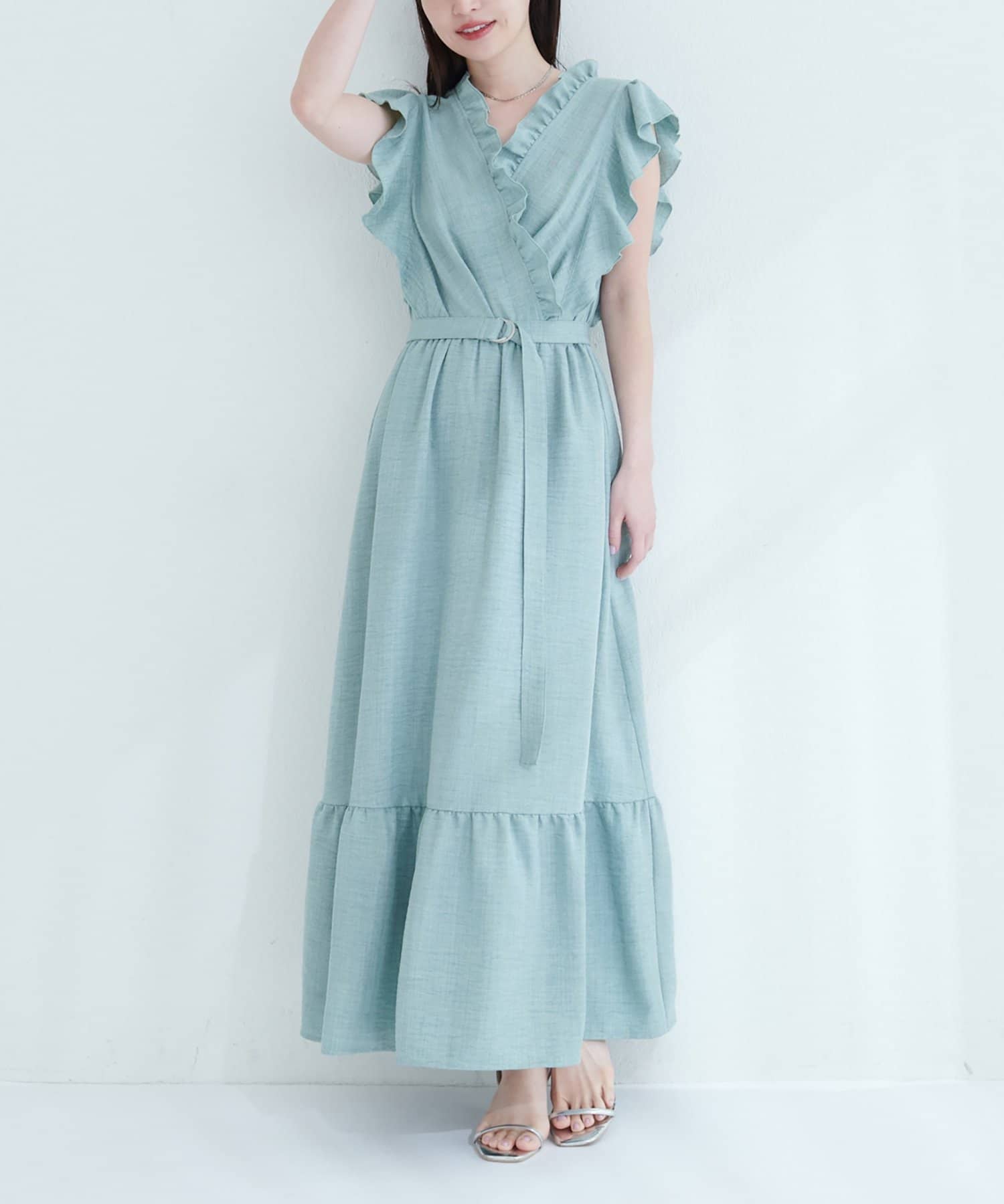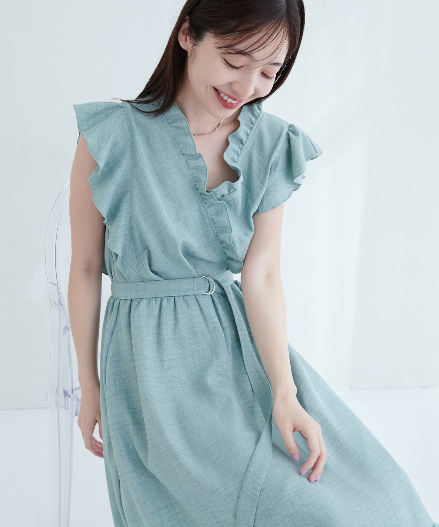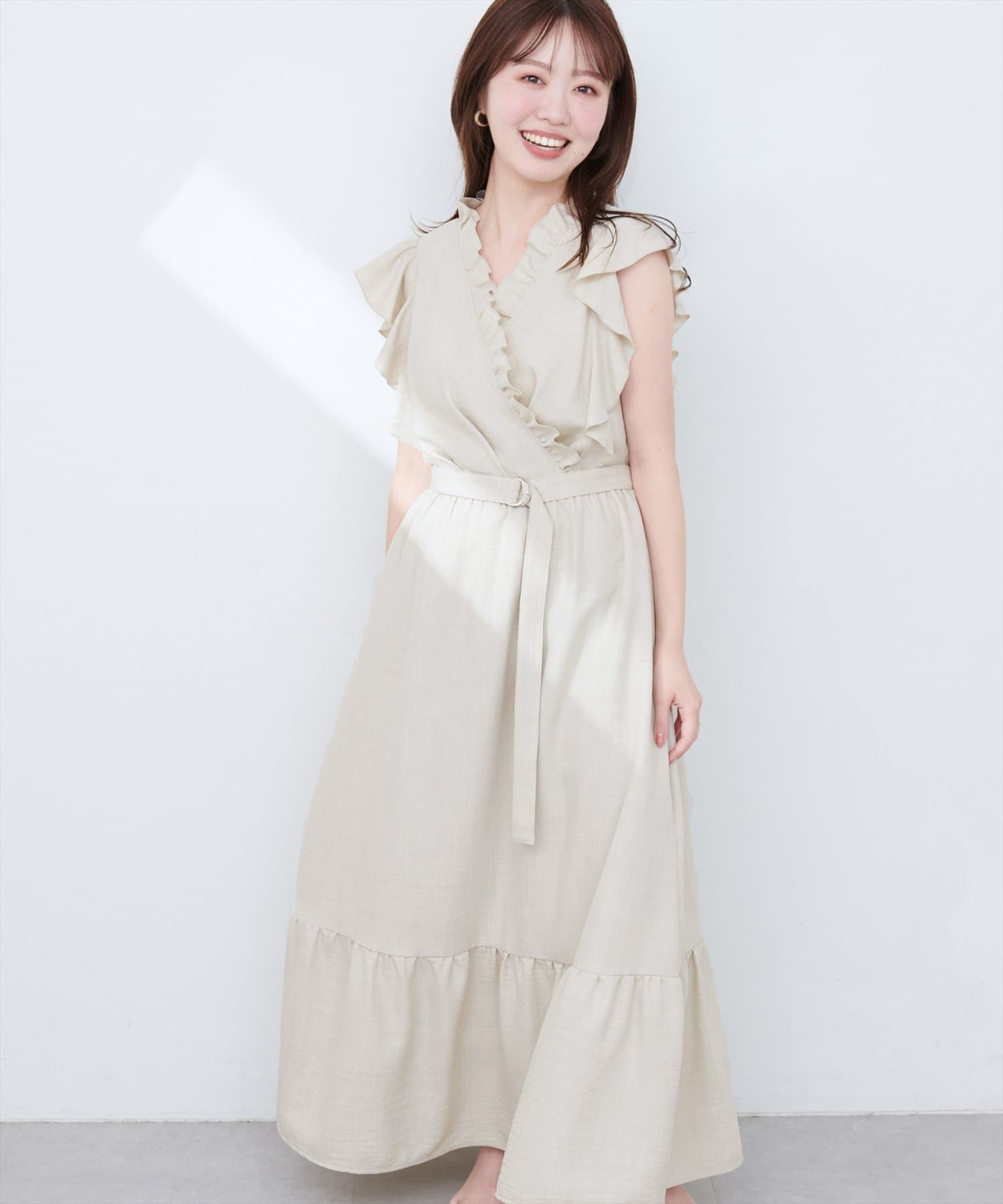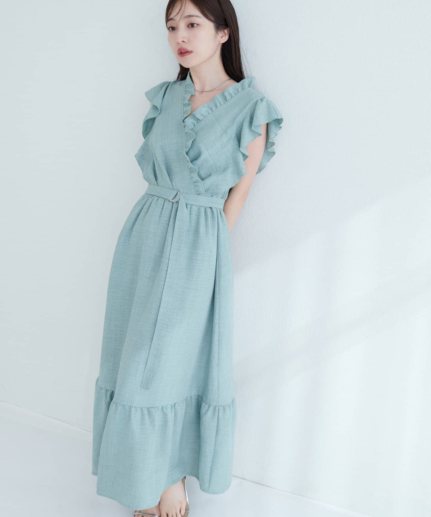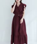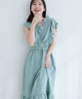 ふんわりと揺れるフリルが、女性らしさを引き立てるカシュクールワンピース。