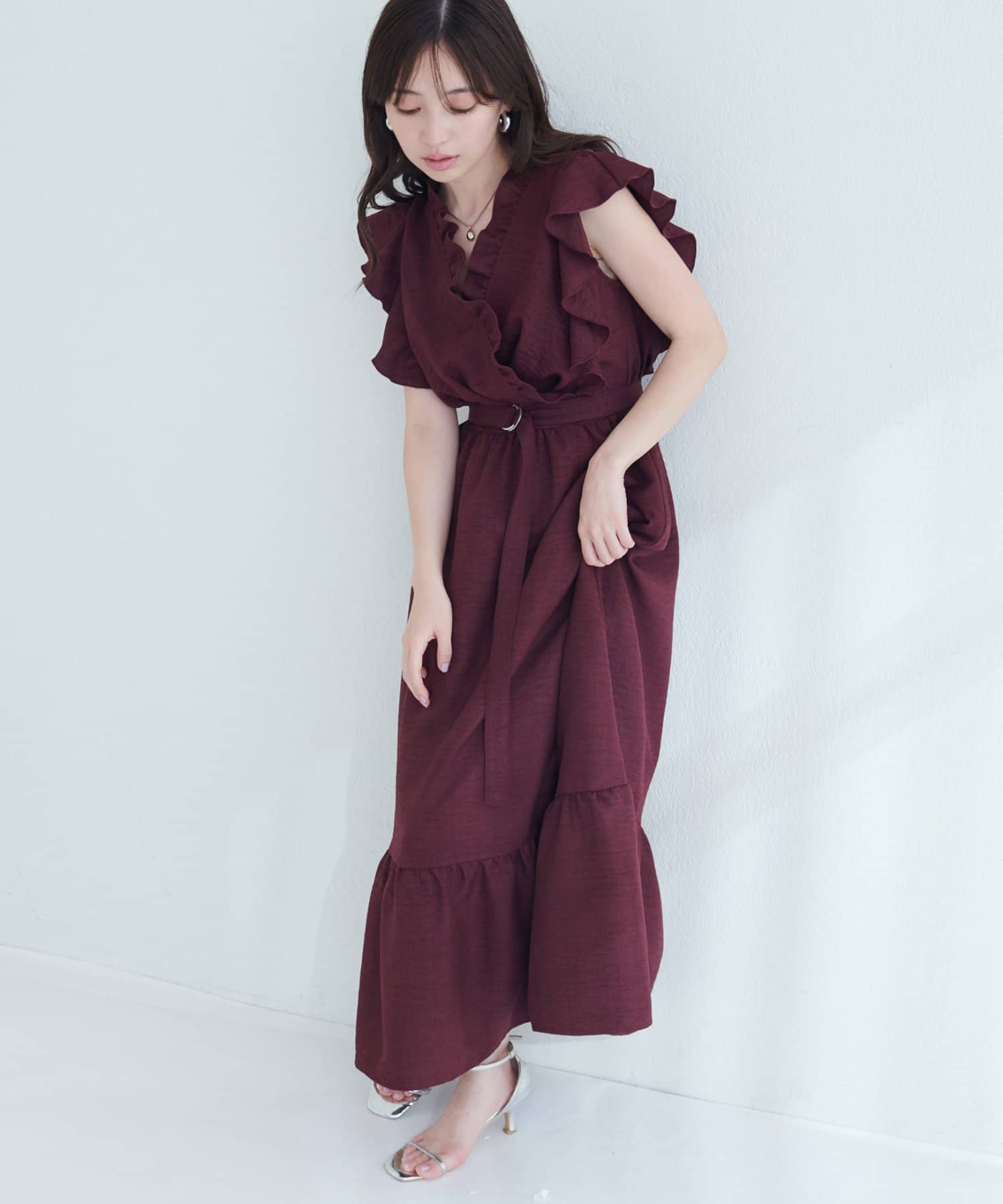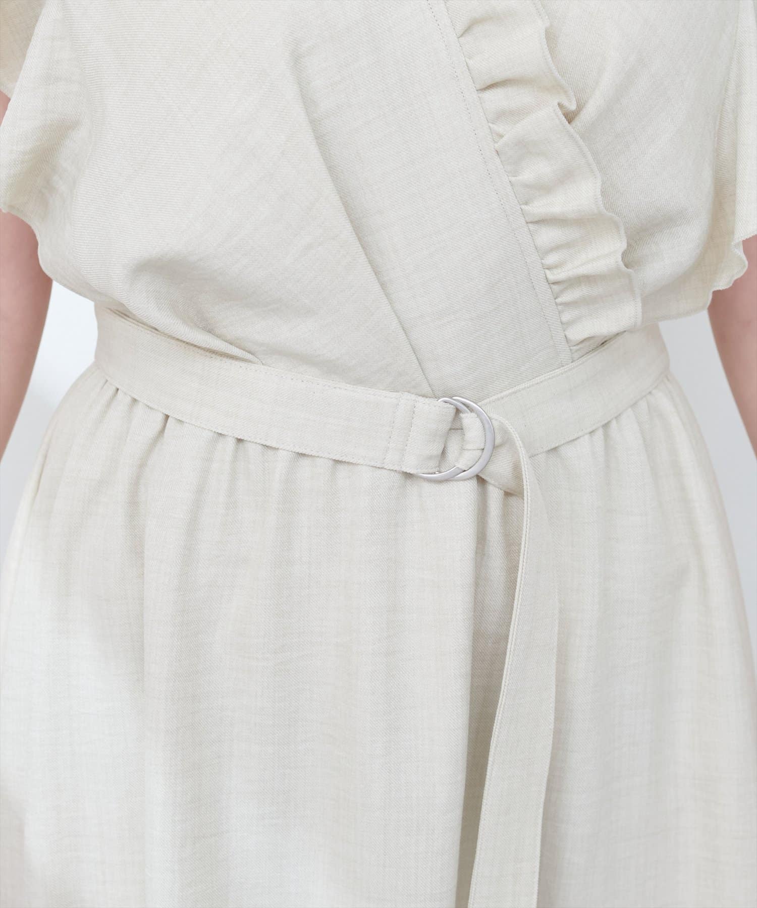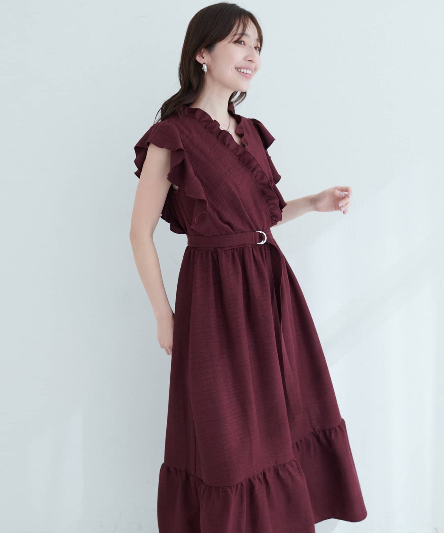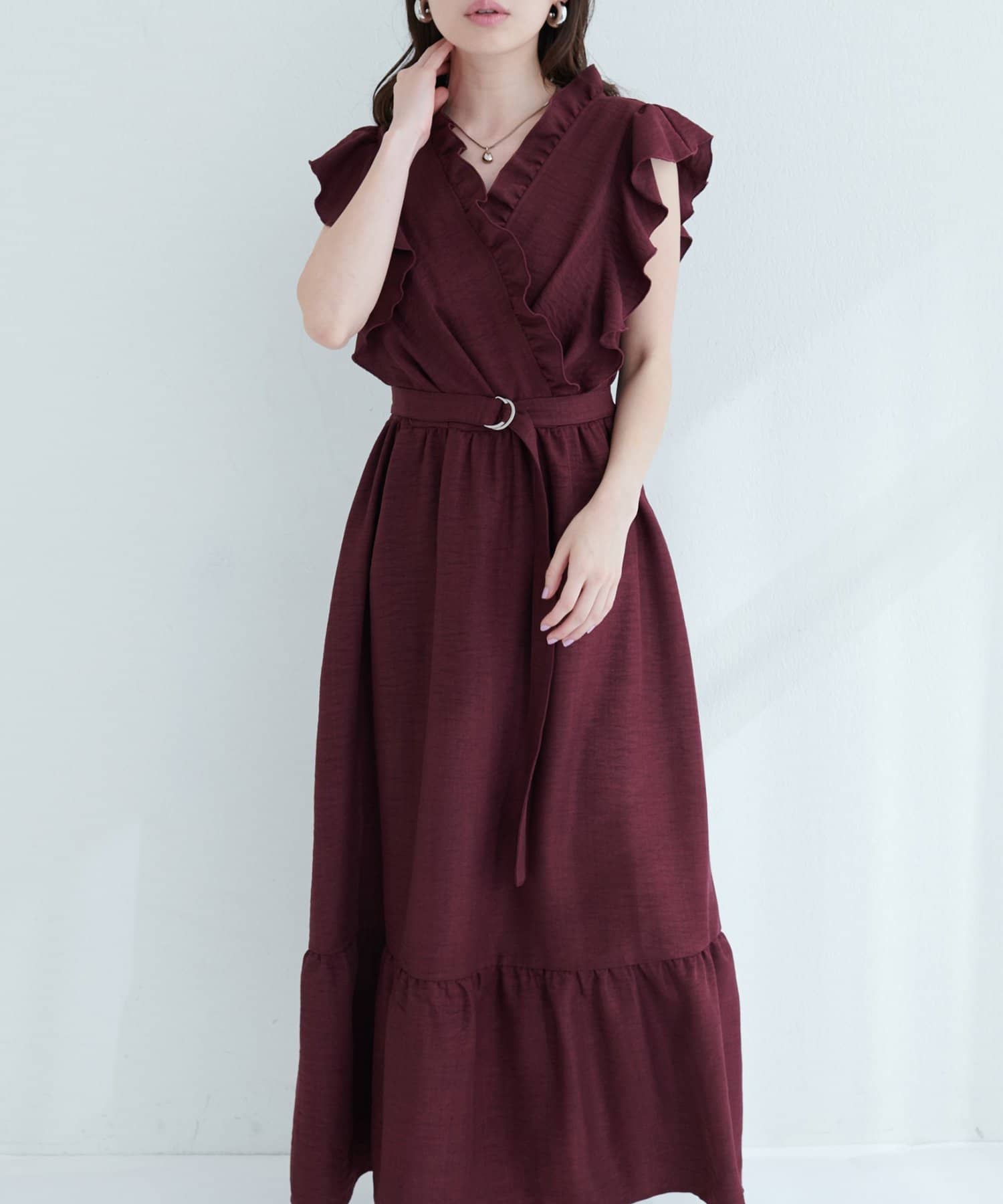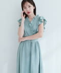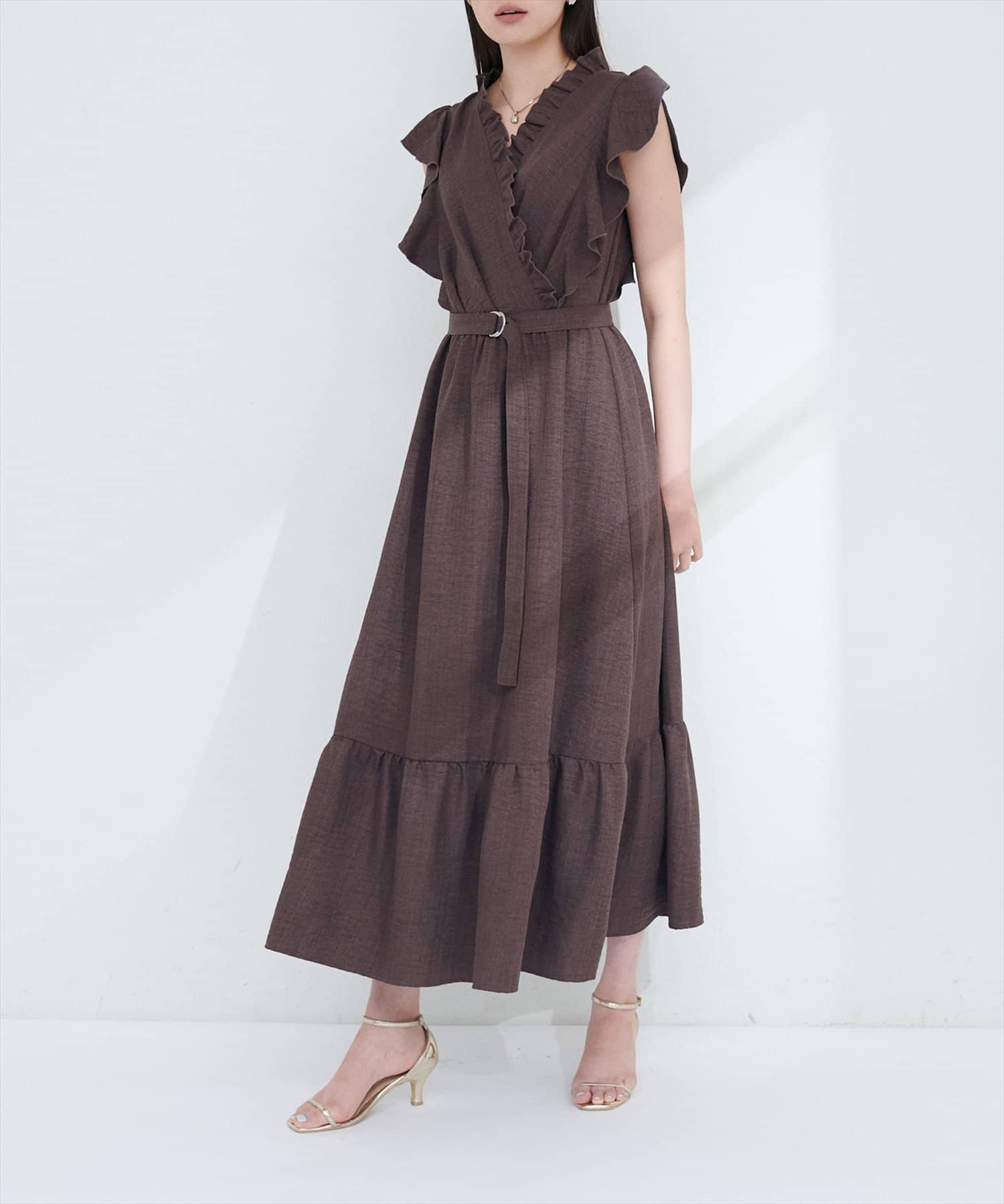 ふんわりと揺れるフリルが、女性らしさを引き立てるカシュクールワンピース。