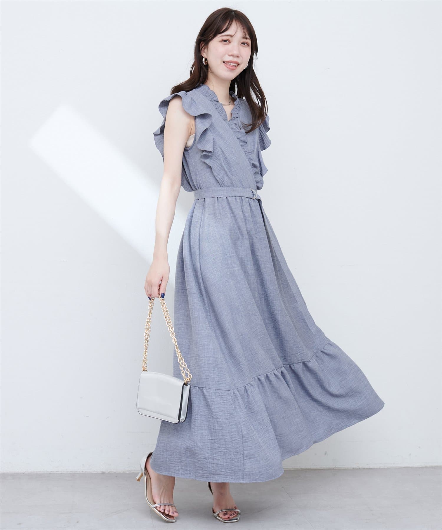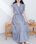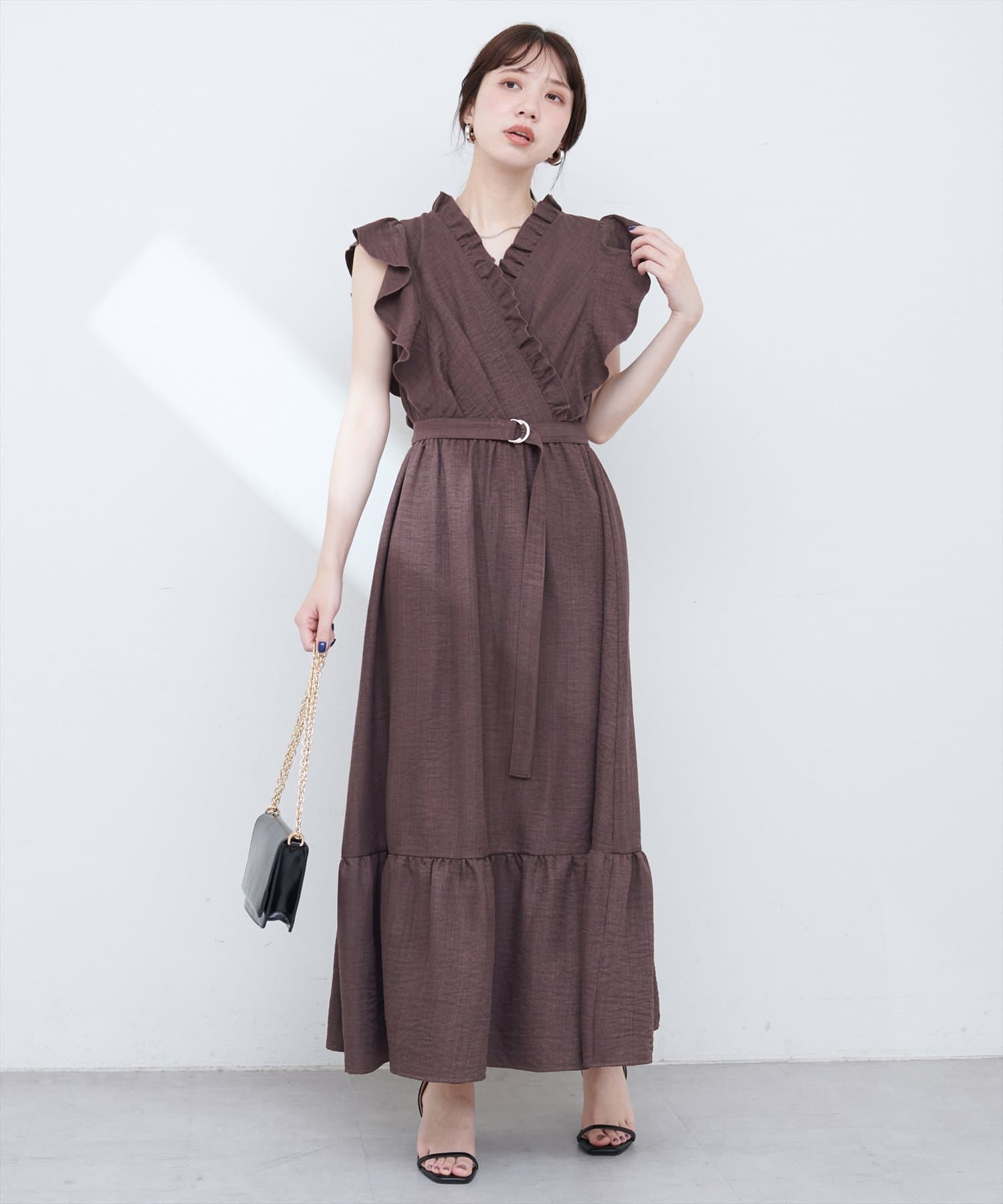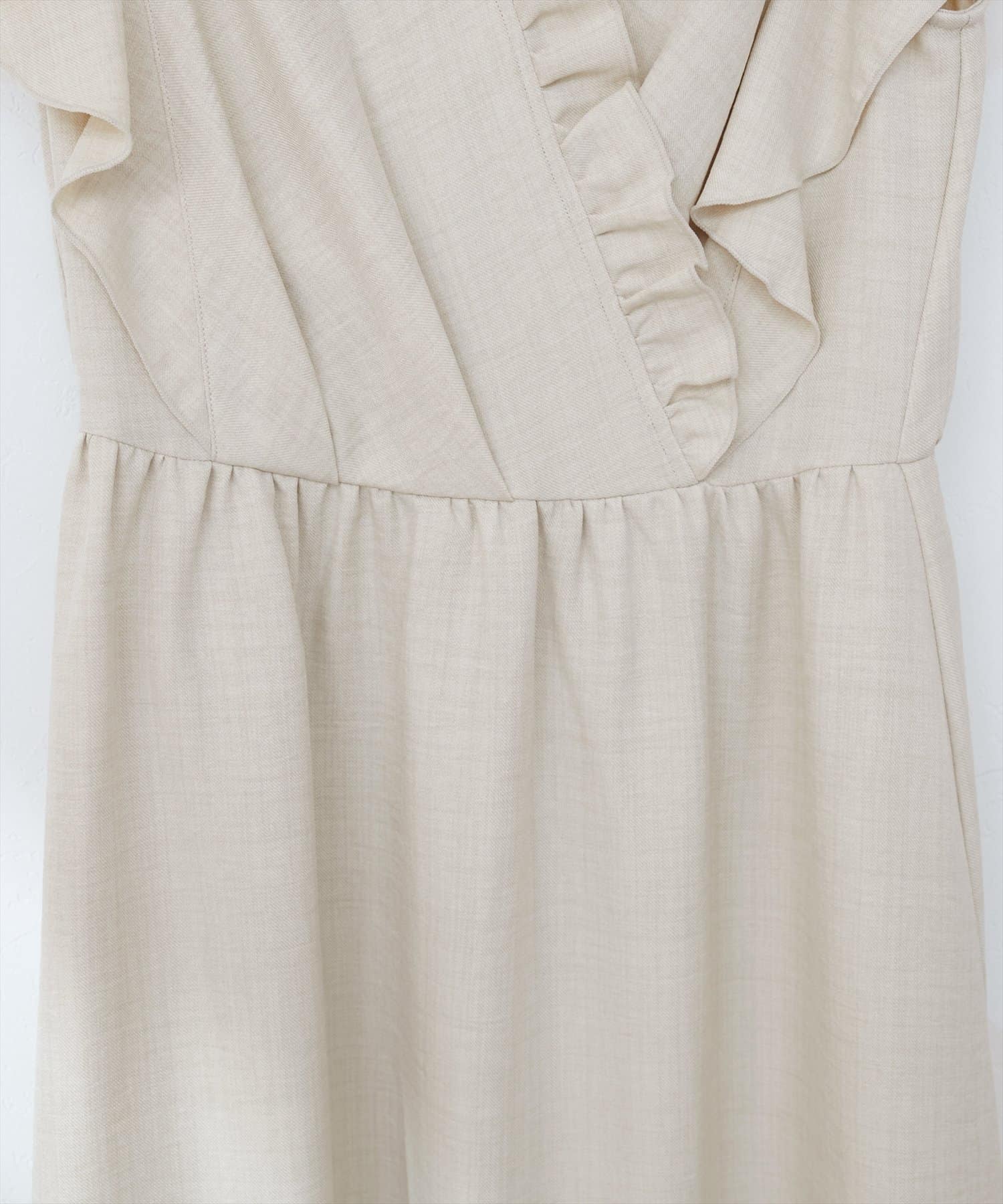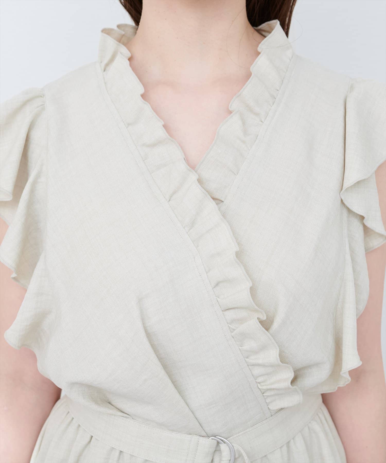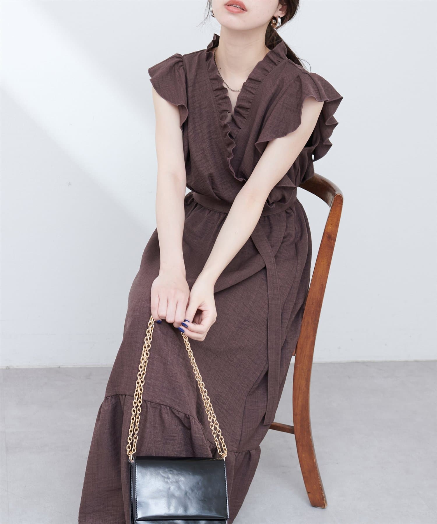 ふんわりと揺れるフリルが、女性らしさを引き立てるカシュクールワンピース。