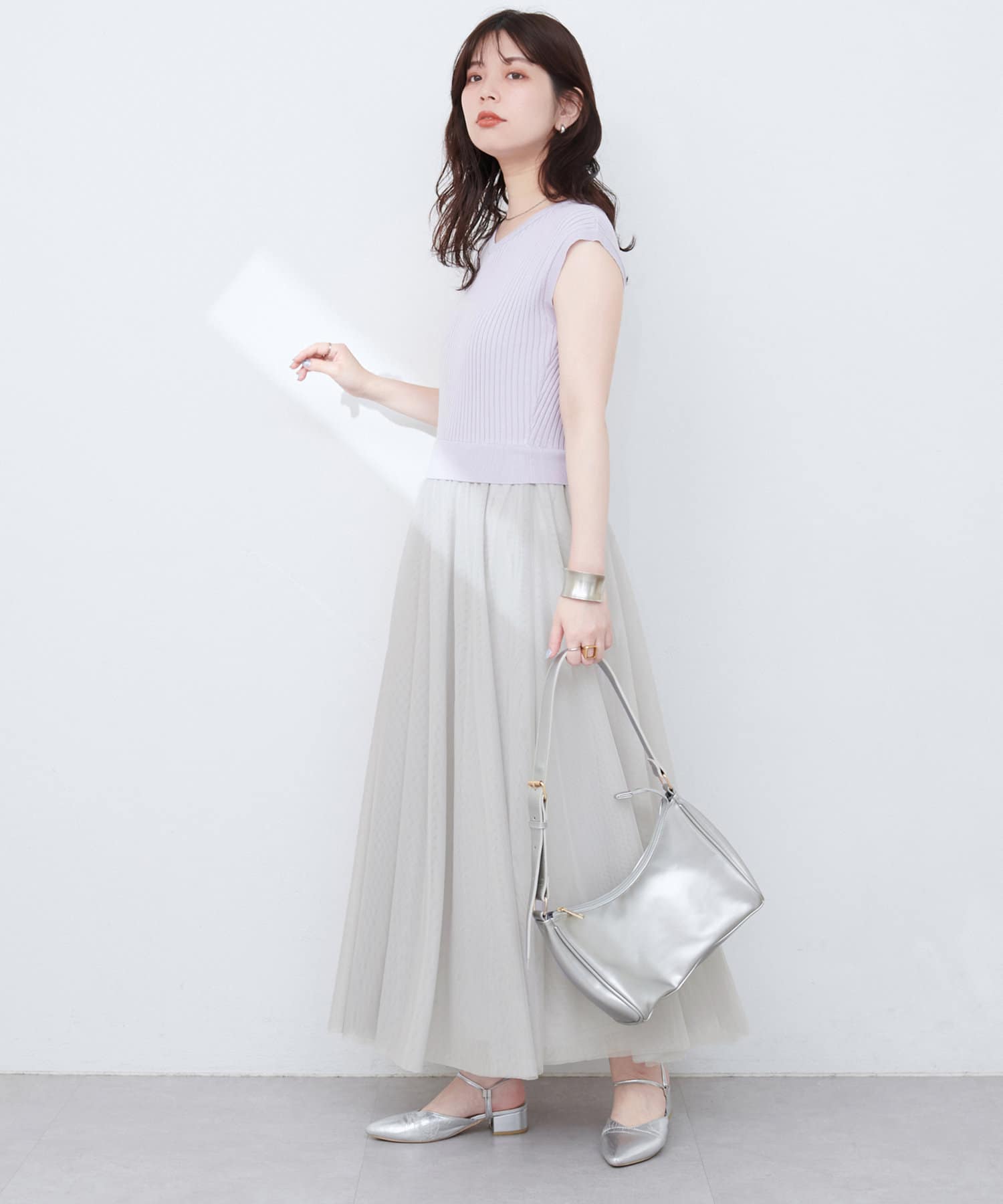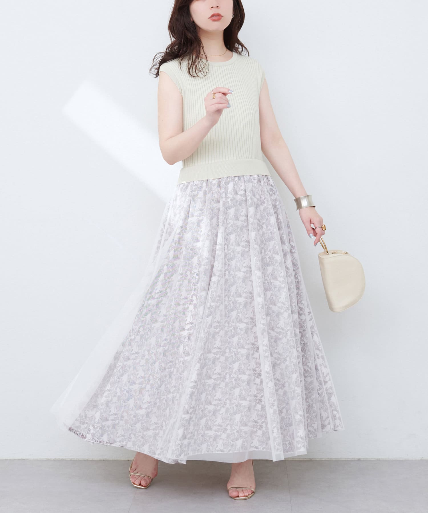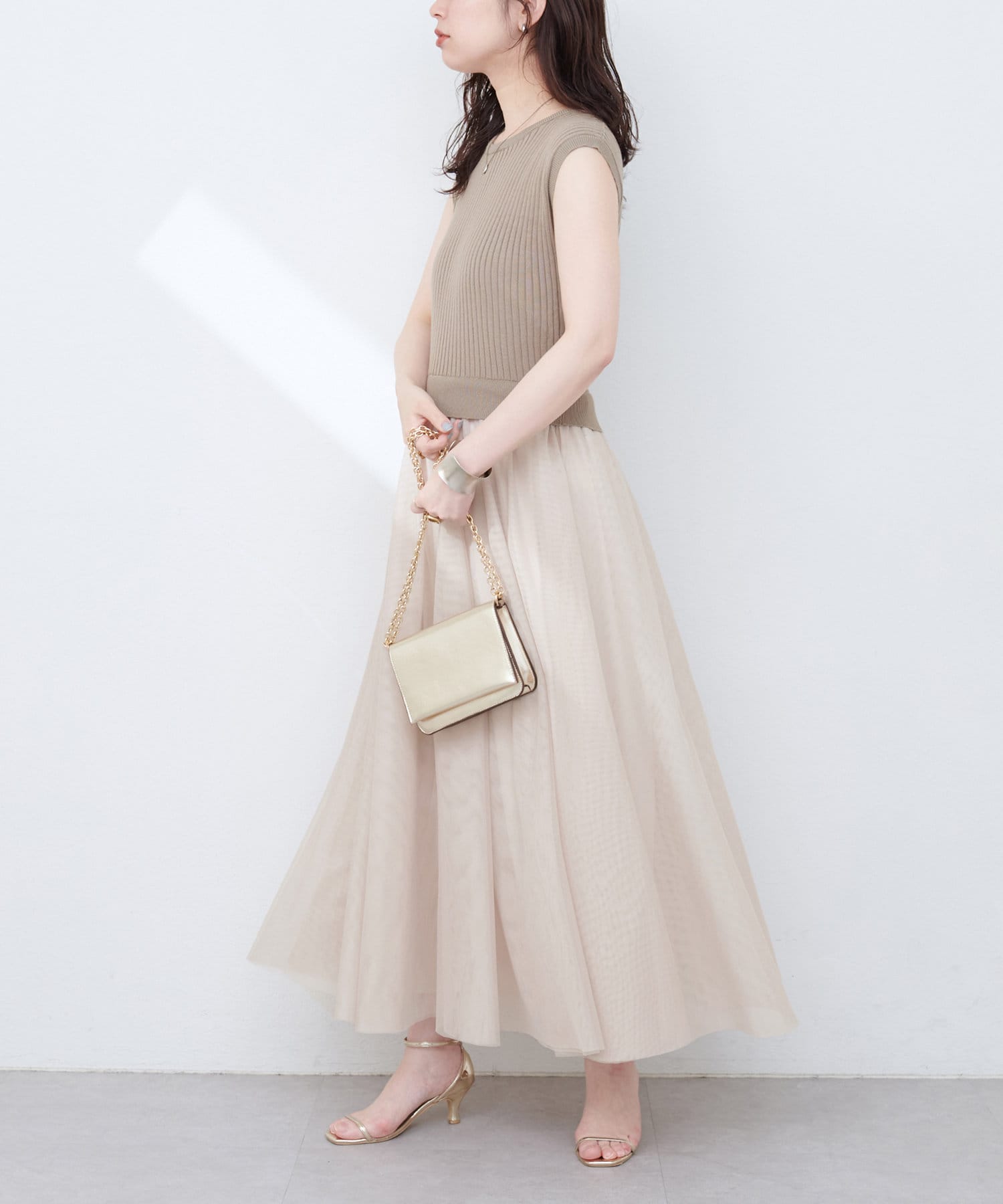 スカートは軽やかでさらっとしたチュール素材を使用。