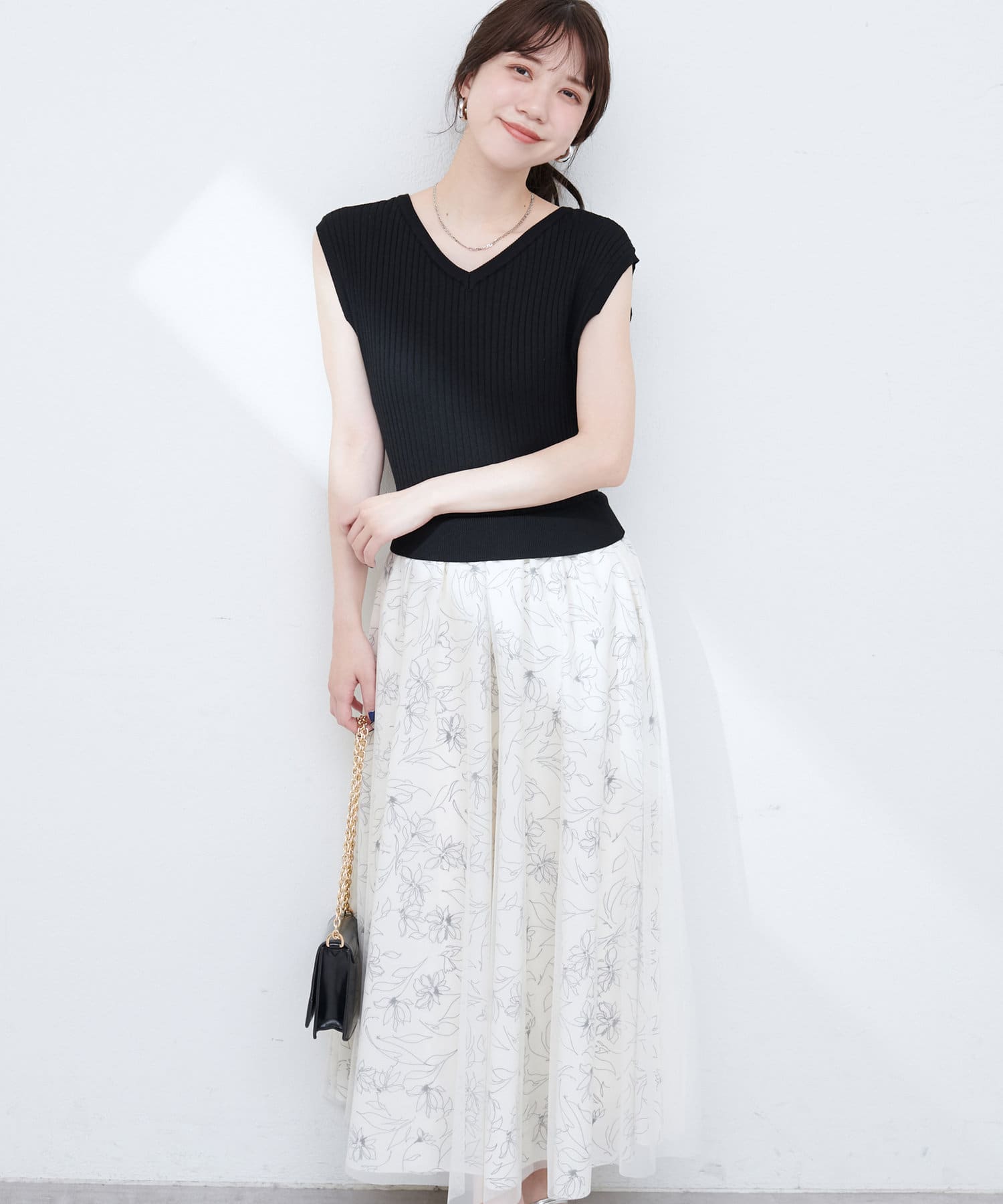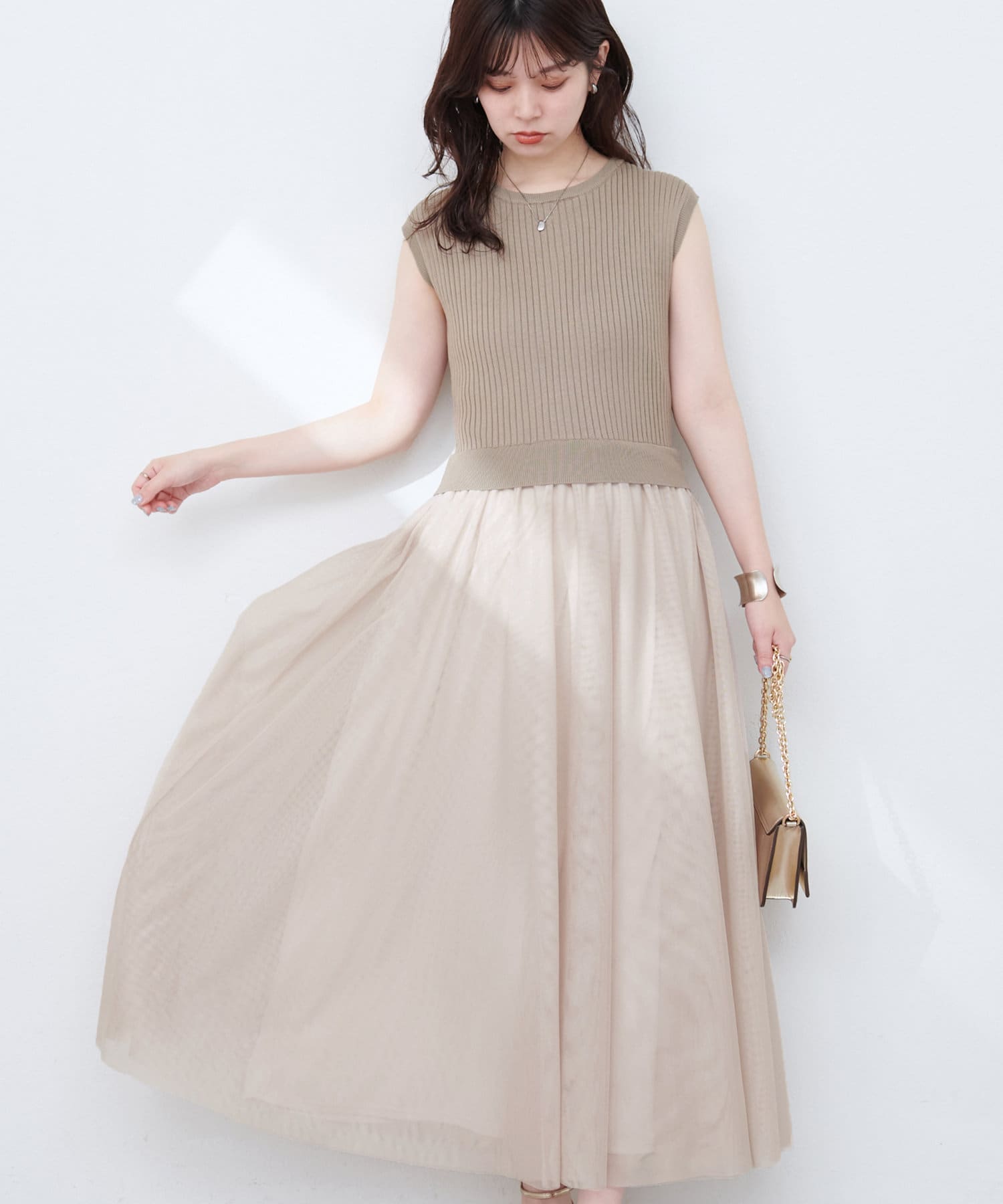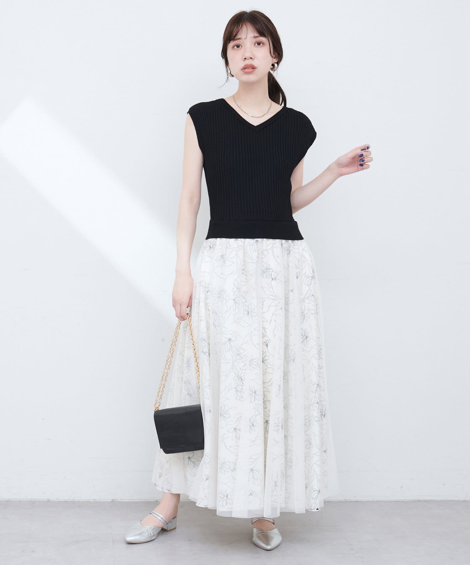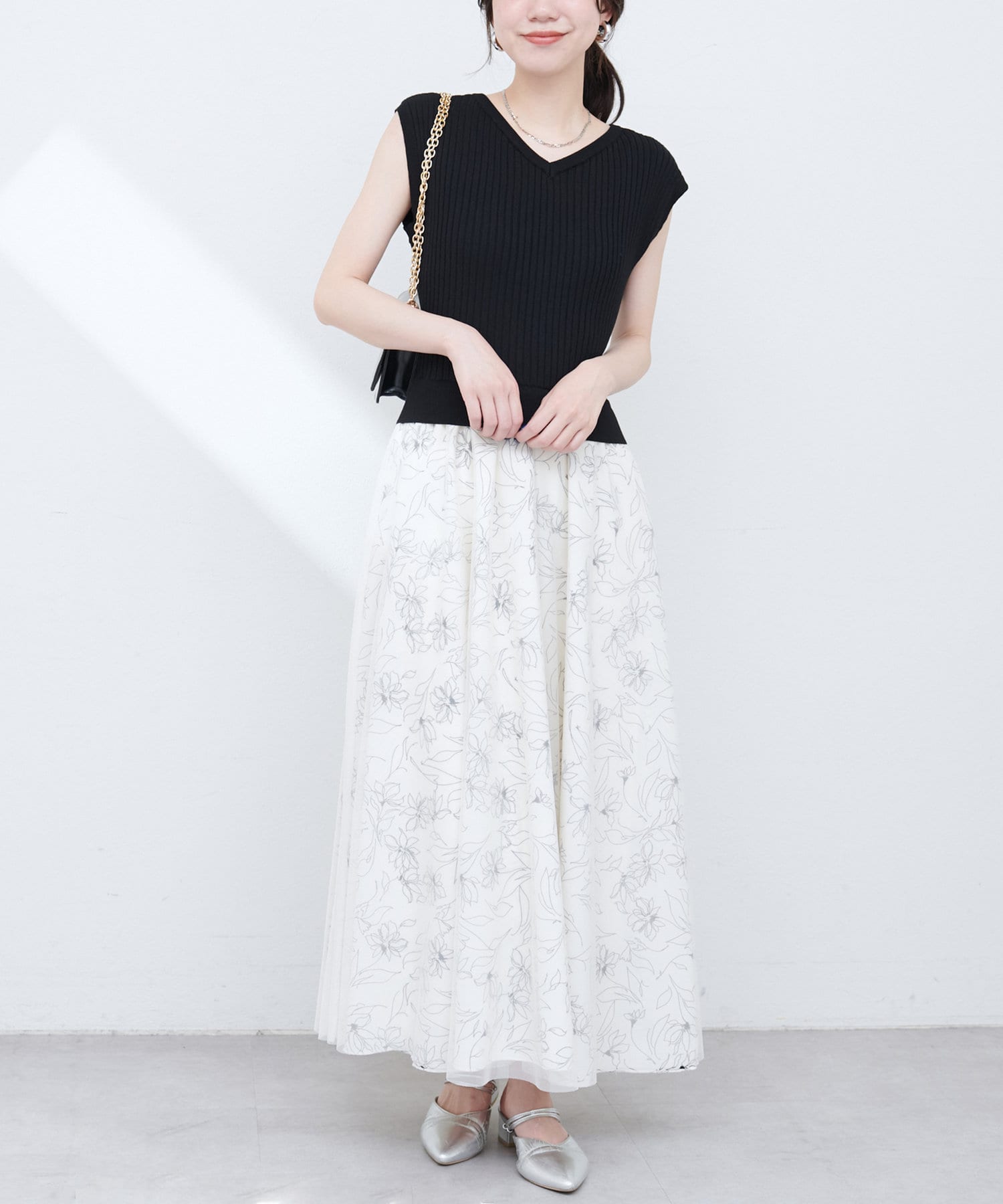 スカートは軽やかでさらっとしたチュール素材を使用。