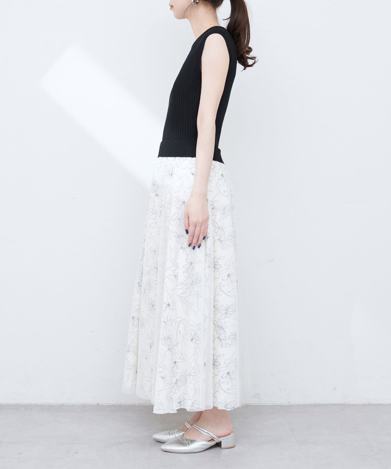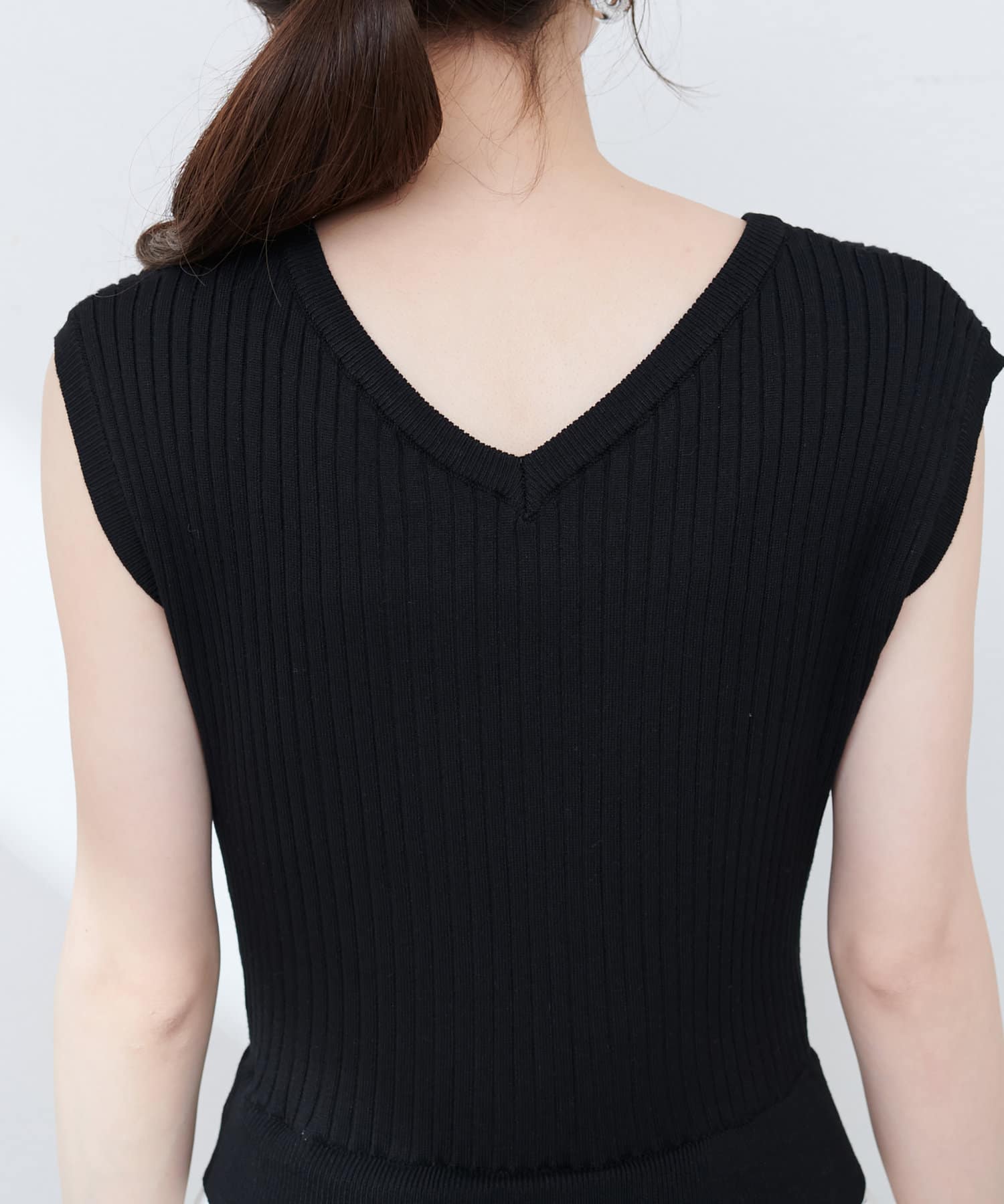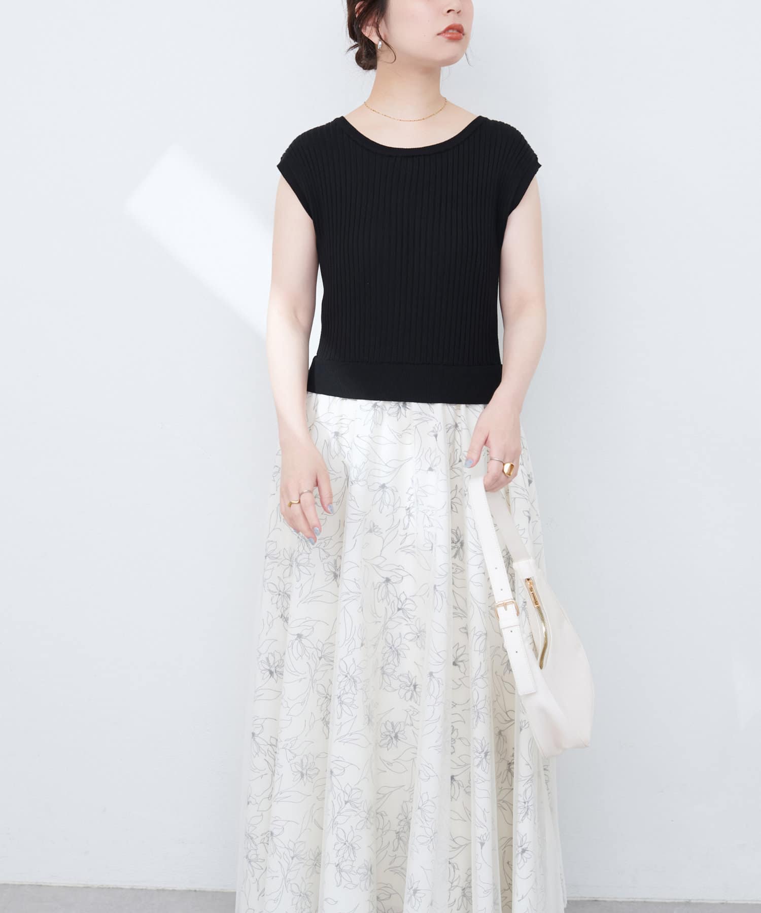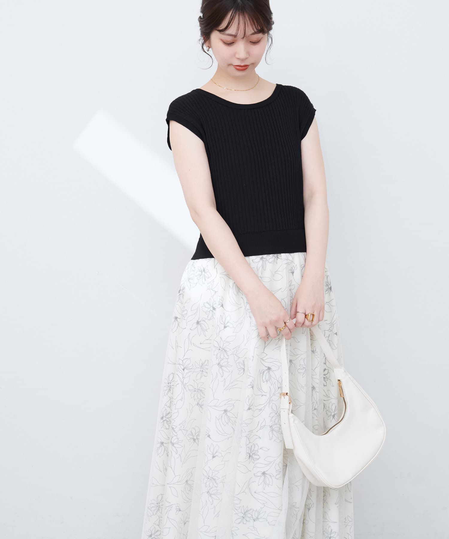 トップス部分はリブニット素材を使用しており、程よいフィット感でスタイルアップ効果も期待できます。