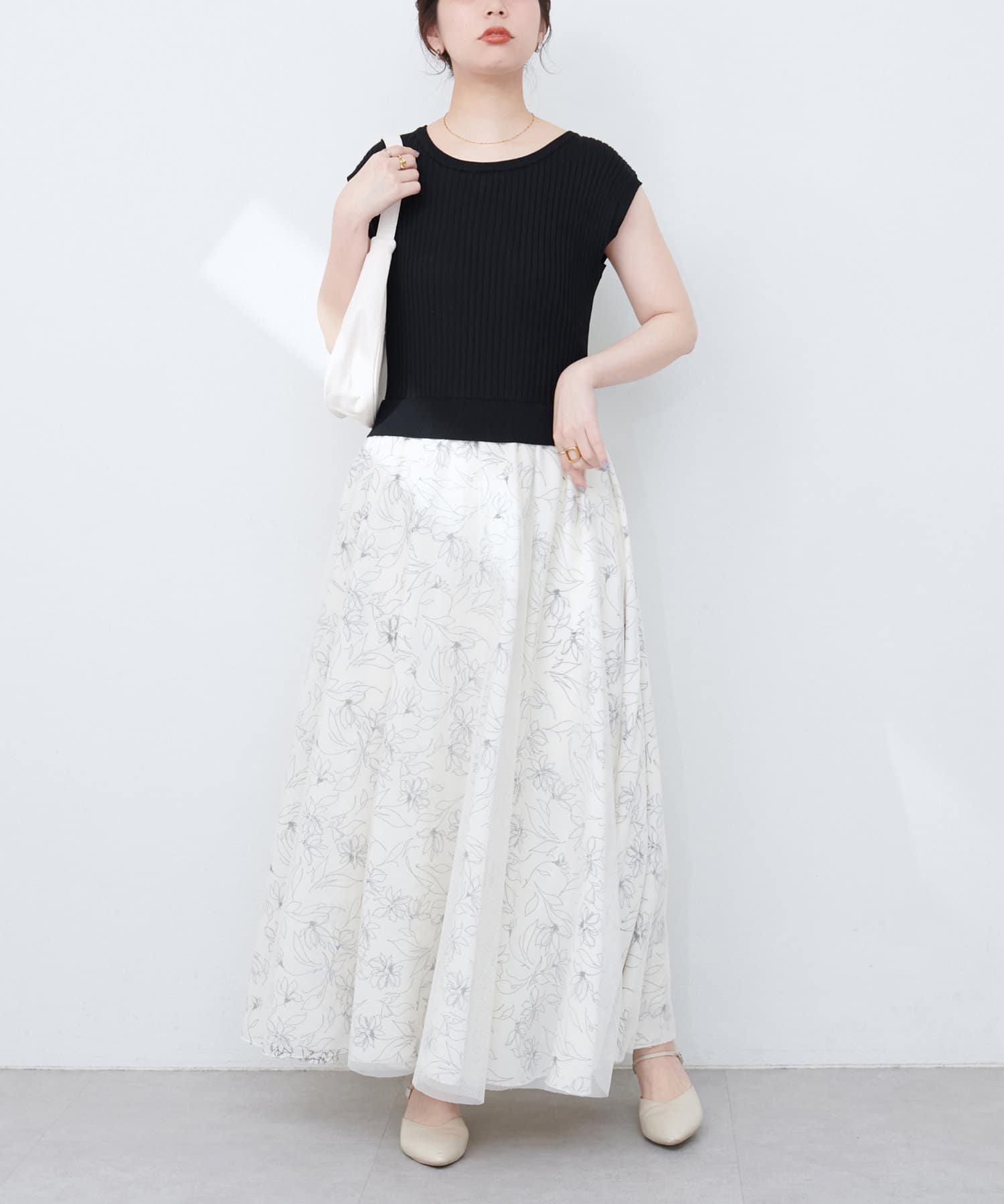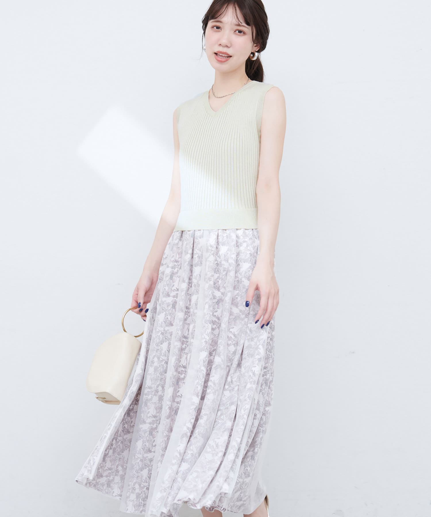 トップスとスカートをコーディネートしたような、こなれ感のあるドッキングワンピース。