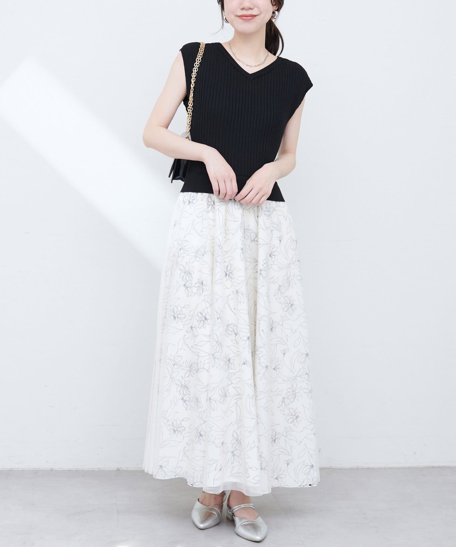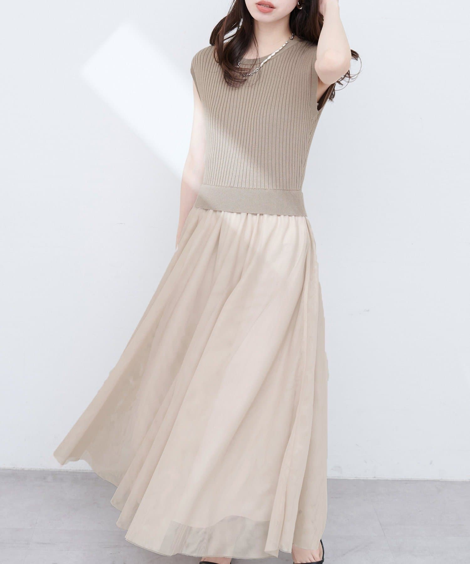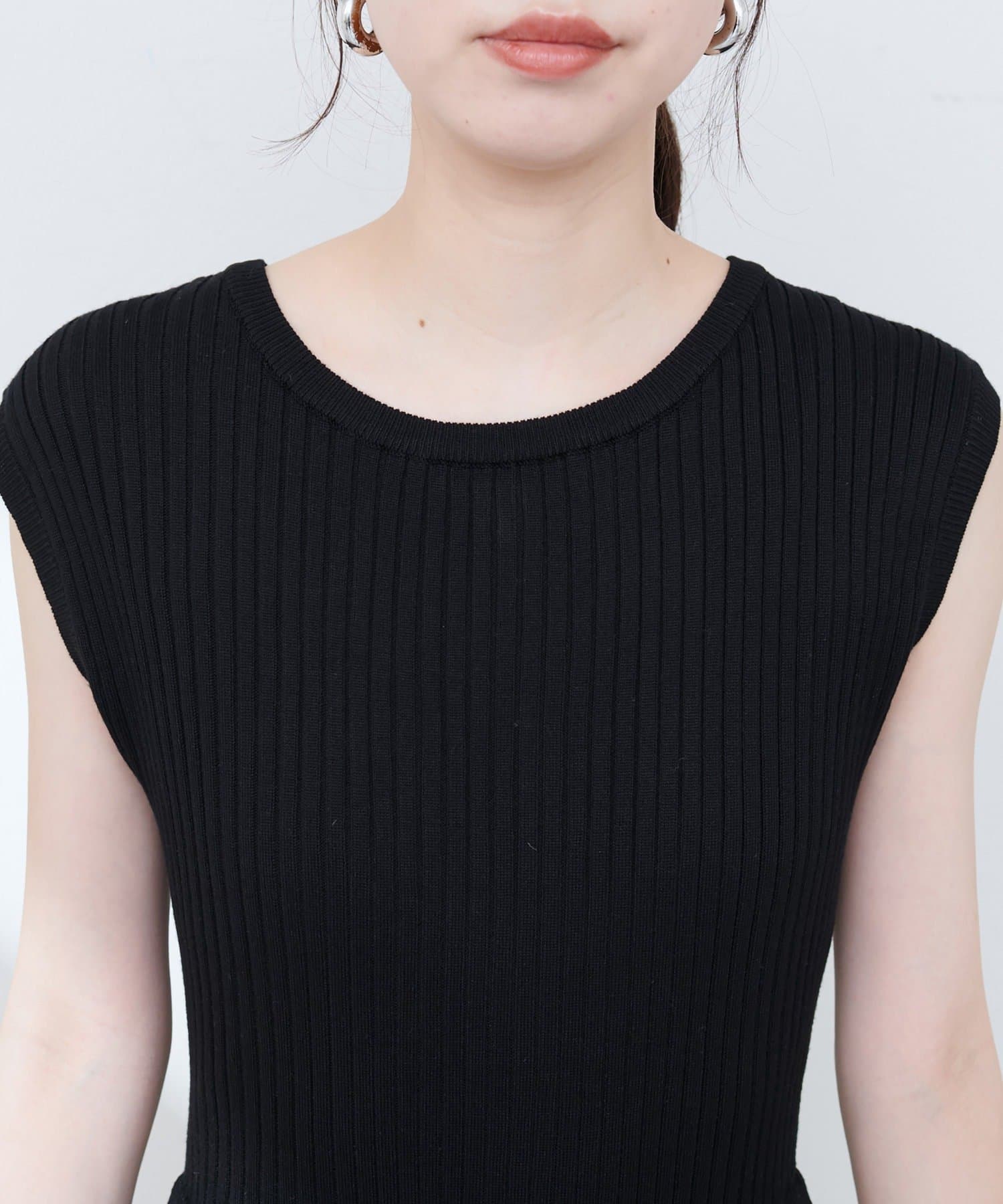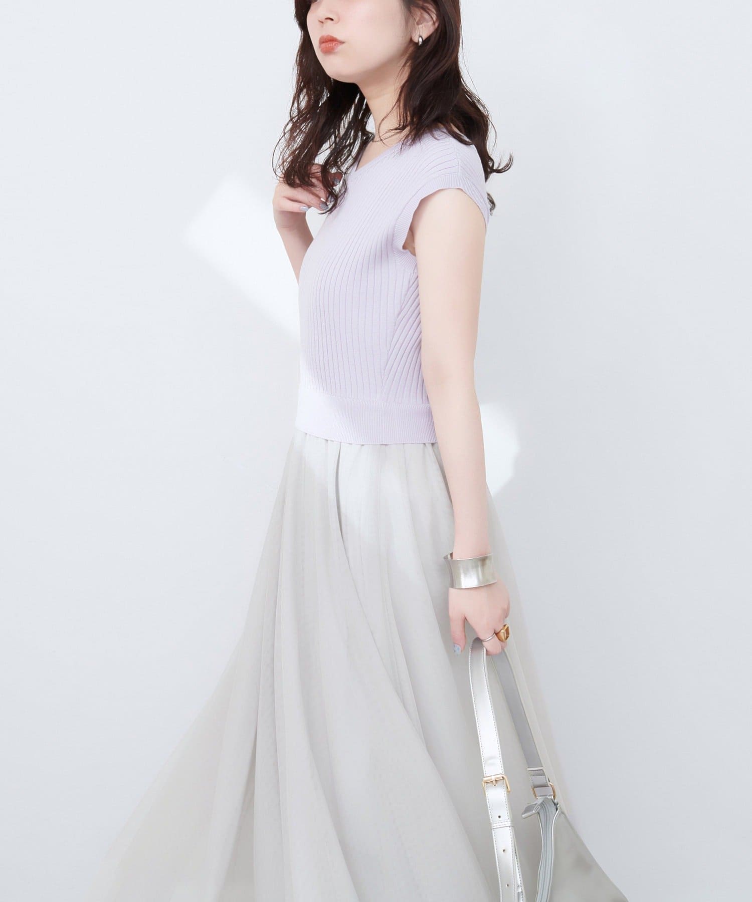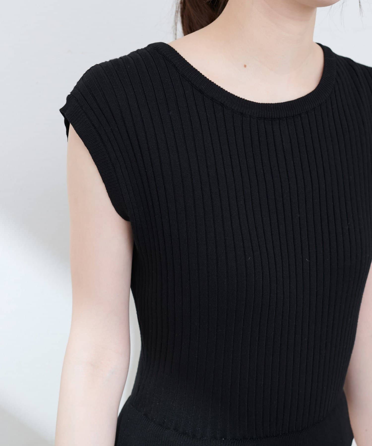 トップス部分はリブニット素材を使用しており、程よいフィット感でスタイルアップ効果も期待できます。