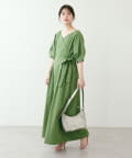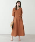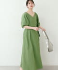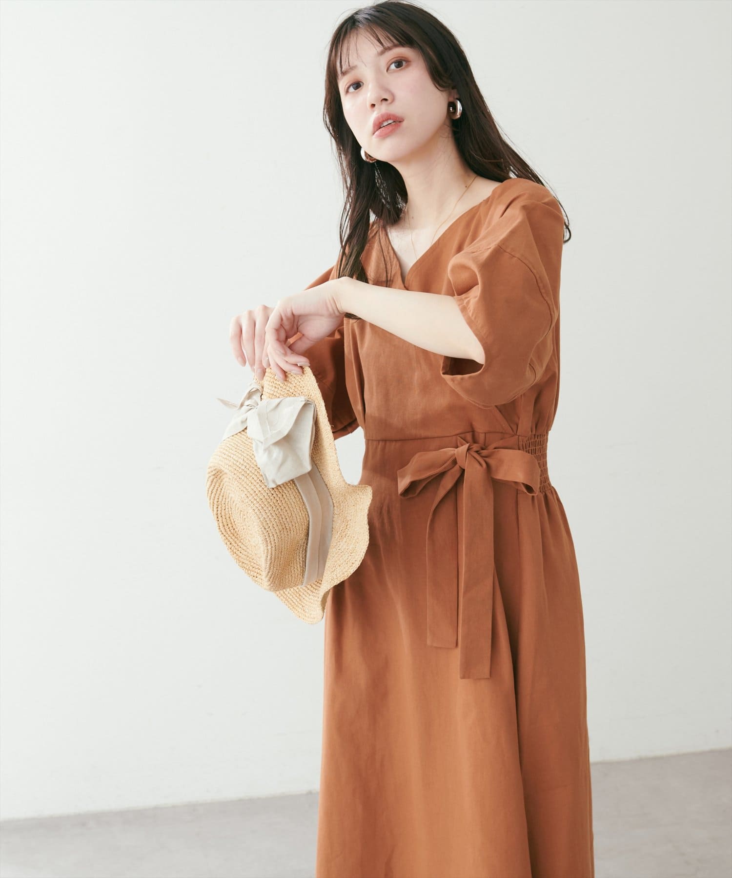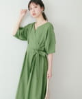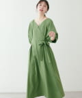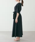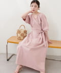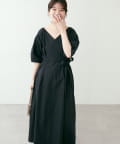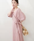 腰部分のリボンベルトでウエストマークすることで、メリハリのあるシルエットを作り出し、より洗練された印象に。