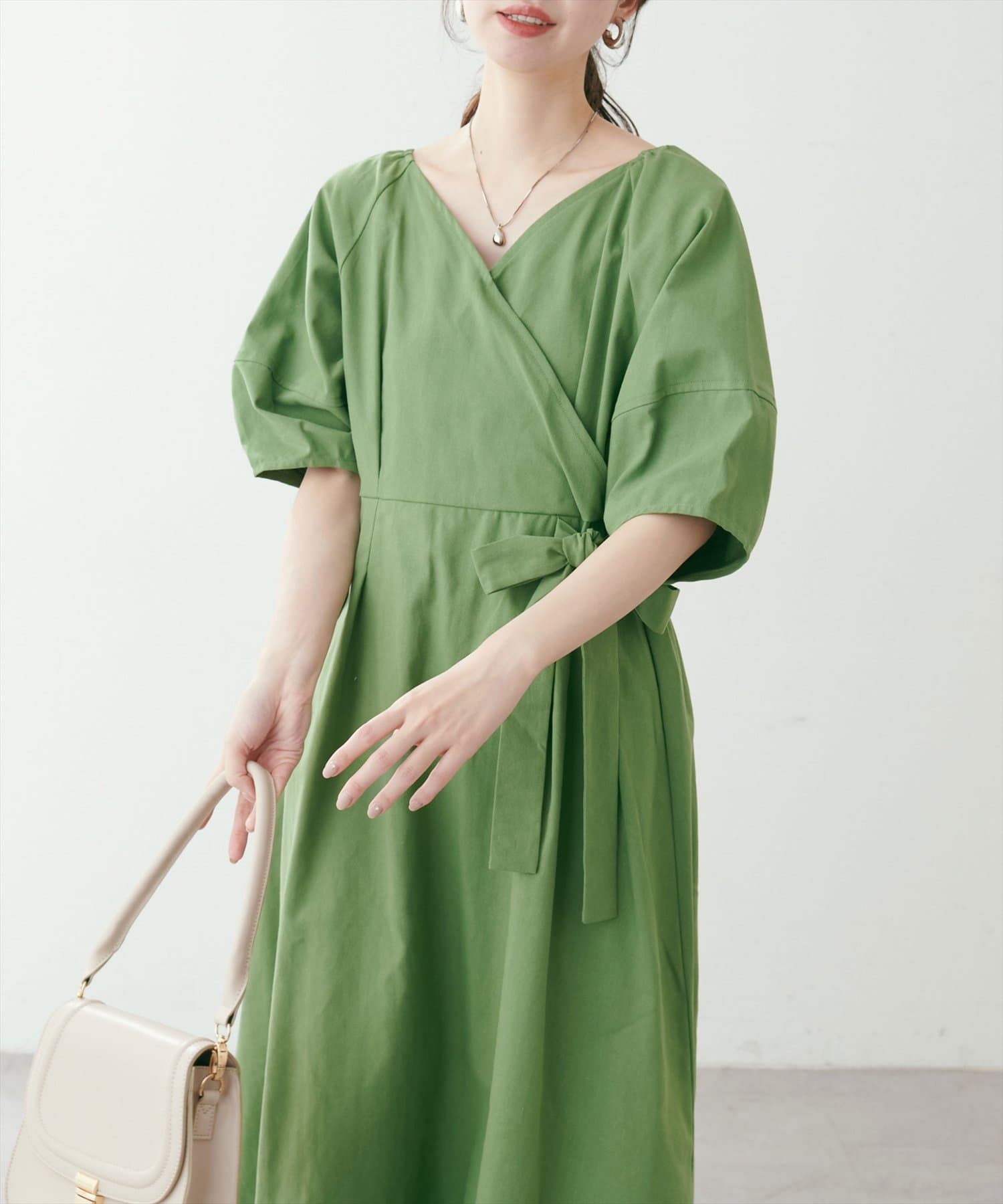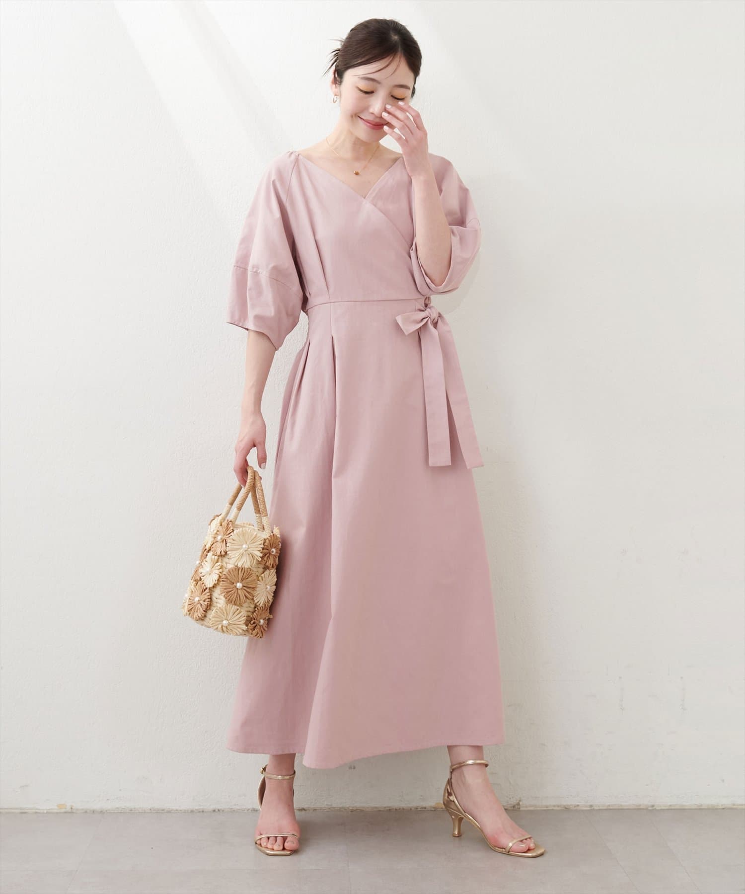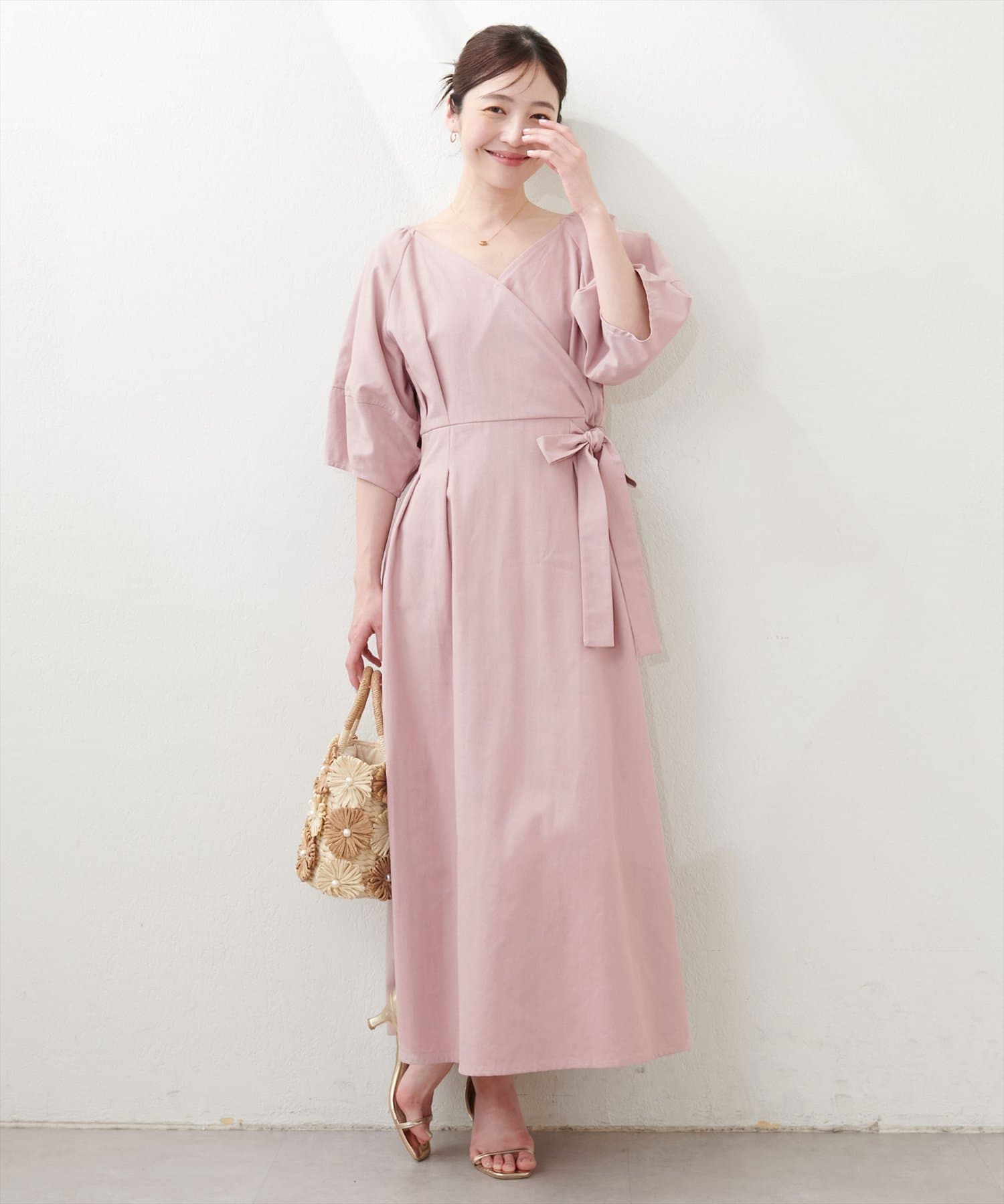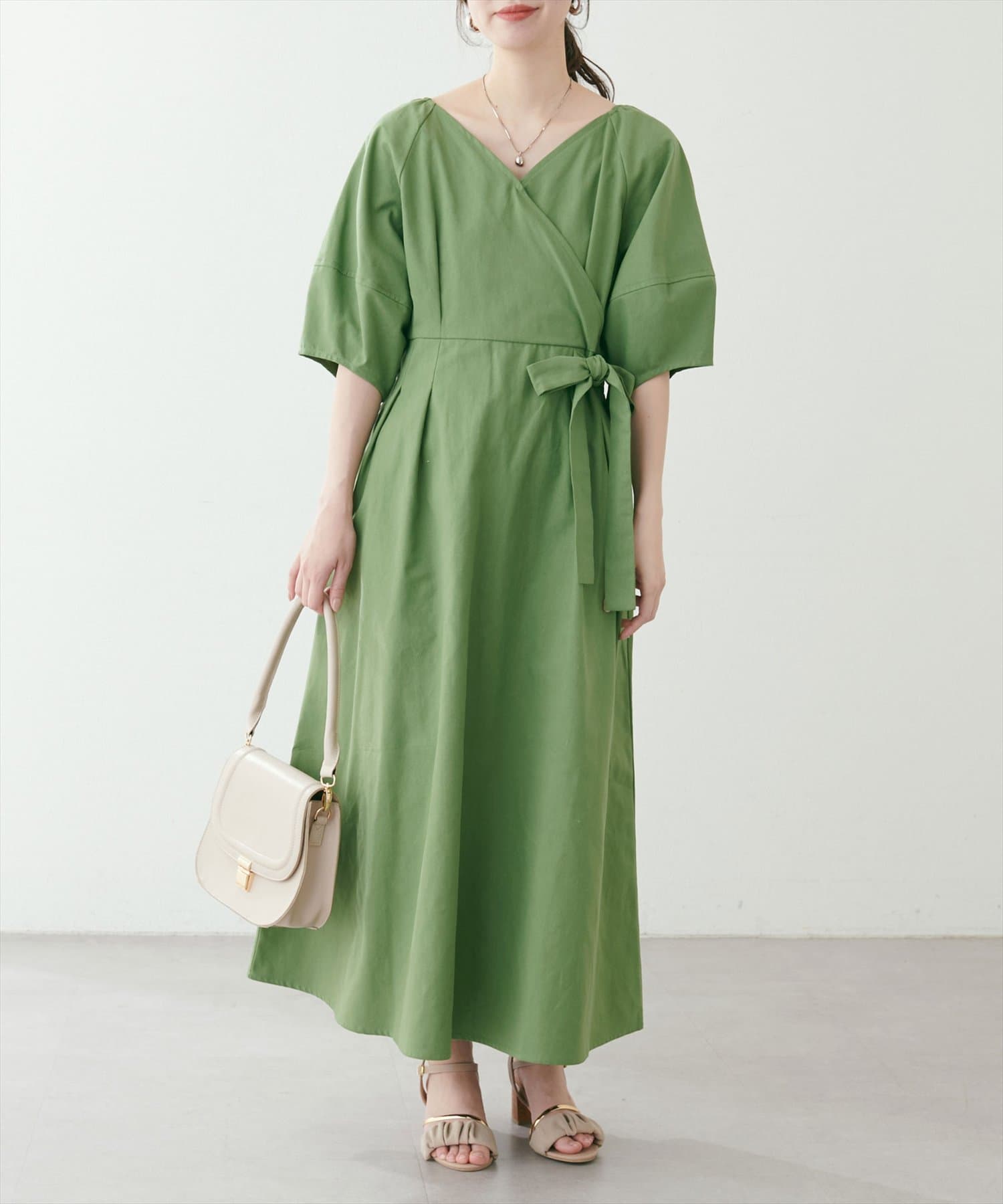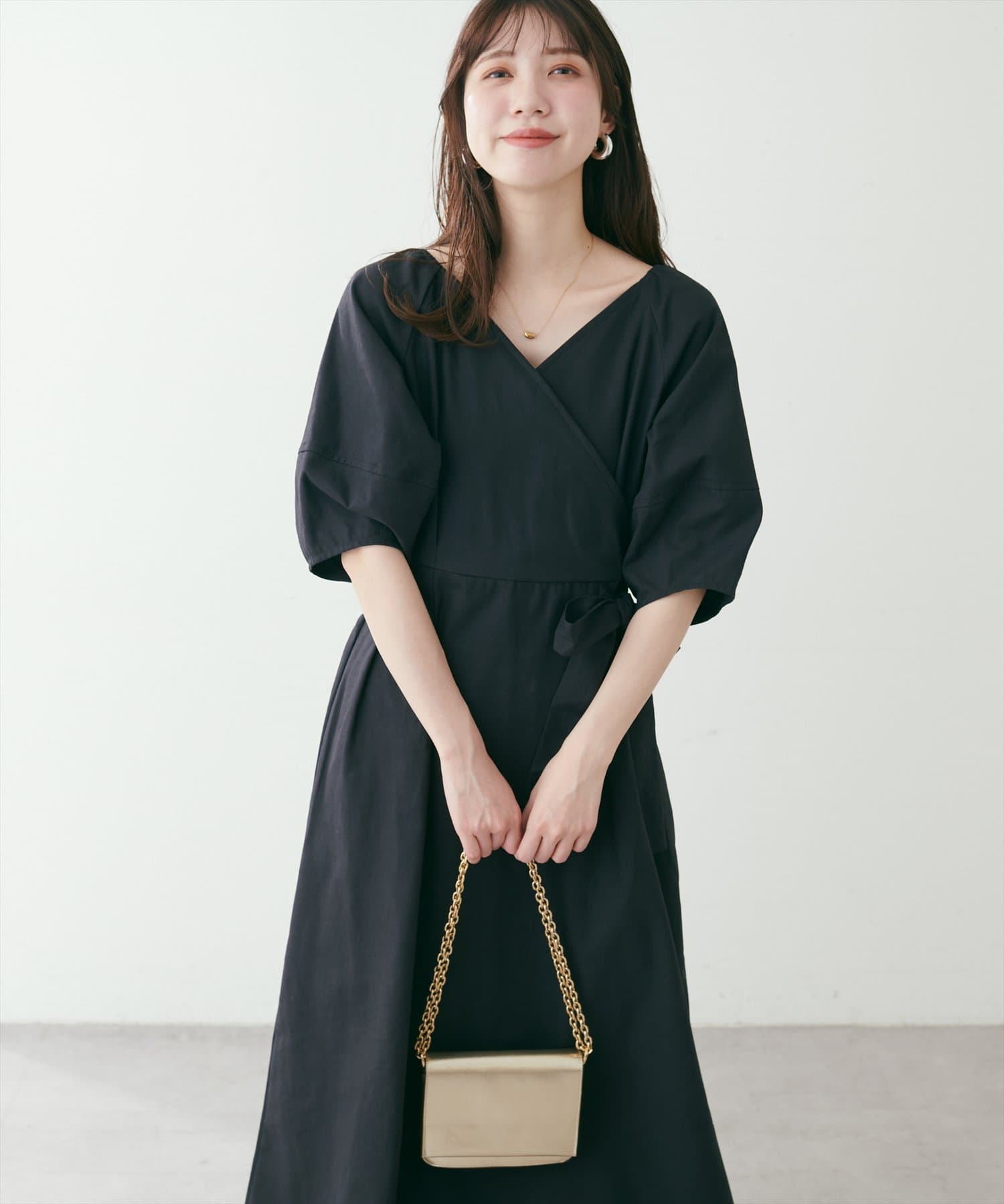 大人の女性のための、上品で洗練されたカシュクールワンピース。