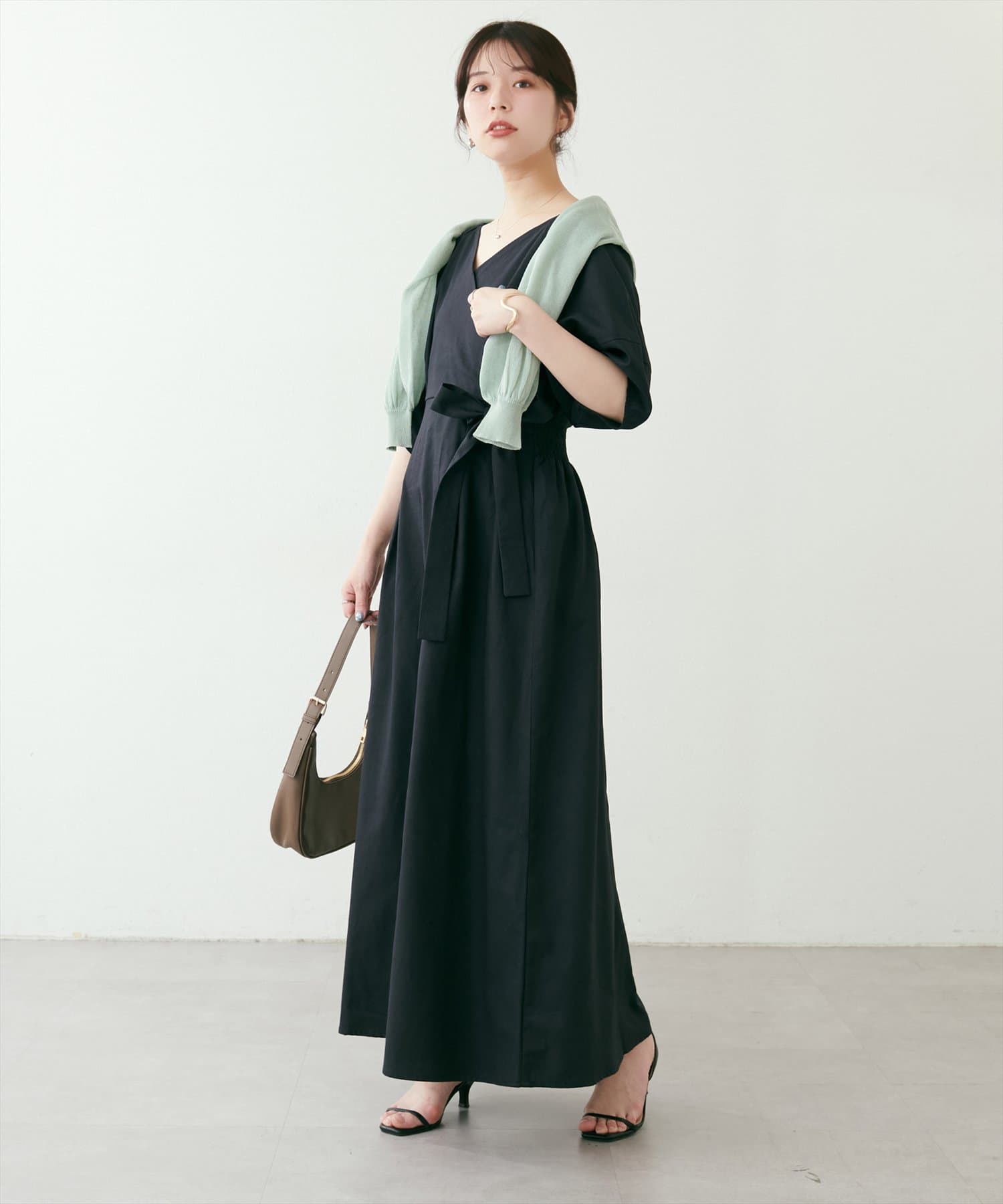 アクセサリーやバッグを変えるだけで、様々なシーンで活躍してくれる万能ワンピースです。