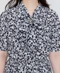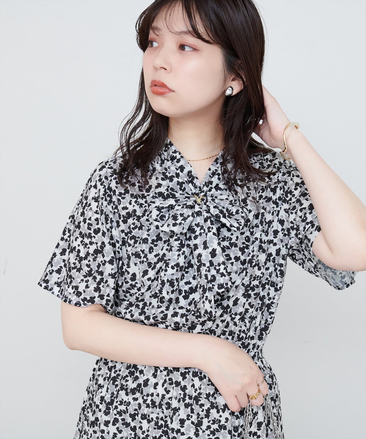 首元のボウタイデザインは、コーディネートのアクセントになり、顔周りを華やかに演出。