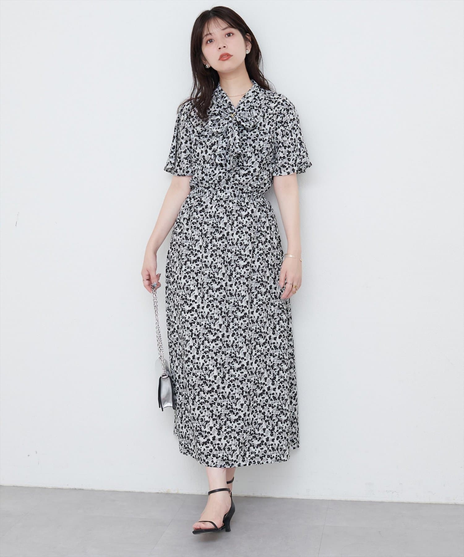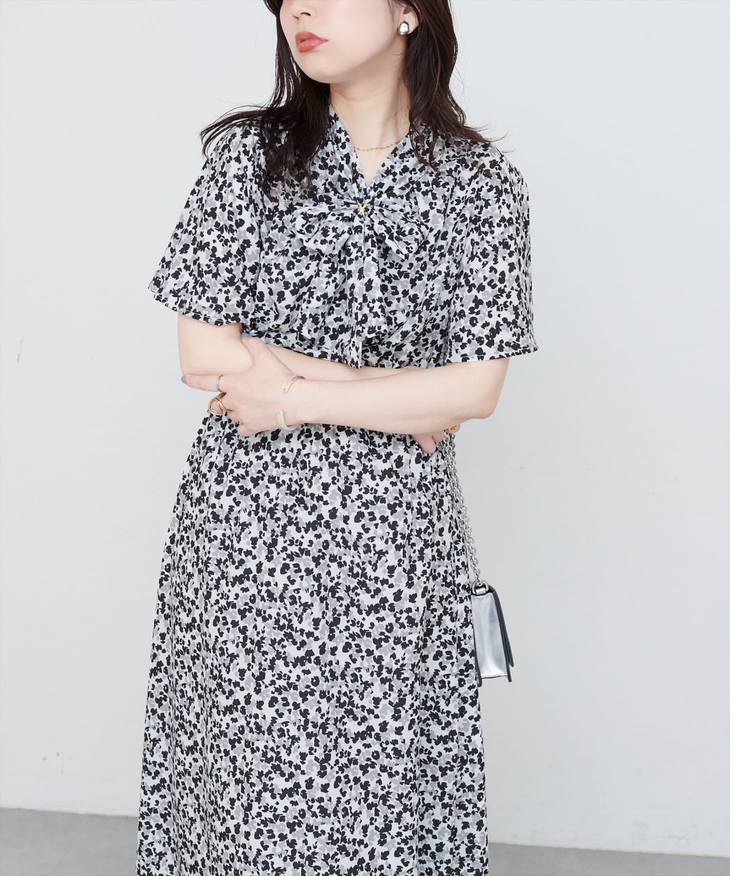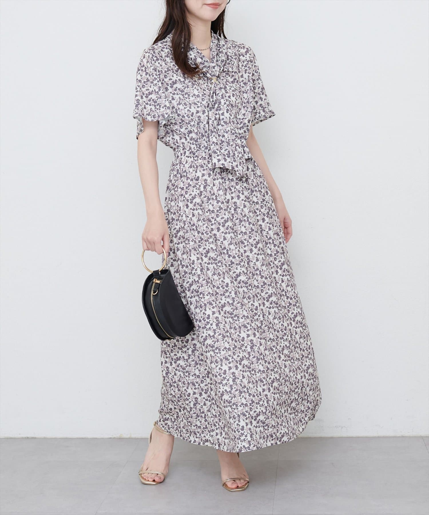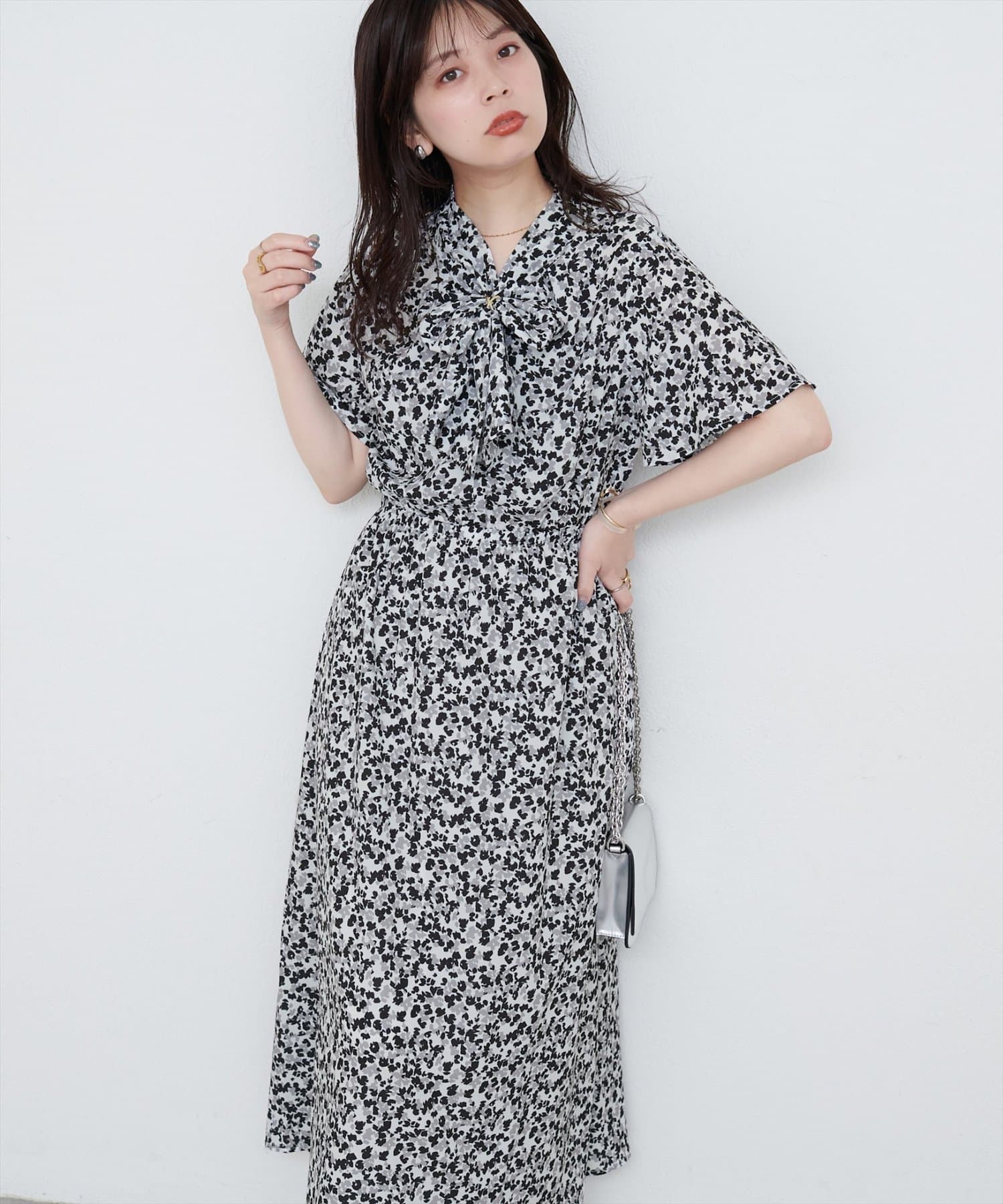 ふんわりと優しい印象の柄が、上品で女性らしい雰囲気を演出するワンピース。