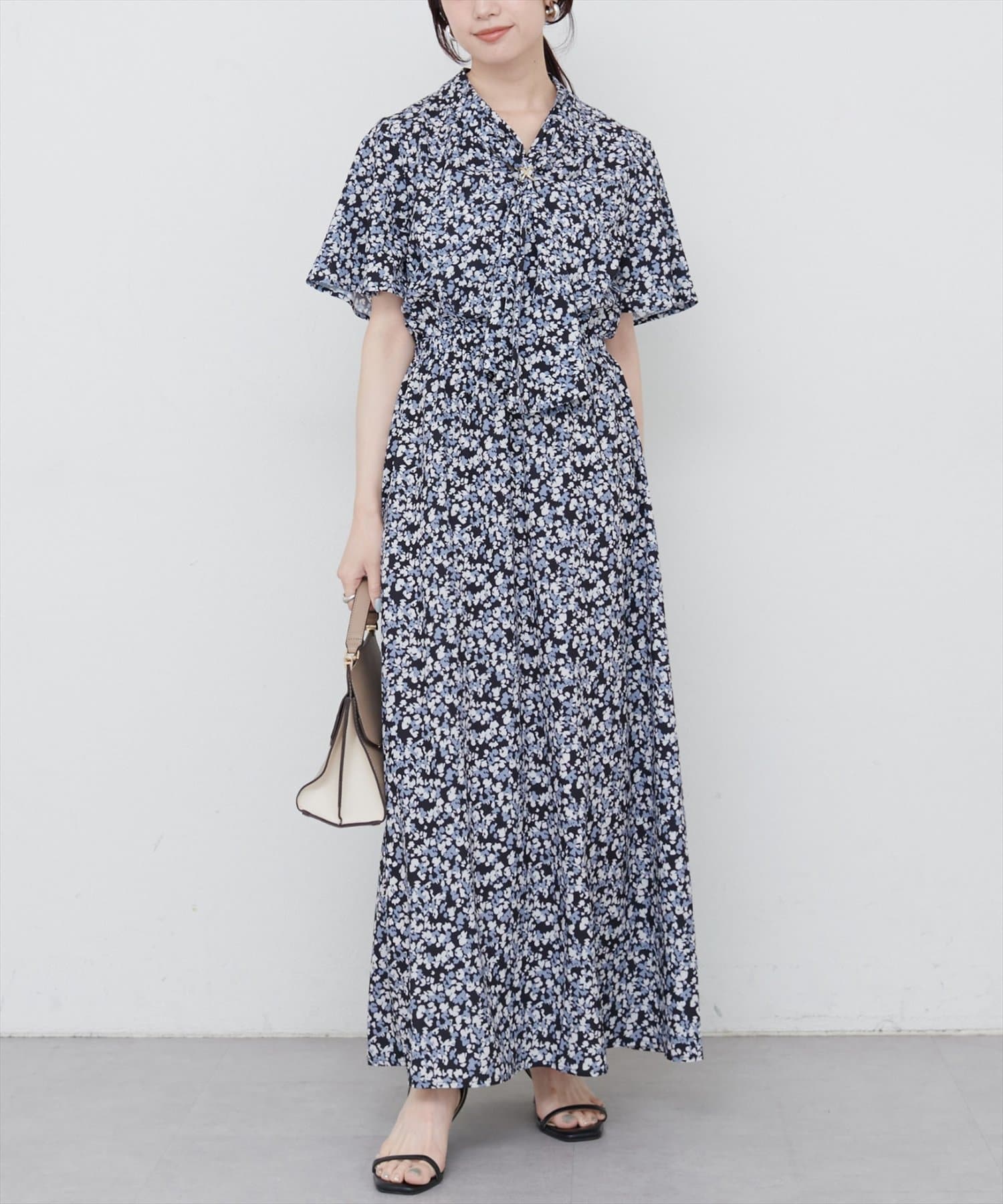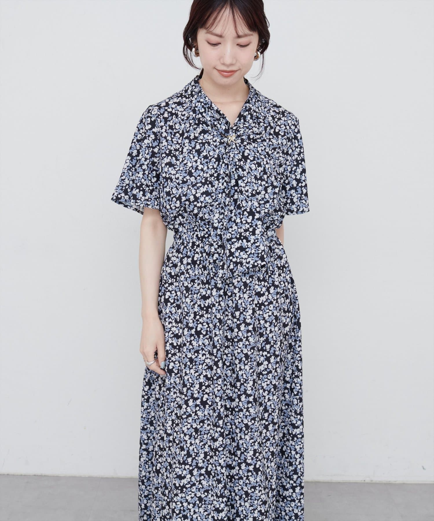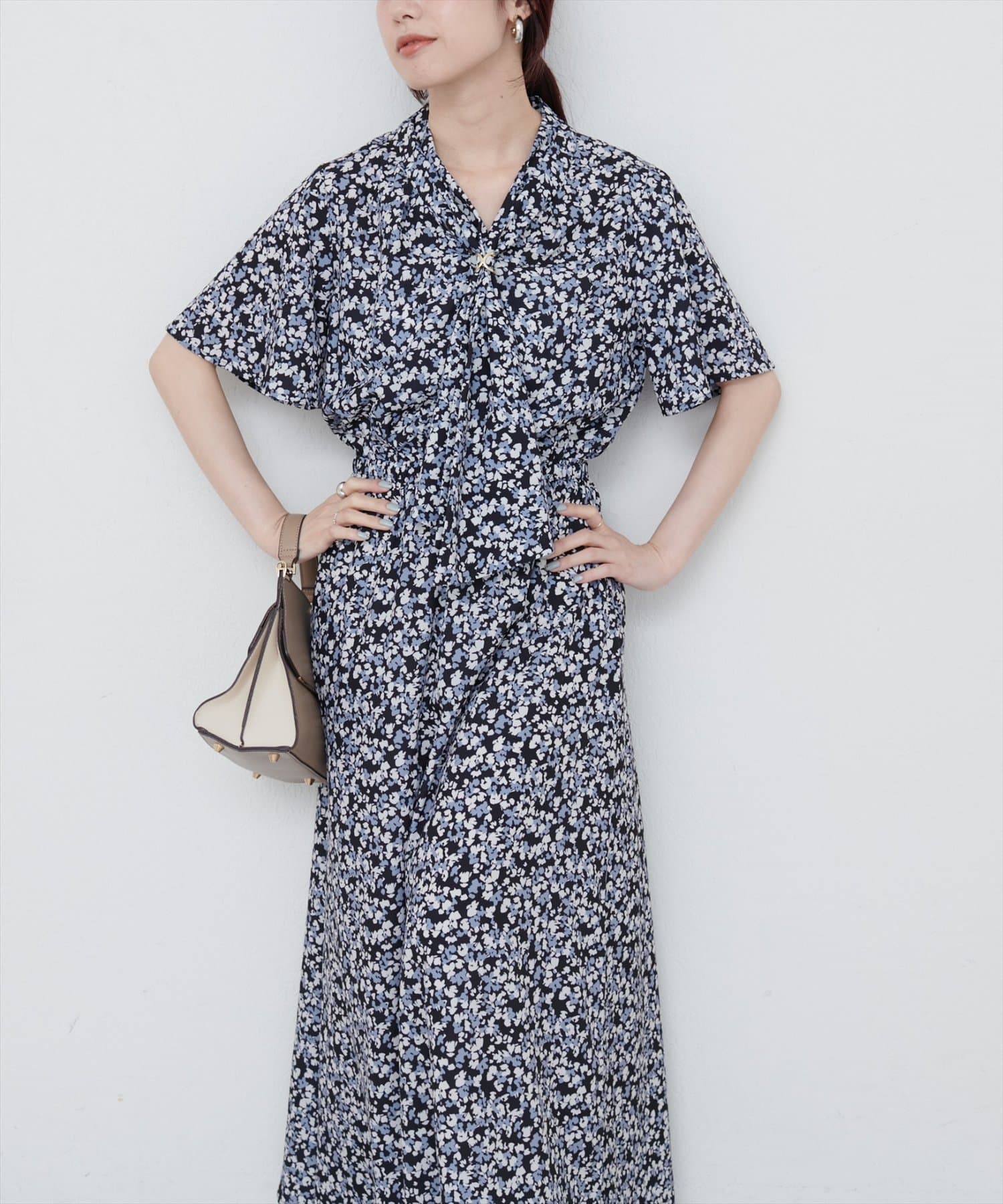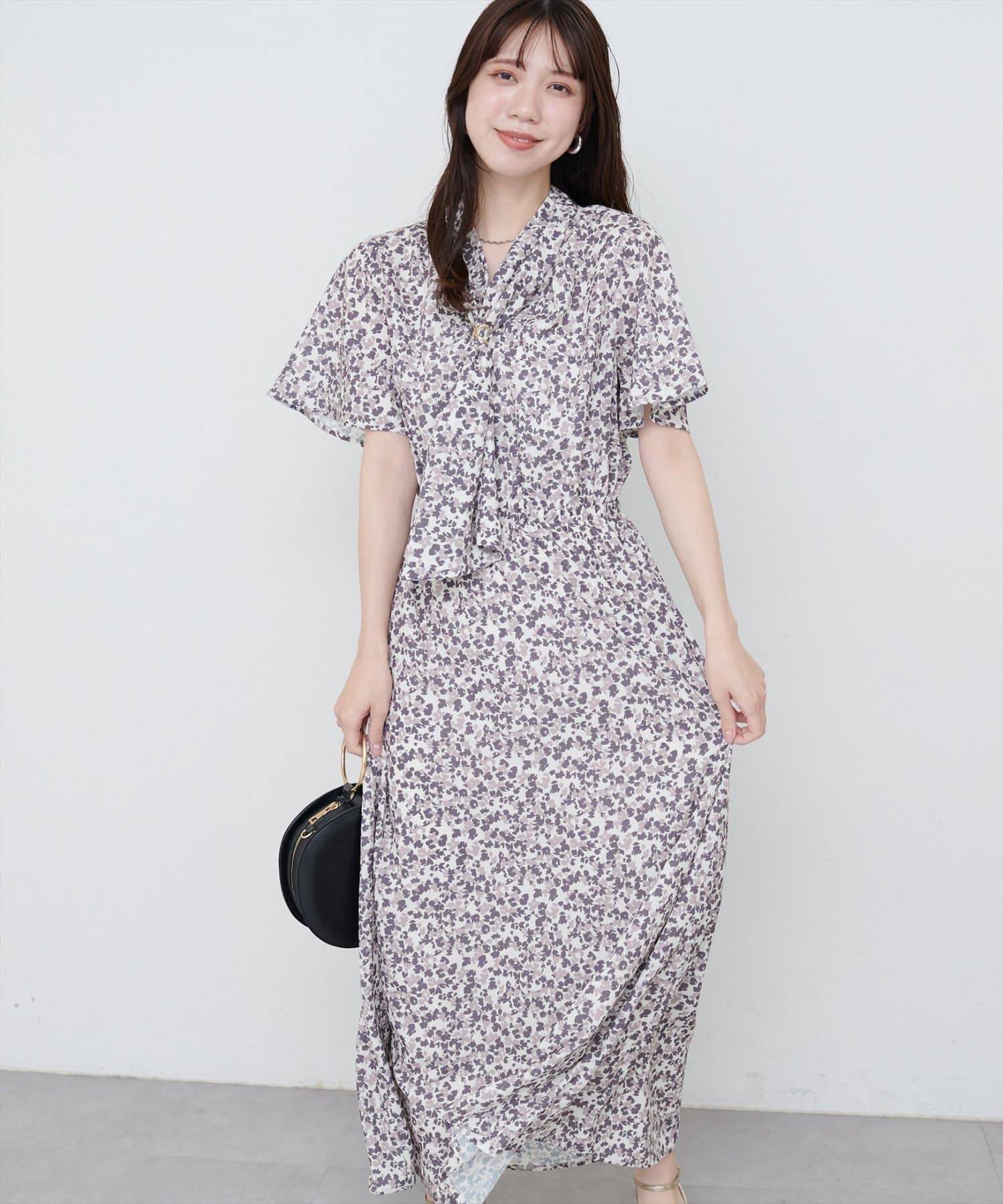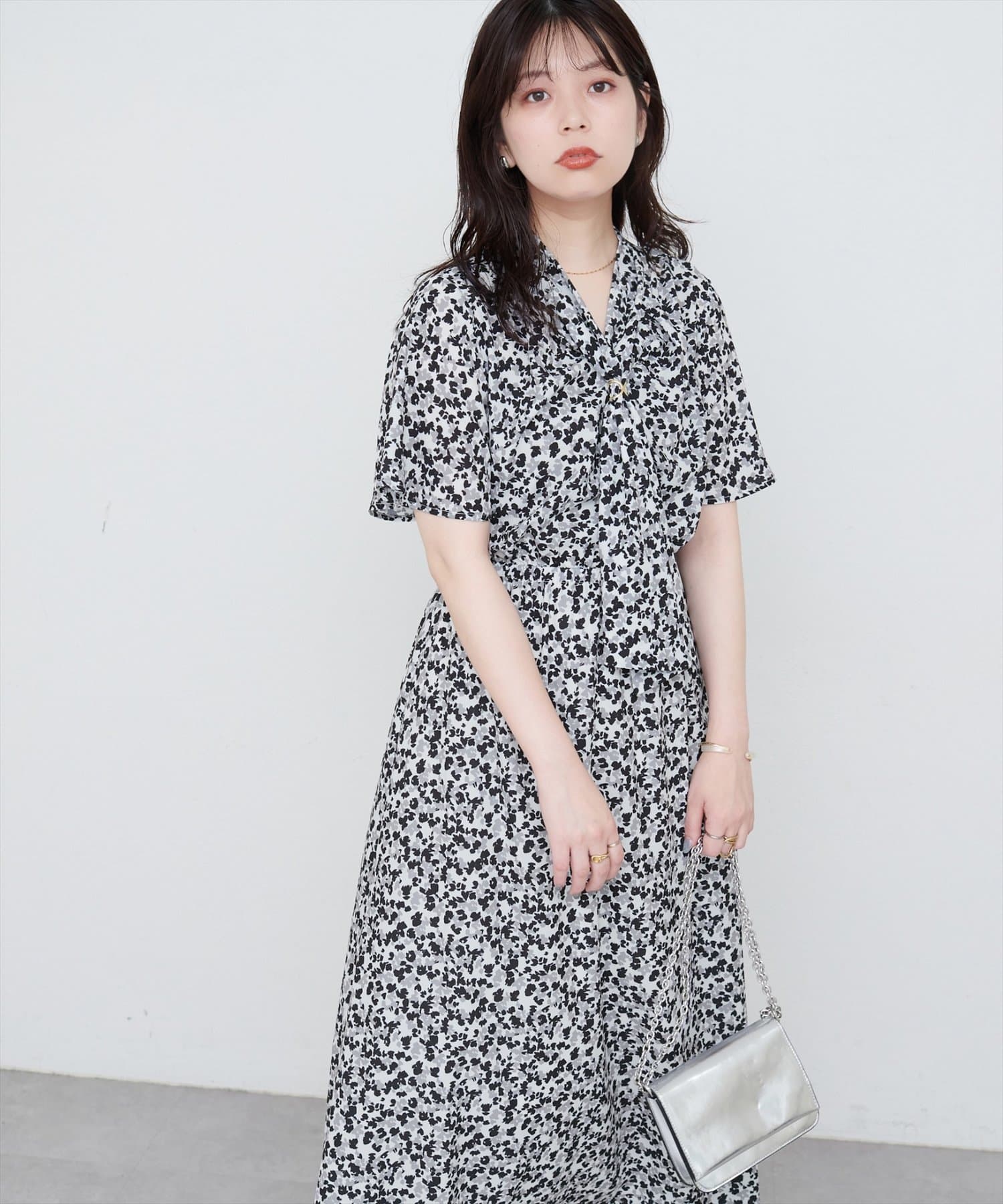 ふんわりと優しい印象の柄が、上品で女性らしい雰囲気を演出するワンピース。