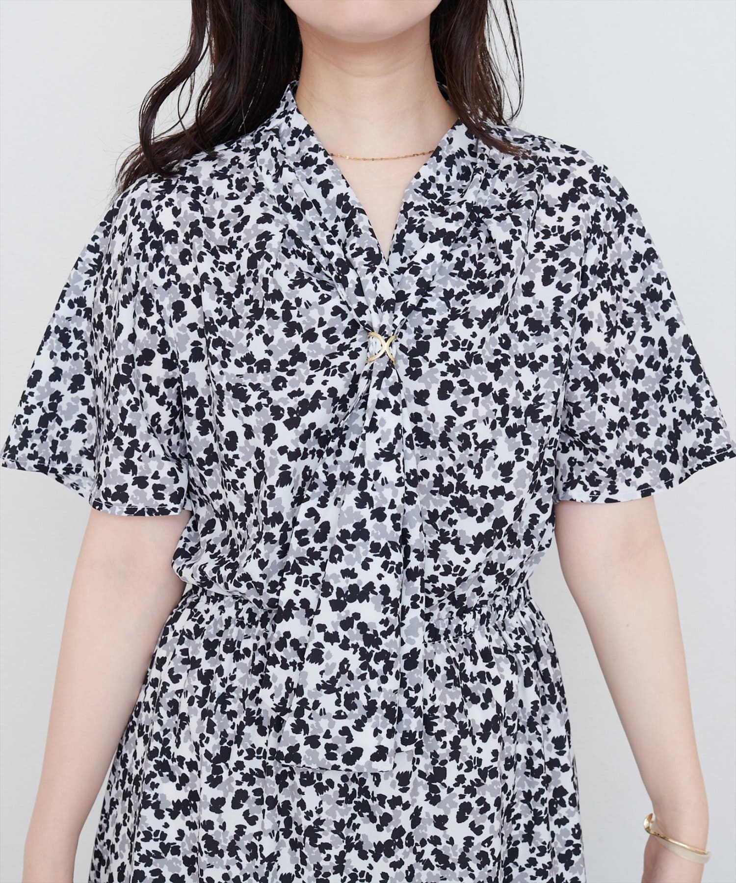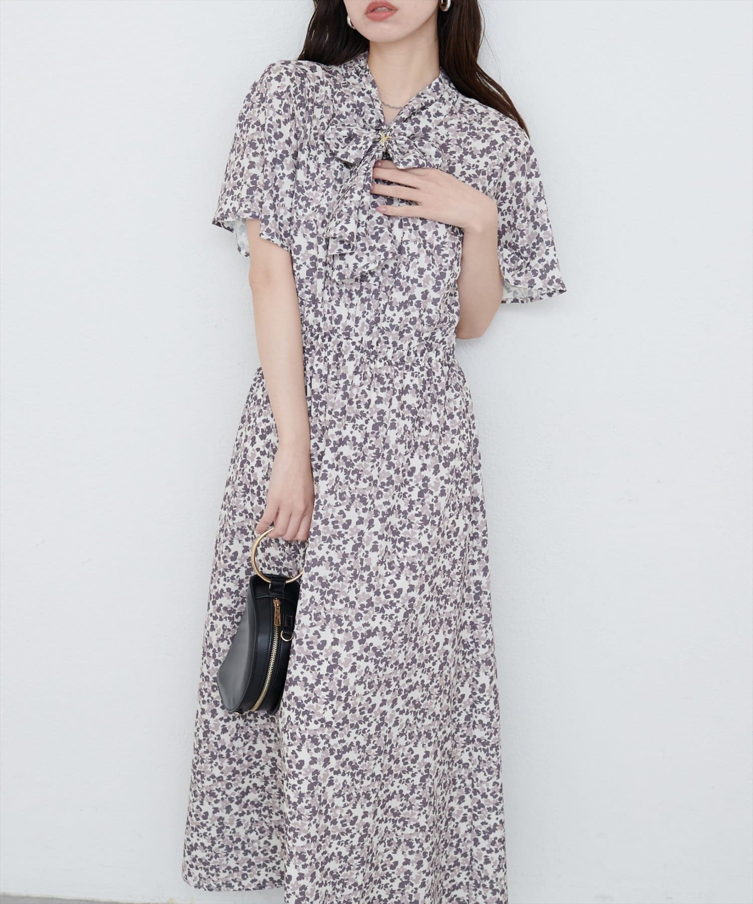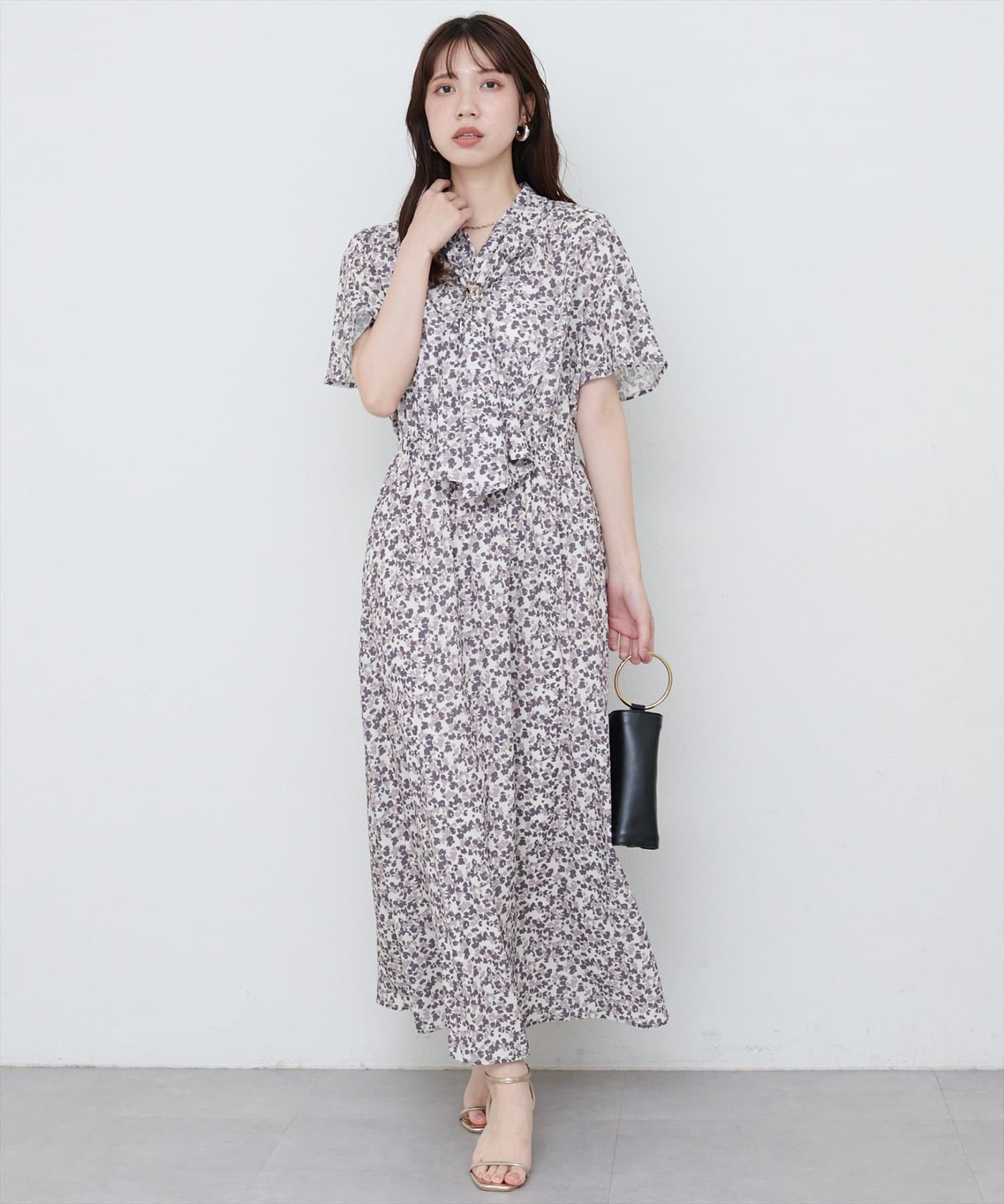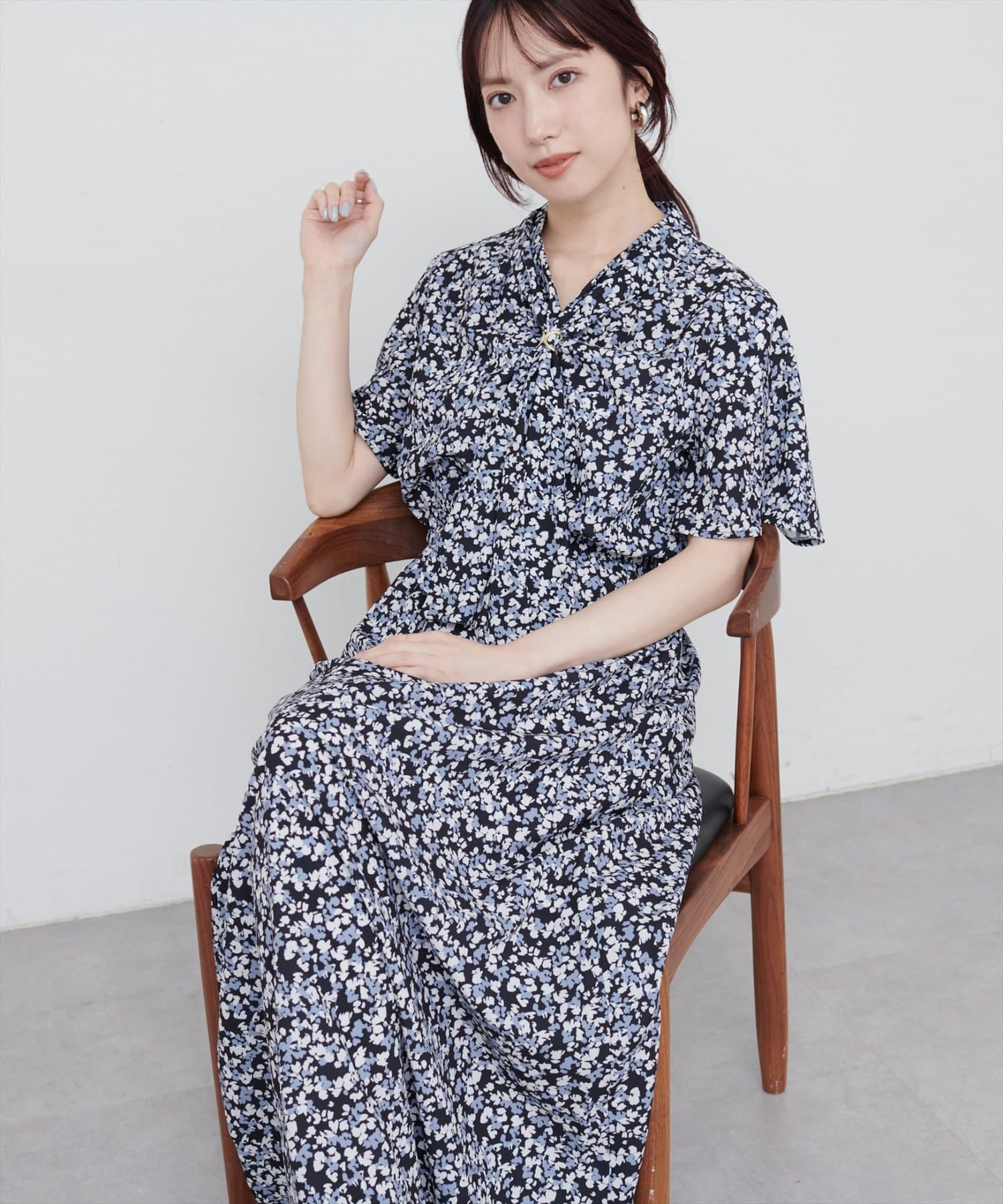 ふんわりと優しい印象の柄が、上品で女性らしい雰囲気を演出するワンピース。