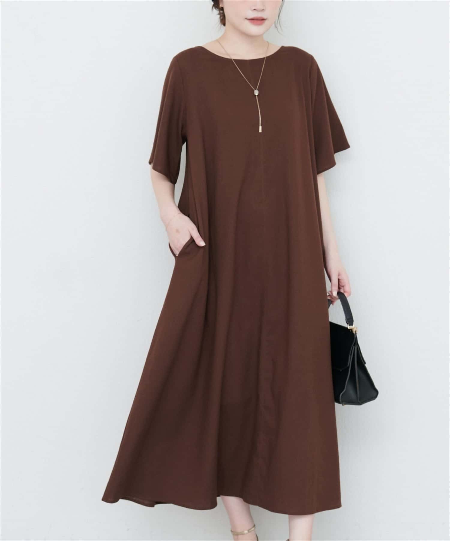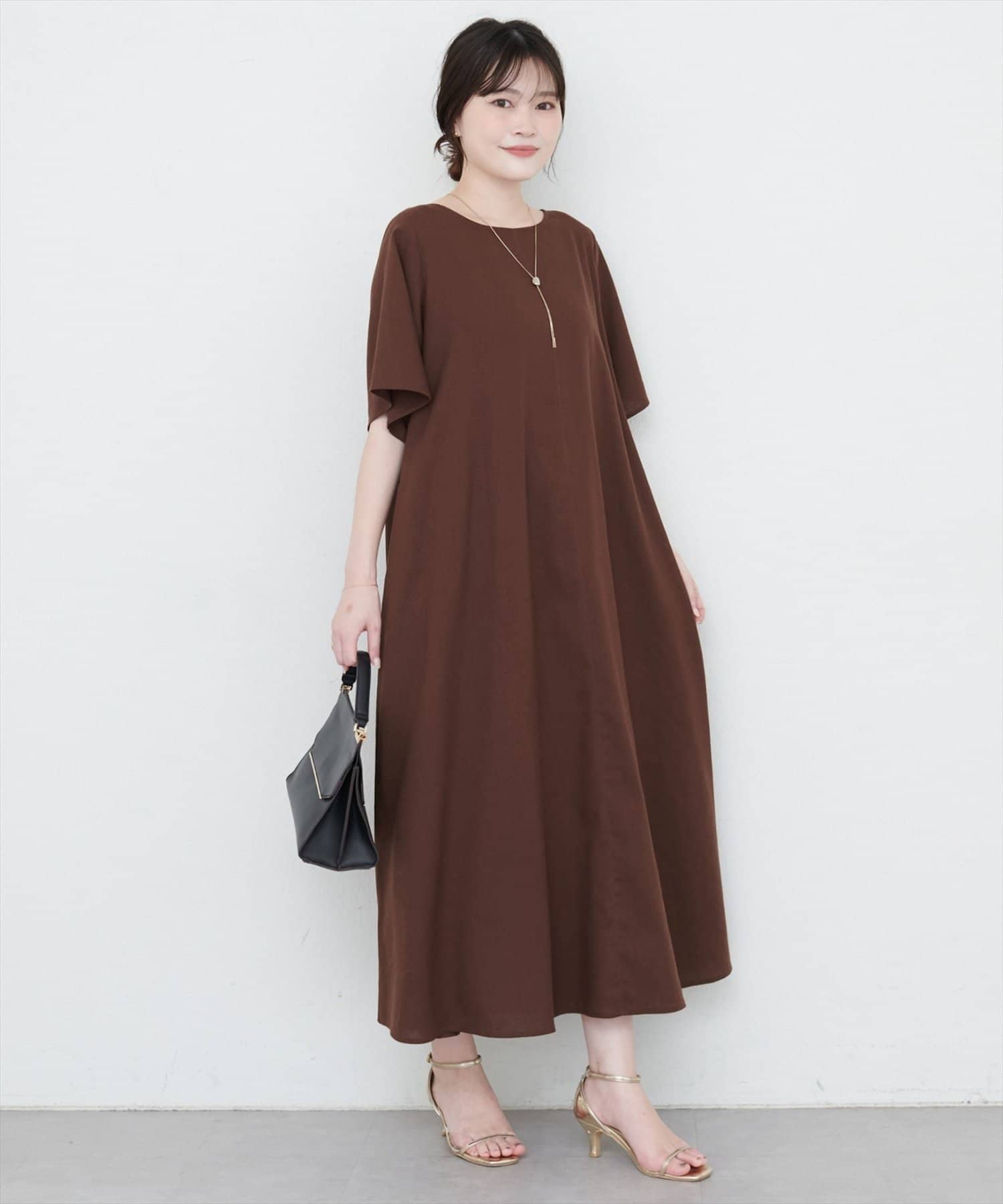 ゆったりとした身幅と、フレアに広がるスカートラインが、大人の余裕を感じさせるシルエット。