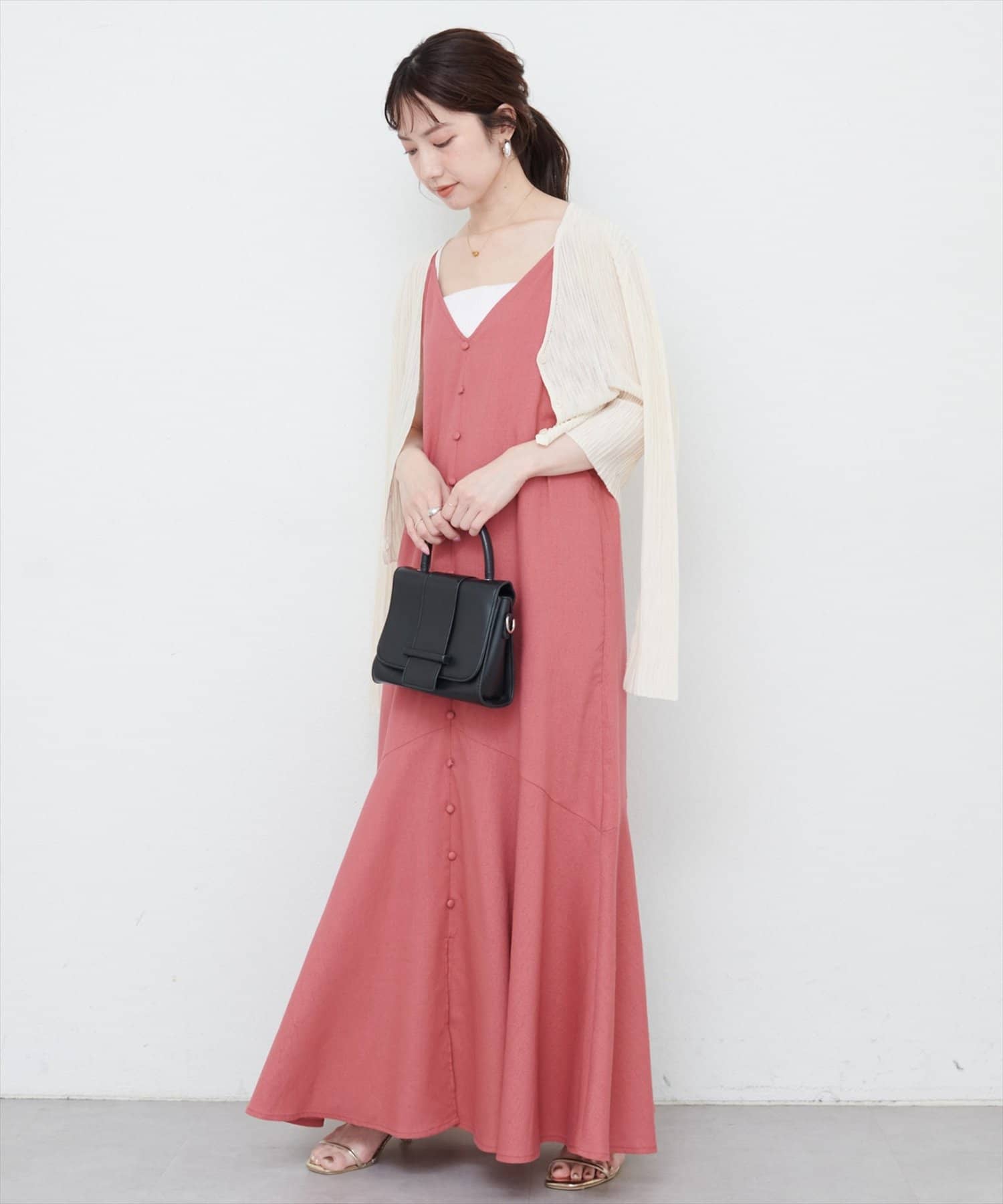 シンプルなデザインの中に、大人の女性らしさが際立つキャミワンピース。