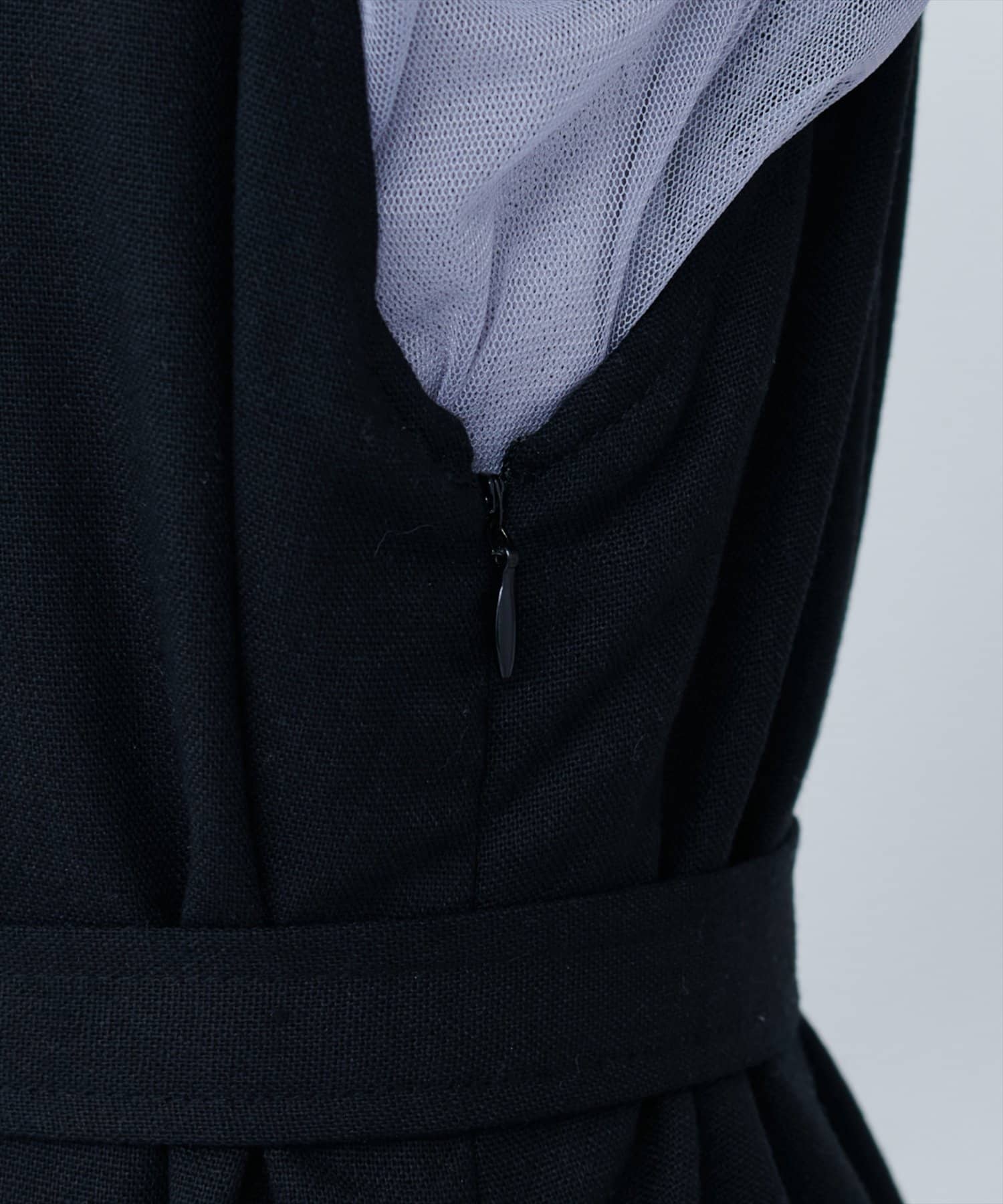 付属のウエストベルトでウエストマークすると華奢で洗練された印象を与えます。
