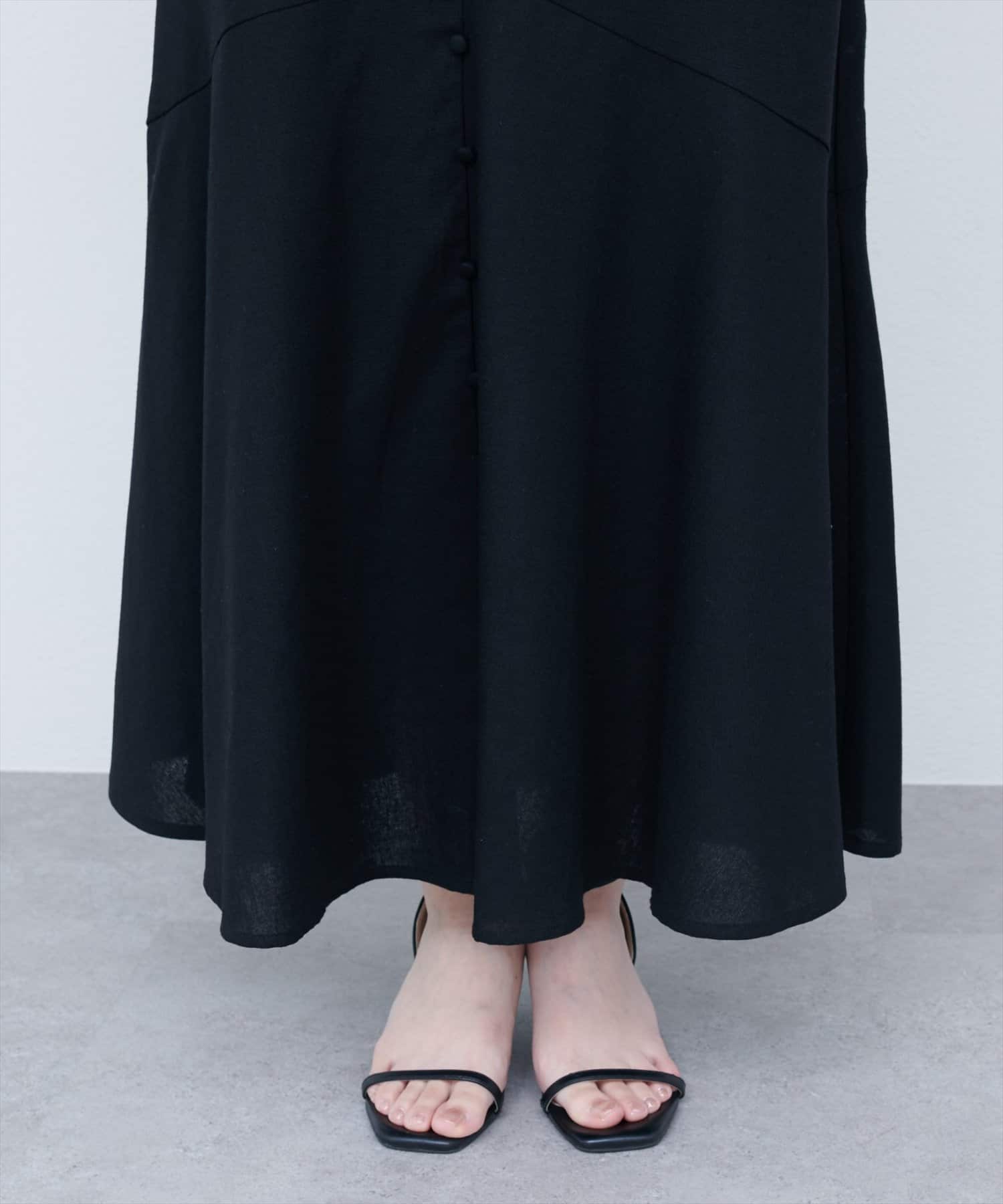 裾に向かって広がるフレアシルエットが、女性らしいメリハリのあるラインを演出。