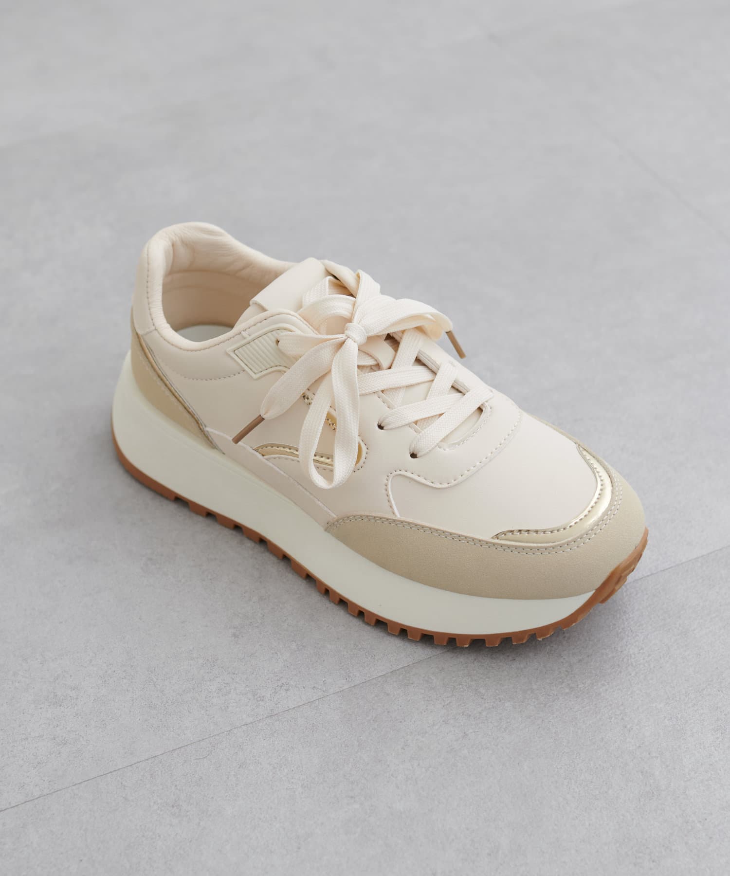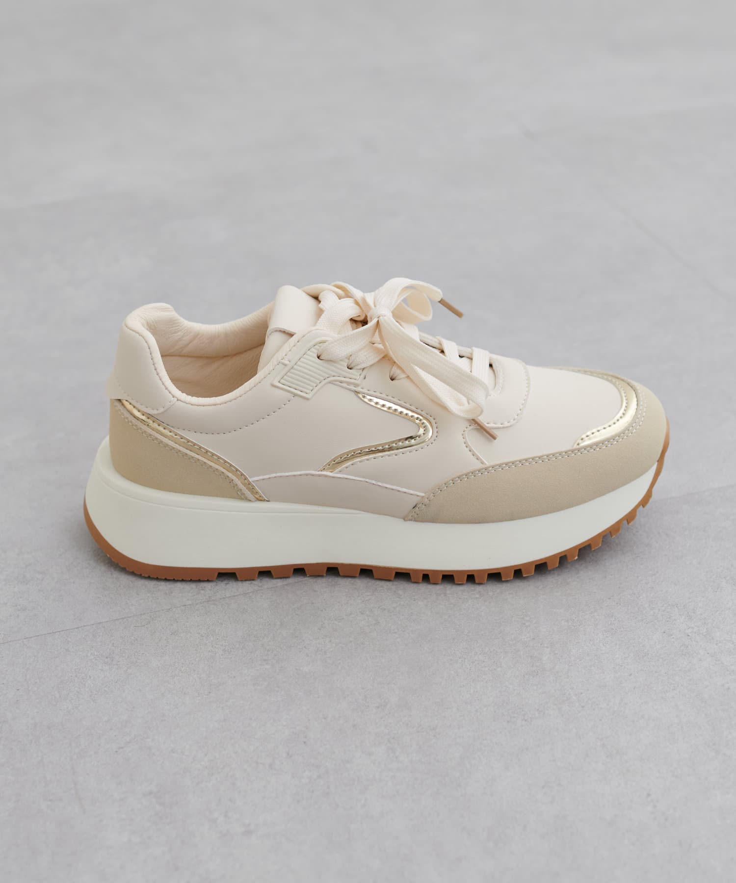 ベーシックなデザインにゴールドポイントをプラスしたスニーカー。